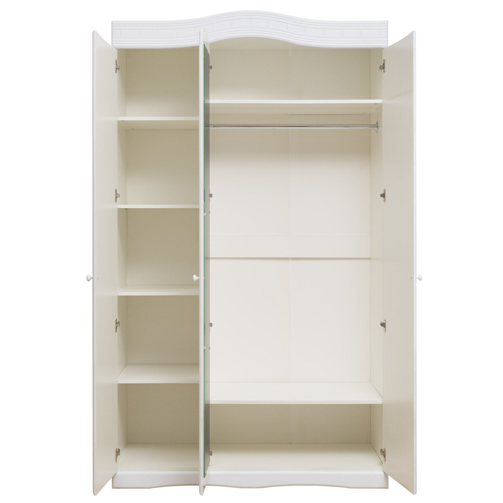 Шкаф 3-х дверный Шарлота изготовлен из высококачественных материалов- МДФ, ЛДСП, и соответствует наивысшим требованиям экологической безопасности, что особенно важно при выборе мебели для спальной комнаты. Цвет: белая эмаль/скол дуба белый. «Мебель поставляется в разобранном виде».
