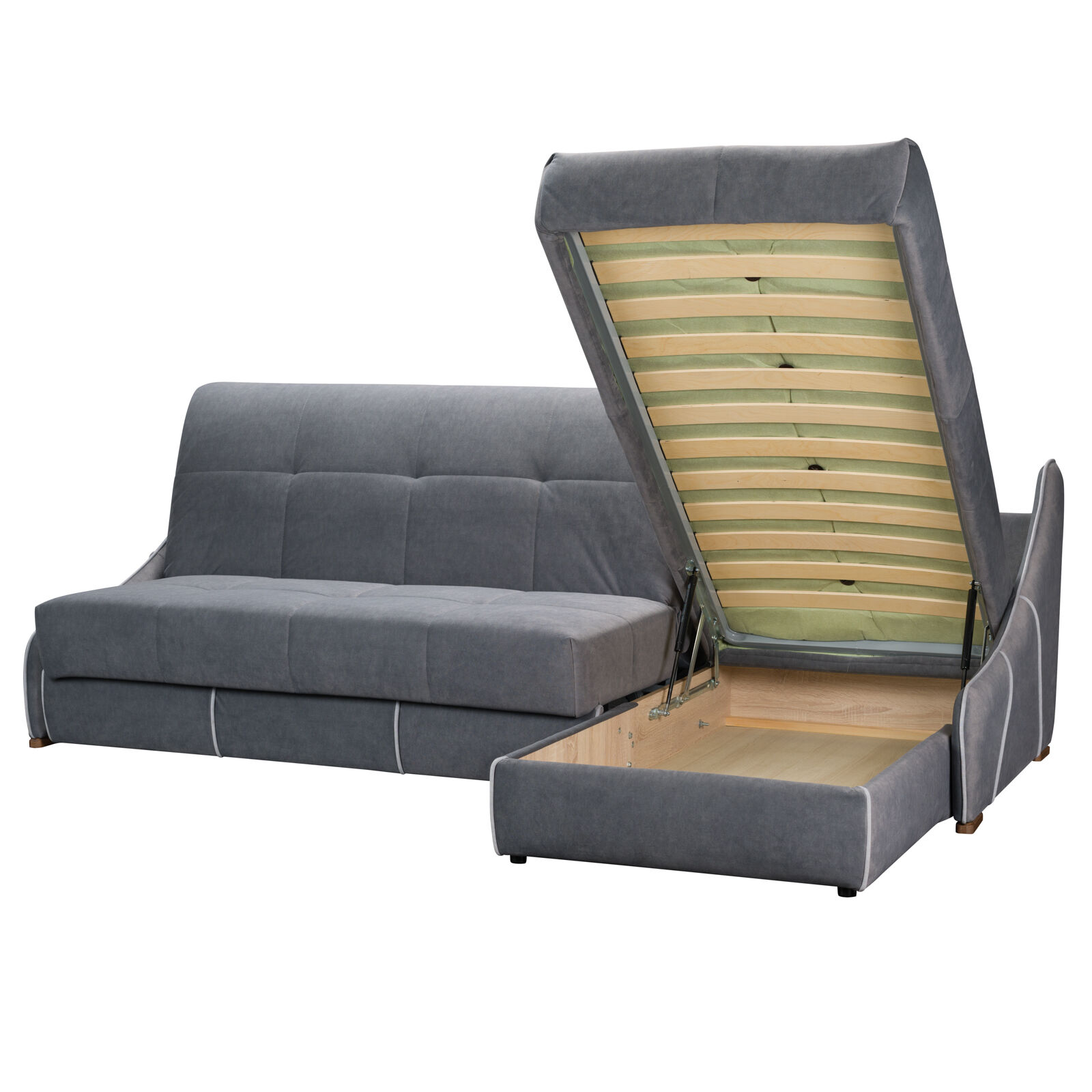 Диван Токио ДУ Elefante11 Elefante10. Аккуратный, без лишних деталей, продуманный до мелочей дизайн. Выкатная часть дополнительно снабжена специальными роликами с особым покрытием, предохраняющим напольное покрытие от царапин. Съемная чехловая система облегчает уход за обивкой дивана и ее замену. Специальная простежка чехла не позволяет дивану утратить свою форму в процессе эксплуатации. Металлический каркас. В разложенном виде диван создает полноценное, идеально ровное спальное место – никаких стыков. Бельевой ламинированный ящик в диване и оттоманке. В наполнении ППУ - пенополеуретан. «Мебель поставляется в разобранном виде».