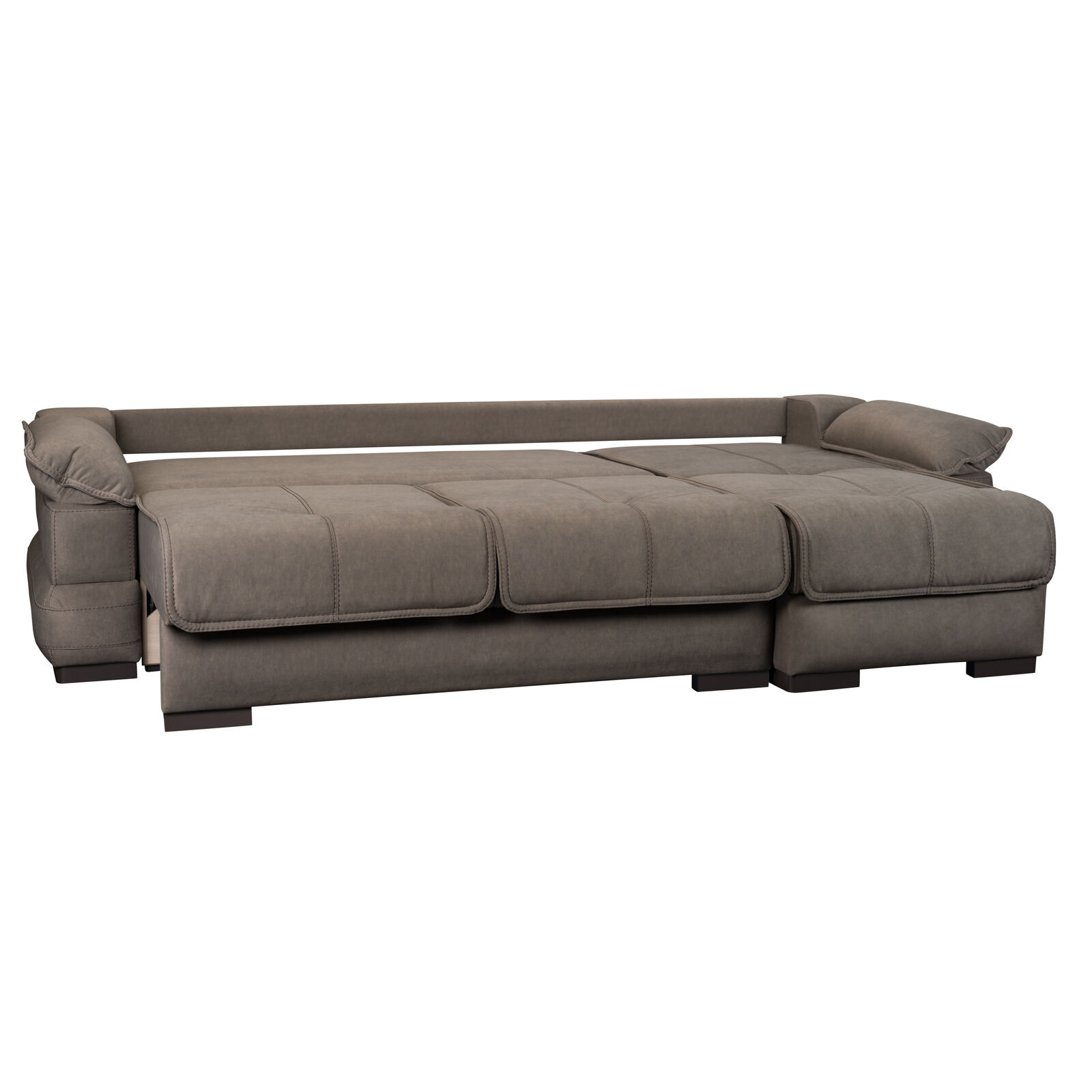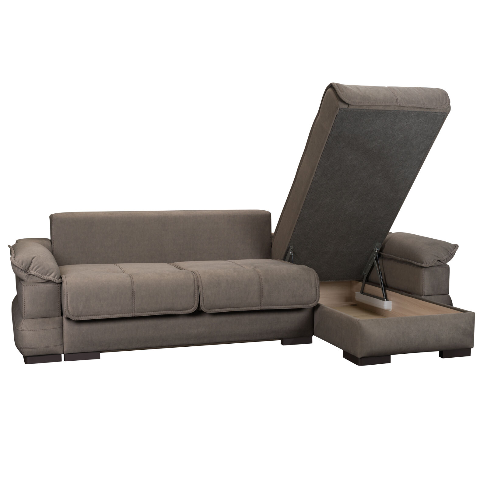 Диван «Угловой Леон Elefante 02». Каркас углового дивана изготовлен из фанерного бруса (ламель), фанеры, ЛДСП, МДФ, ДВП. Каркас посадочного места и спинки изготовлен с независимым пружинным блоком (высота 120мм). Механизм трансформации «Тик-Так». Угловой диван состоит из ящика для хранения белья, сиденья, спинки, двух подлокотников, оттоманки с бельевым коробом и пристенной планки. Приспинные подушки съемные Чехлы дивана расстрочены швейной нитью прошивной (полиэстеровая). Наполнитель основного каркаса: Независимый пружинный блок, ППУ различной плотности.Наполнитель приспинных подушек: Синтепух. Наполнитель верхней части подлокотника (подушка) - Синтепух. Подлокотники соединяются с основным каркасом дивана между собой на быстросъемные крепления. «Мебель поставляется в разобранном виде».