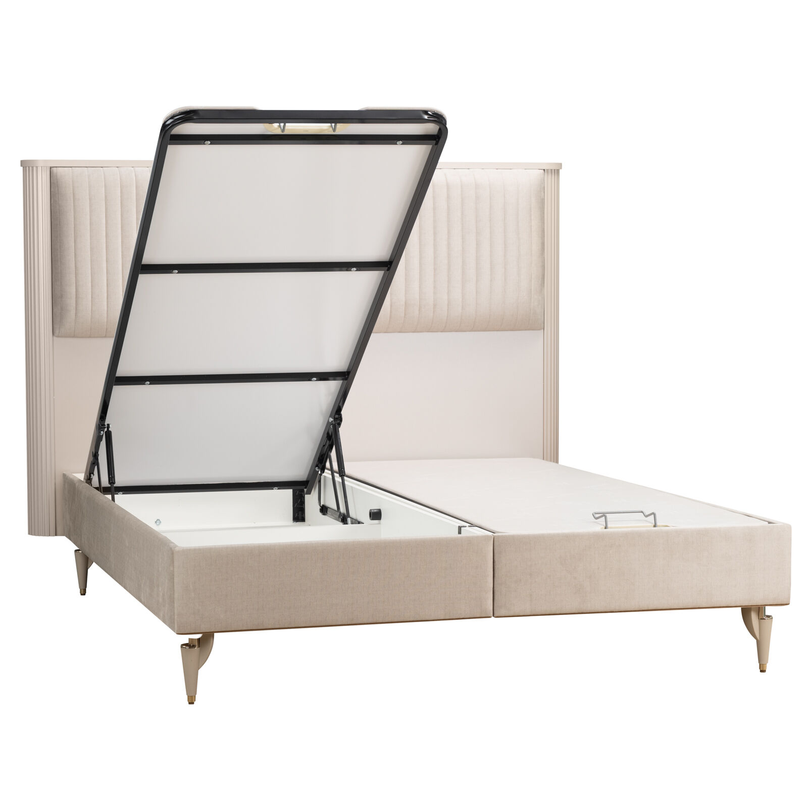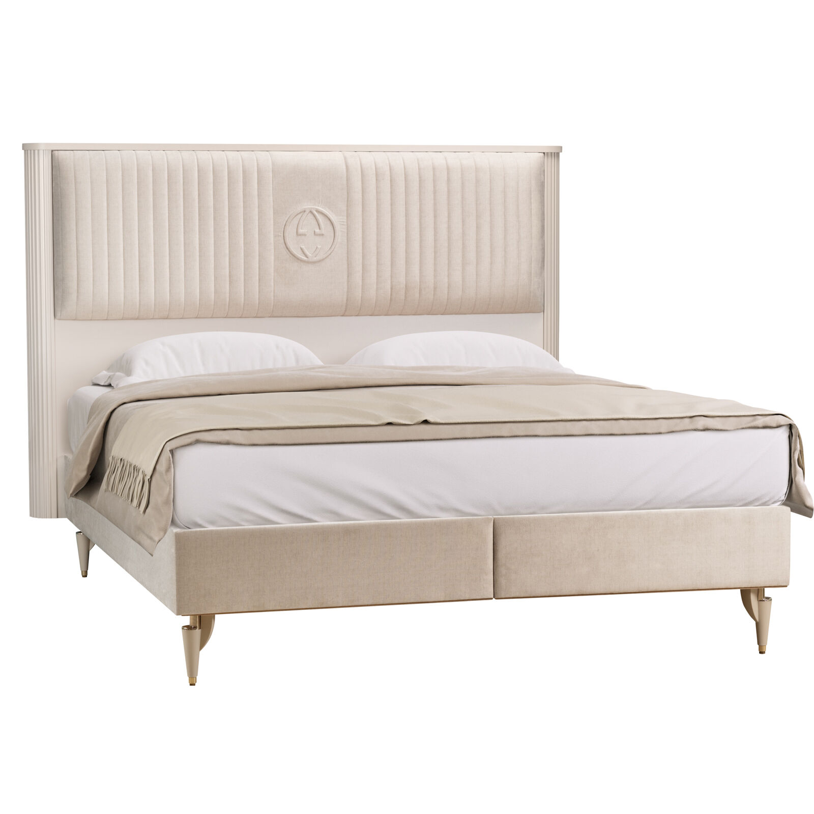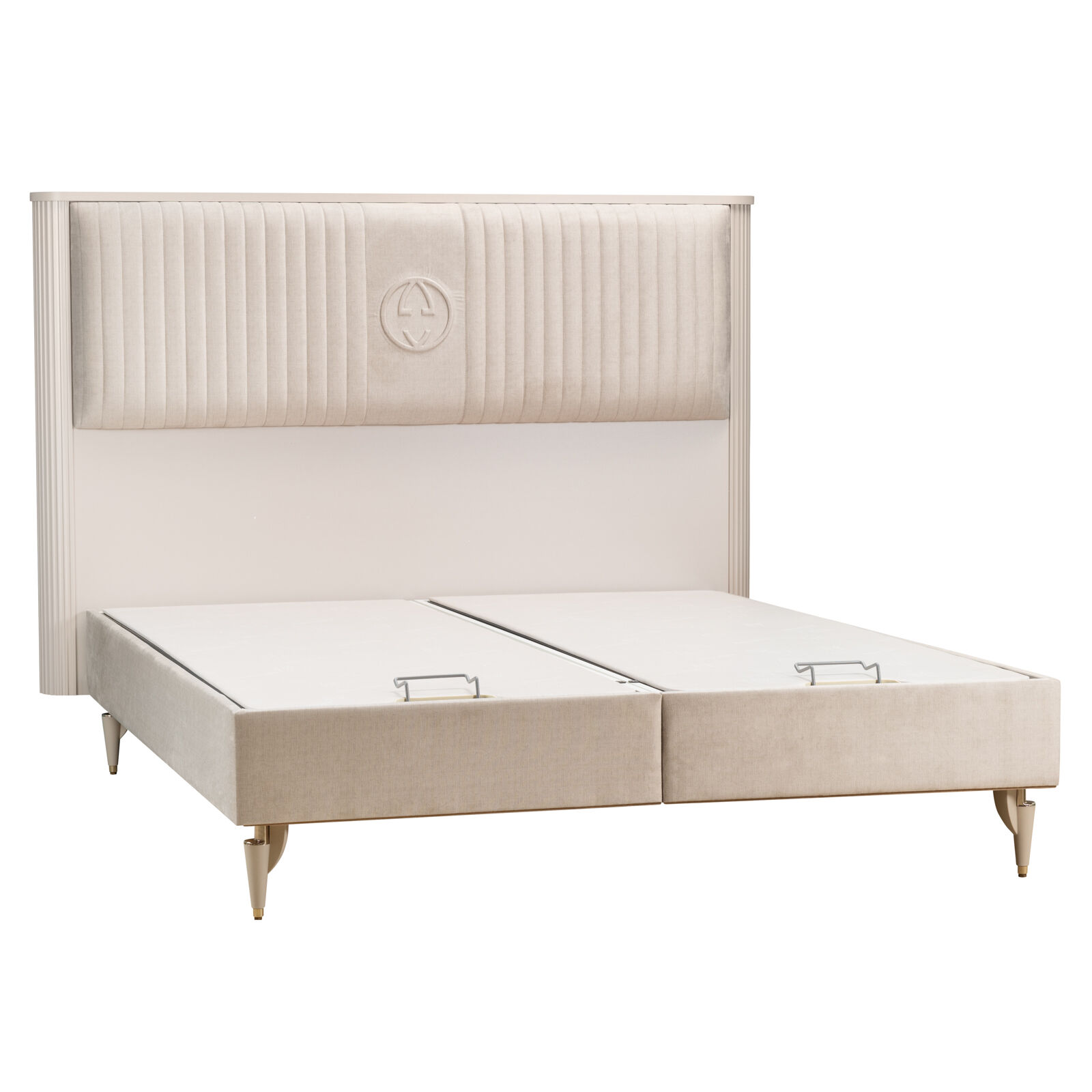 Кровать Sanvito шириной порядка 160 см подходит для комфортного размещения двух человек. Модель оформлена в стиле, характерном для всей серии — с использованием кремового цвета и оригинальных ножек с элементами позолоты. «Матрас в комплект не входит». «Мебель поставляется в разобранном виде».