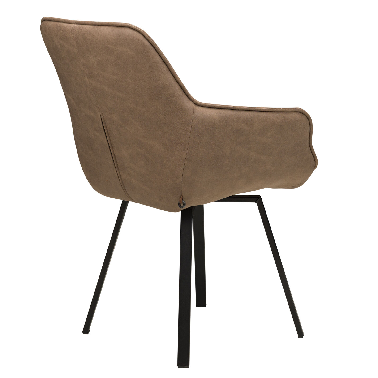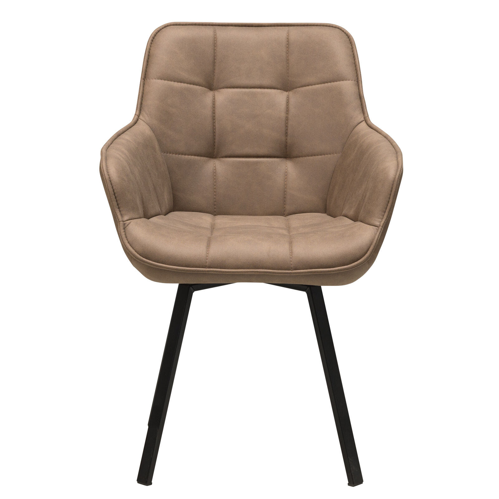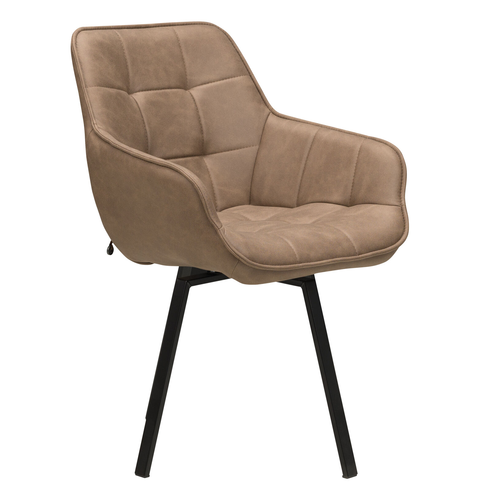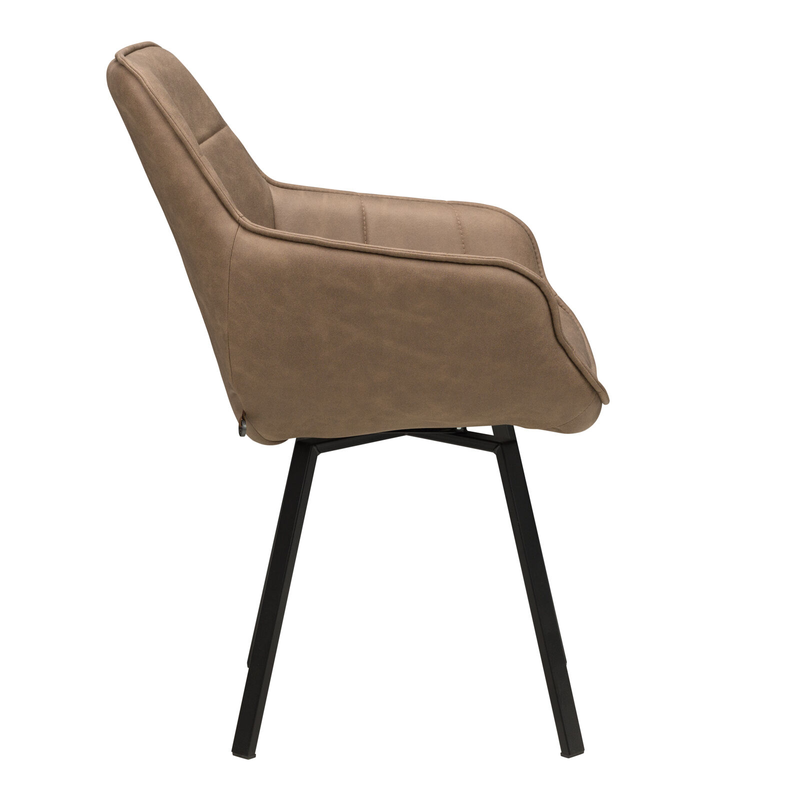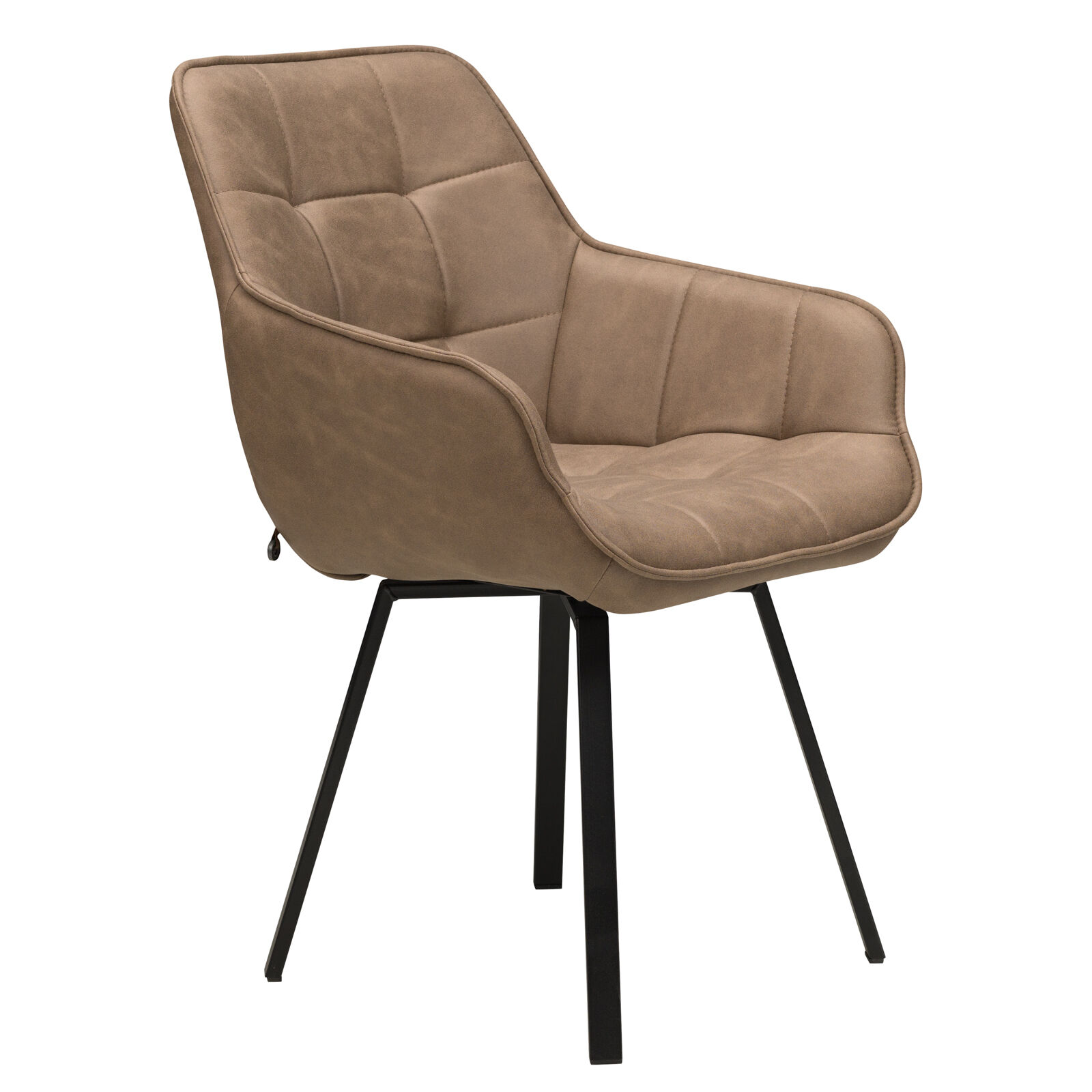 Стул «ROMEO с поворотным механизмом Чёрный замша LUX Шоколад К5» с подлокотниками подходит для гостиной или кухни в стиле лофт, индастриал, сочетается с деревянными и керамическими столами на металлических опорах. Спинка и сиденье модели декорированы квадратной строчкой. Крестообразная рама с болтовым креплением элементов отвечает за прочность модели. Сплошная спинка, мягкое квадратное сиденье и подлокотники дают максимальный комфорт при отдыхе. Специальный механизм обеспечивает поворот кресла.
