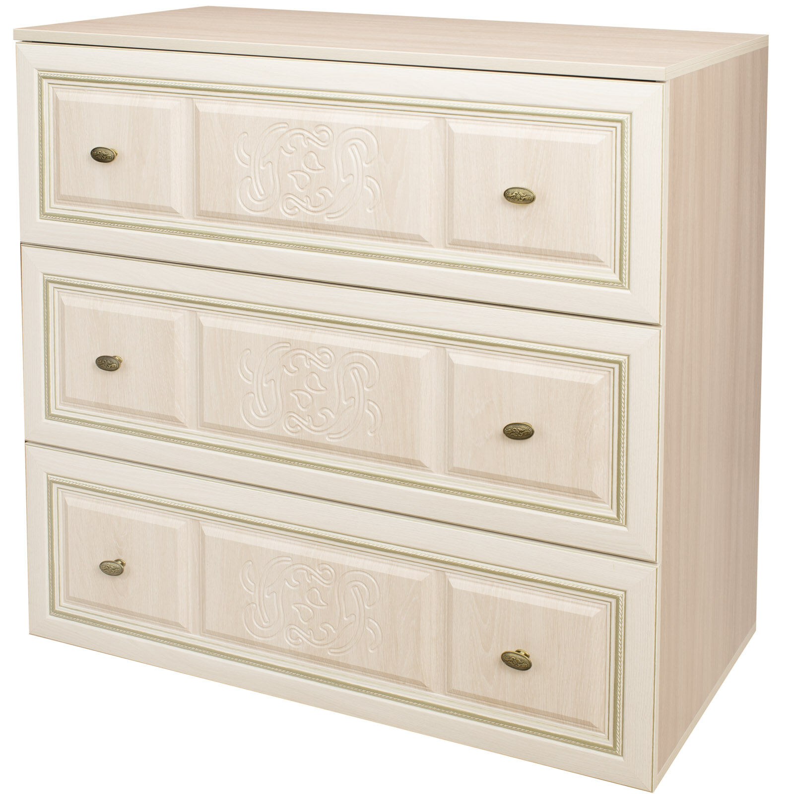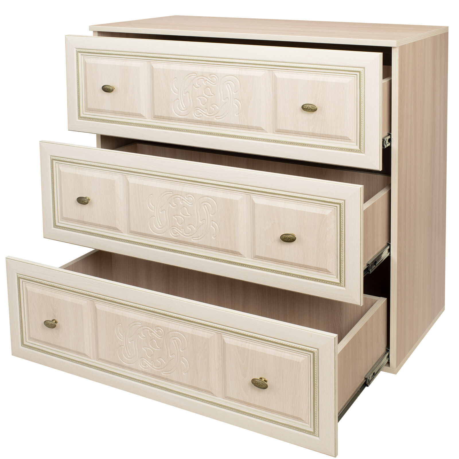 Комод - Виктория является отражением модных мебельных тенденций и продумана до мелочей с точки зрения дизайна и удобства эксплуатации. Кромка ПВХ 2 мм. Рамочный фасад с фрезеровкой. Корпус ЛДСП, ДВП в цвет фасада. Крепежный элемент-эксцентриковая стяжка. Полновыкатные направляющие