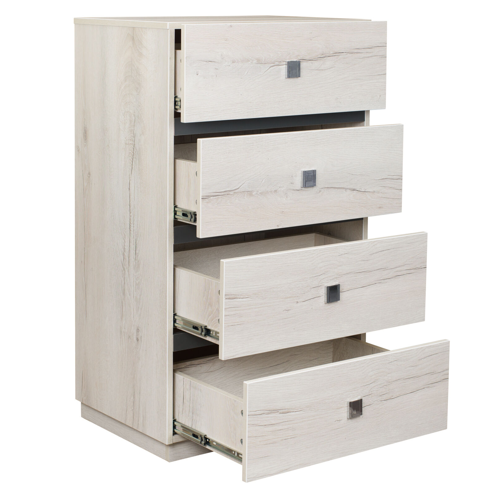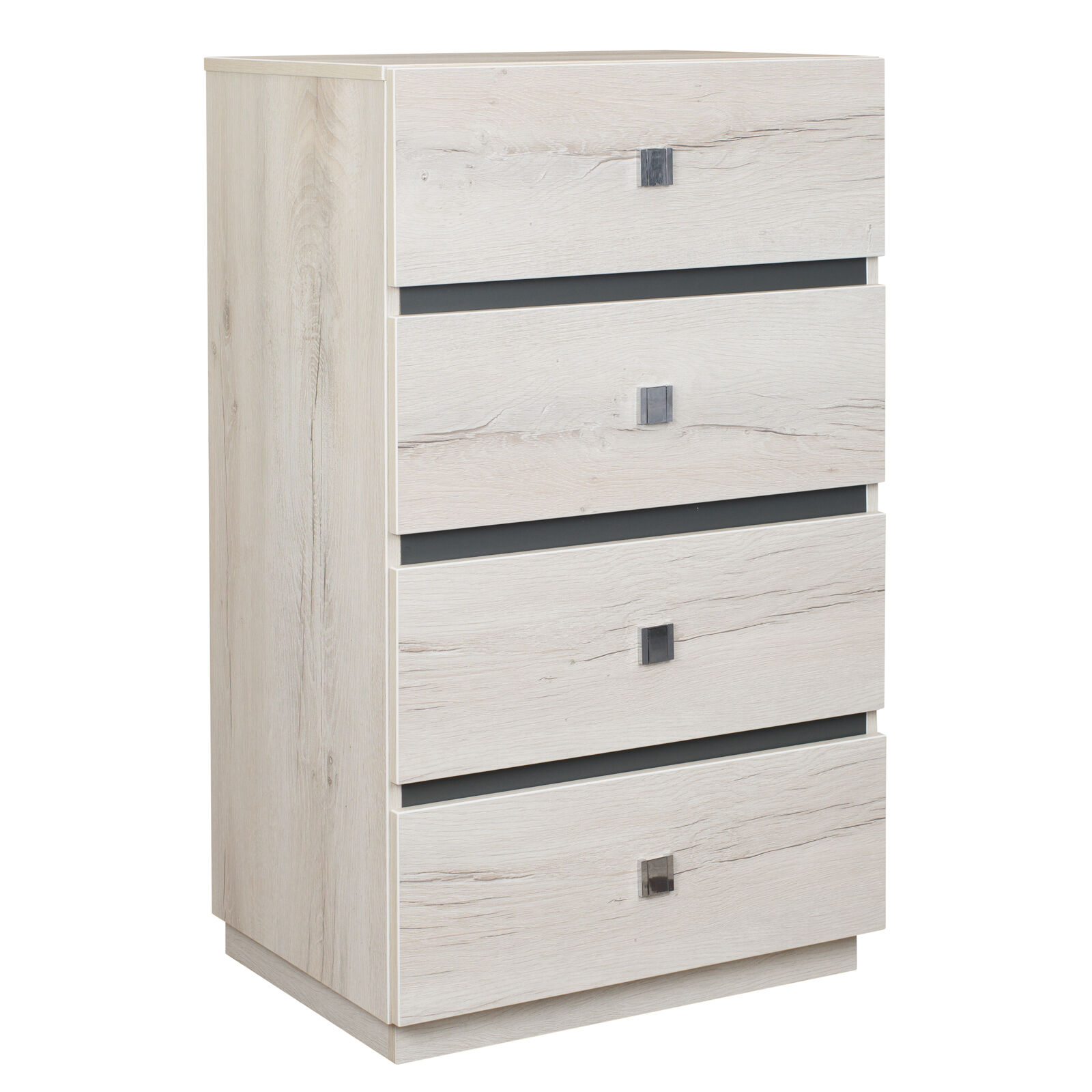 Комод NEO 45 (спальня) Дуб Шавиниган Антрацит. Поддержать порядок в спальне прекрасн поможет комод. На столешнице расставьте рамки с любимыми фотографиями или стильные интерьерные вещицы, вместительные ящики помогут организовать правильное хранение вещей. 4 вместительных ящика глубиной 35 см, высотой 14 см и шириной 53 см для размещения одежды и косметики. Ящики оснащены шариковыми направляющими полного выдвижения, что обеспечит высокую прочность и бесшумность при эксплуатации. «Мебель поставляется в разобранном виде».