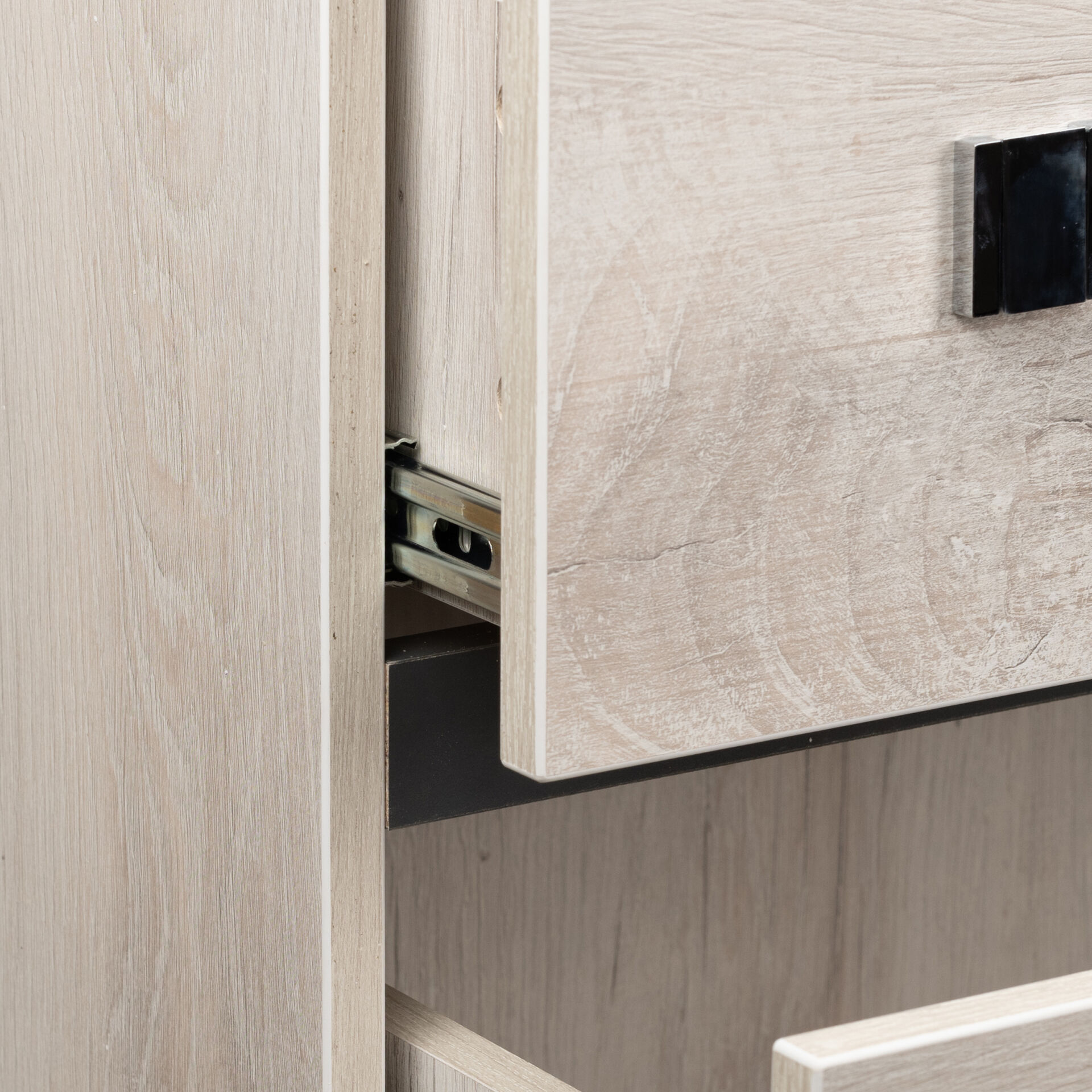 Комод NEO 455 (спальня) Дуб Шавиниган Антрацит. Широкий и вместительный комод выступит хорошим дополнением интерьера спальни, способным подчеркнуть изысканный вкус хозяев. Спокойный натуральный оттенок и красивая древесная текстура выгодно сочетается с темными вставками из ЛДСП. Несмотря на небольшие размеры, комод прекрасно сэкономит свободное пространство помещения. «Мебель поставляется в разобранном виде».