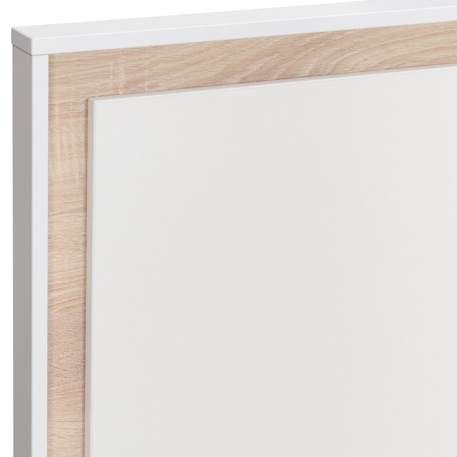 Кровать «Анона 10 140 со стационарным основанием Белый Дуб сонома» привлекает внимание стильно оформленным двухуровневым изголовьем в контрастном сочетании Белого с Дубом Сонома. Акцентная вставка в декоре Дуб Сонома подчеркивает геометричность коллекции. Необычная многоступенчатая конструкция кровати с эффектом «парения» - интересное дизайнерское решение. Хозяйки оценят удобство в процессе уборки, любители нестандартных решений смогут придать спальне индивидуальности, дополнив кровать интерьерной подсветкой. Надежное стационарное основание с гибкими ламелями Металл в комплекте. «Мебель поставляется в разобранном виде». «Матрас в комплект не вхлдит».