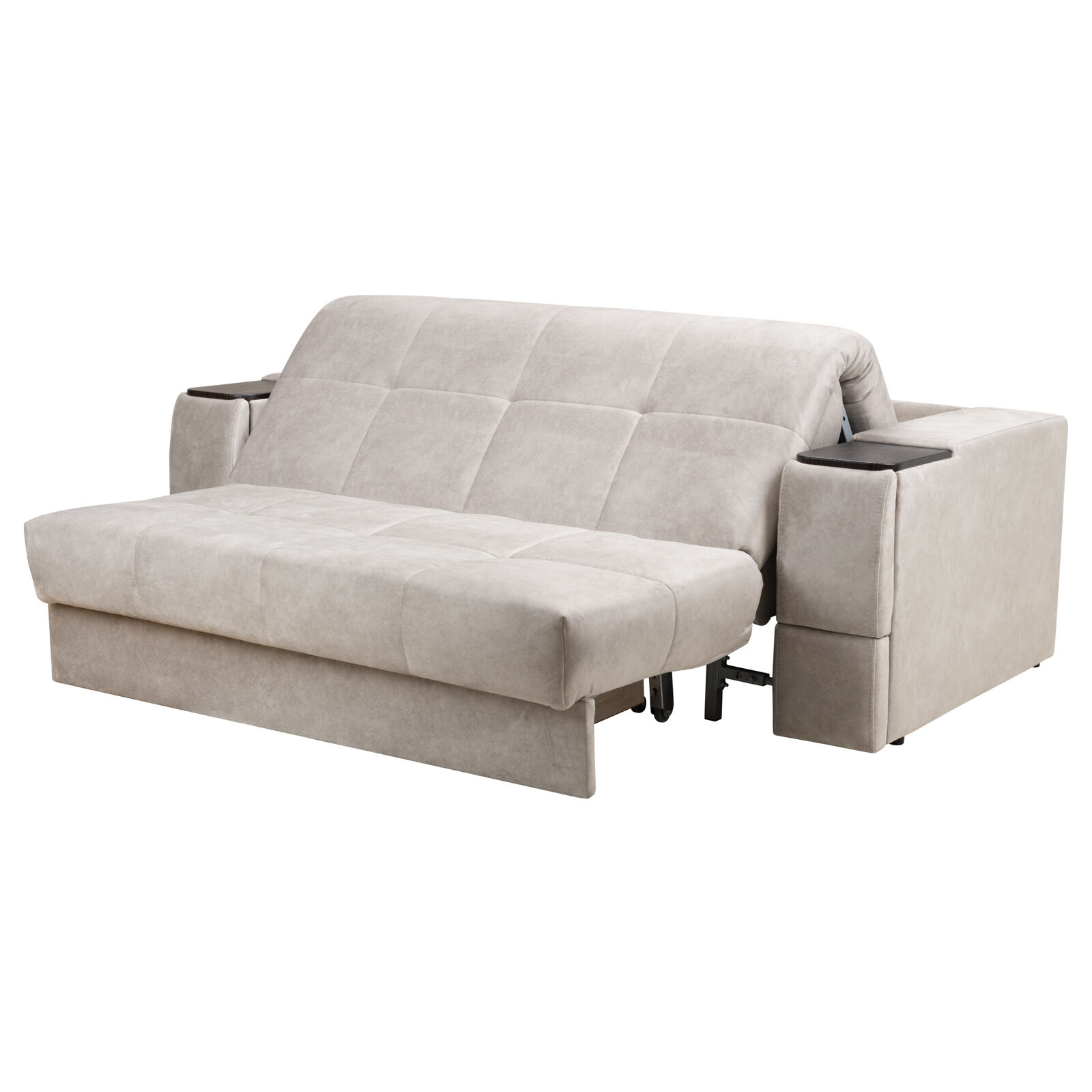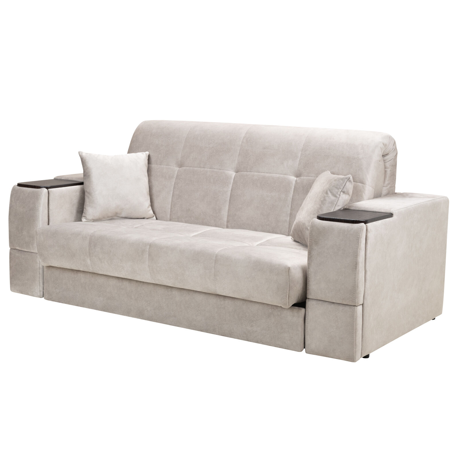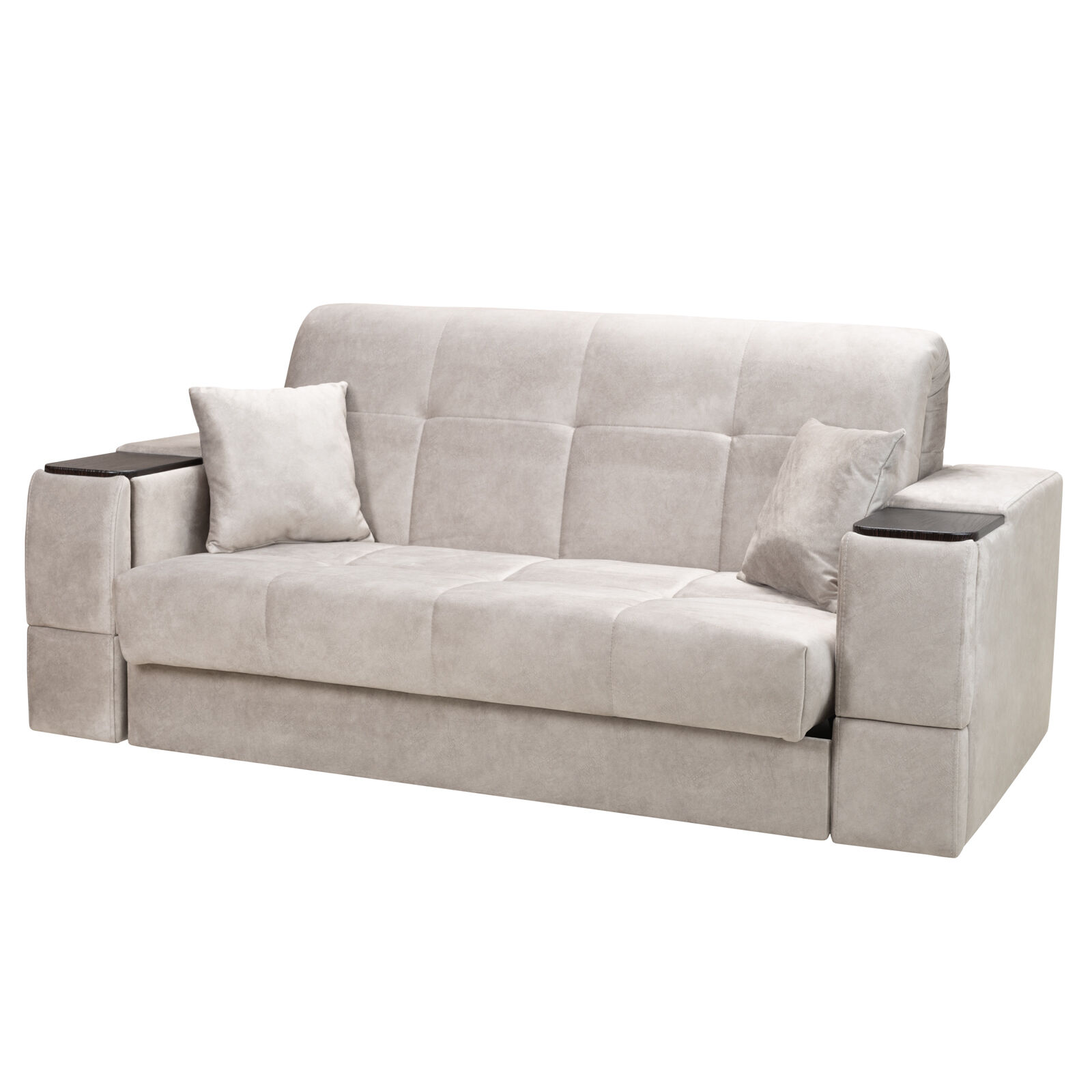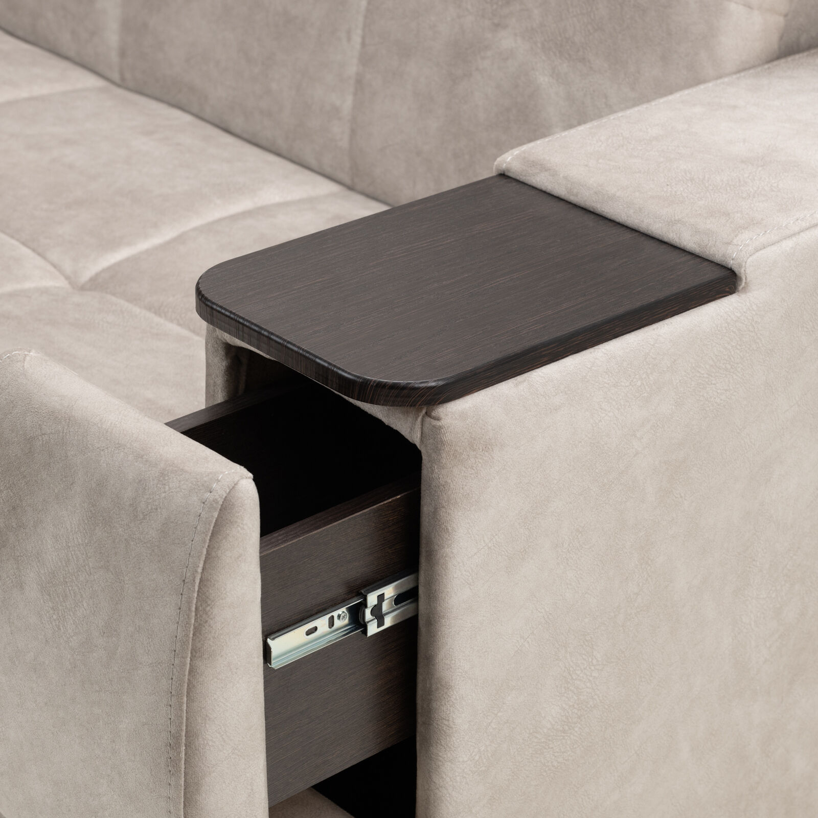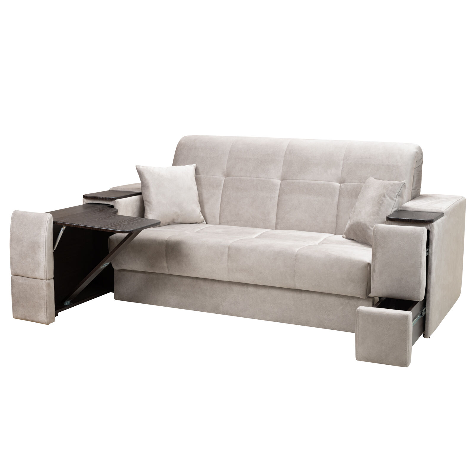 Диван Токио 4 БД №150 Fenix 15 Венге - оснащен выдвижным столиком из подлокотника, что позволяет комфортно отдохнуть после рабочего дня. Другой подлокотник оборудован выдвижными ящиками для хранения различных вещей. Такая мебель значительно экономит пространство в помещении и несомненно делает отдых на диване комфортнее, ведь буквально под рукой есть стол, на который можно поставить бокал, положить книгу или журнал. «Мебель поставляется в разобранном виде».