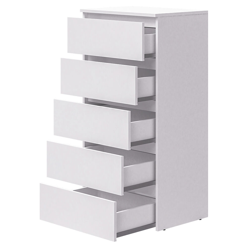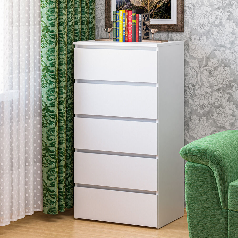 Комод 29 Белый. Вместительный комод обеспечит универсальную систему хранения. Оснащение: пять эргономичных ящика полного выдвижения бесшумного плавного хода. Регулируемые скрытые опоры компенсируют возможные неровности пола, надёжный материл гарантирует долговечность. Лаконичная модель функциональна и может быть адаптирована под различные потребности и условия. «Мебель поставляется в разобранном виде».