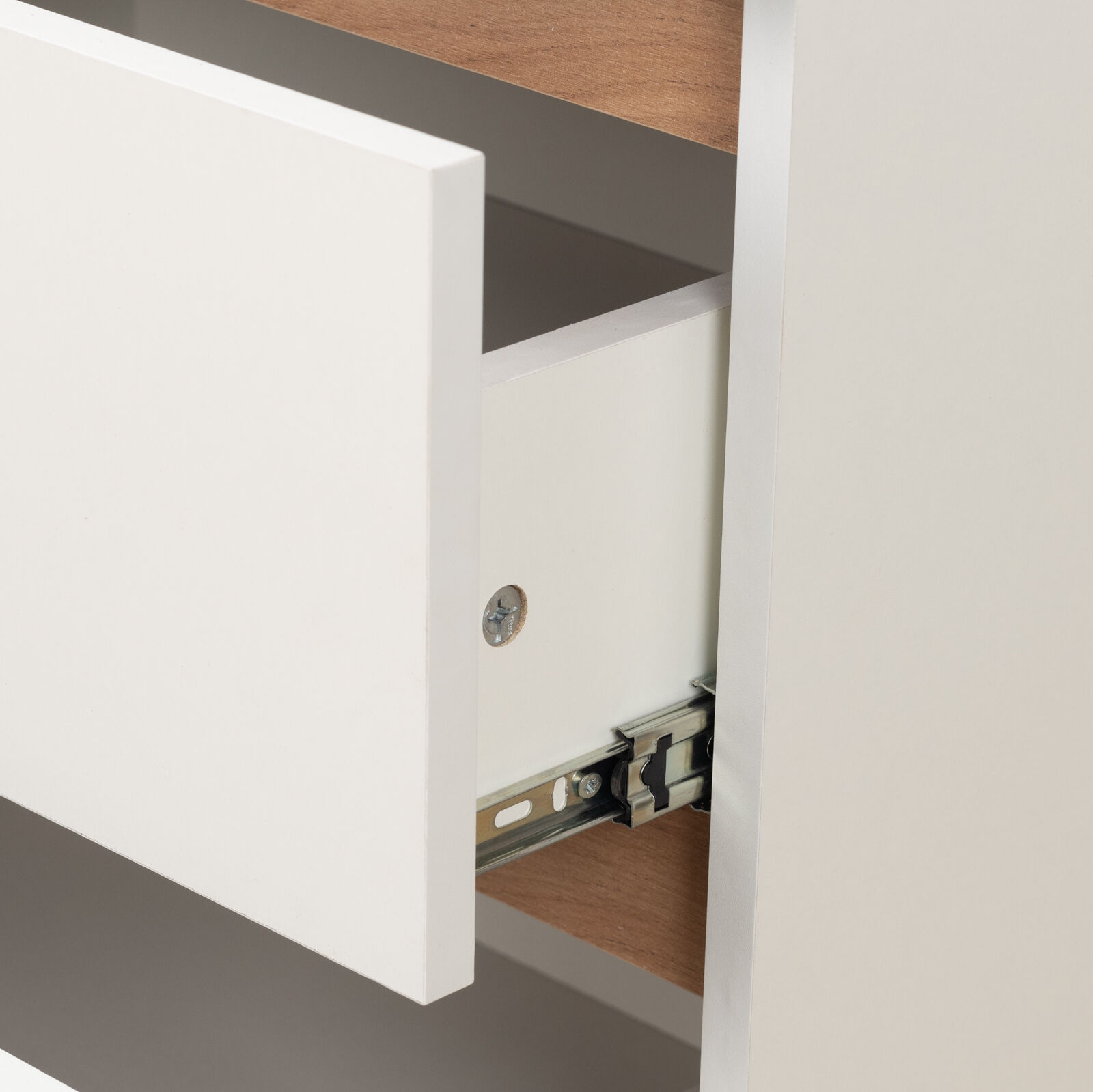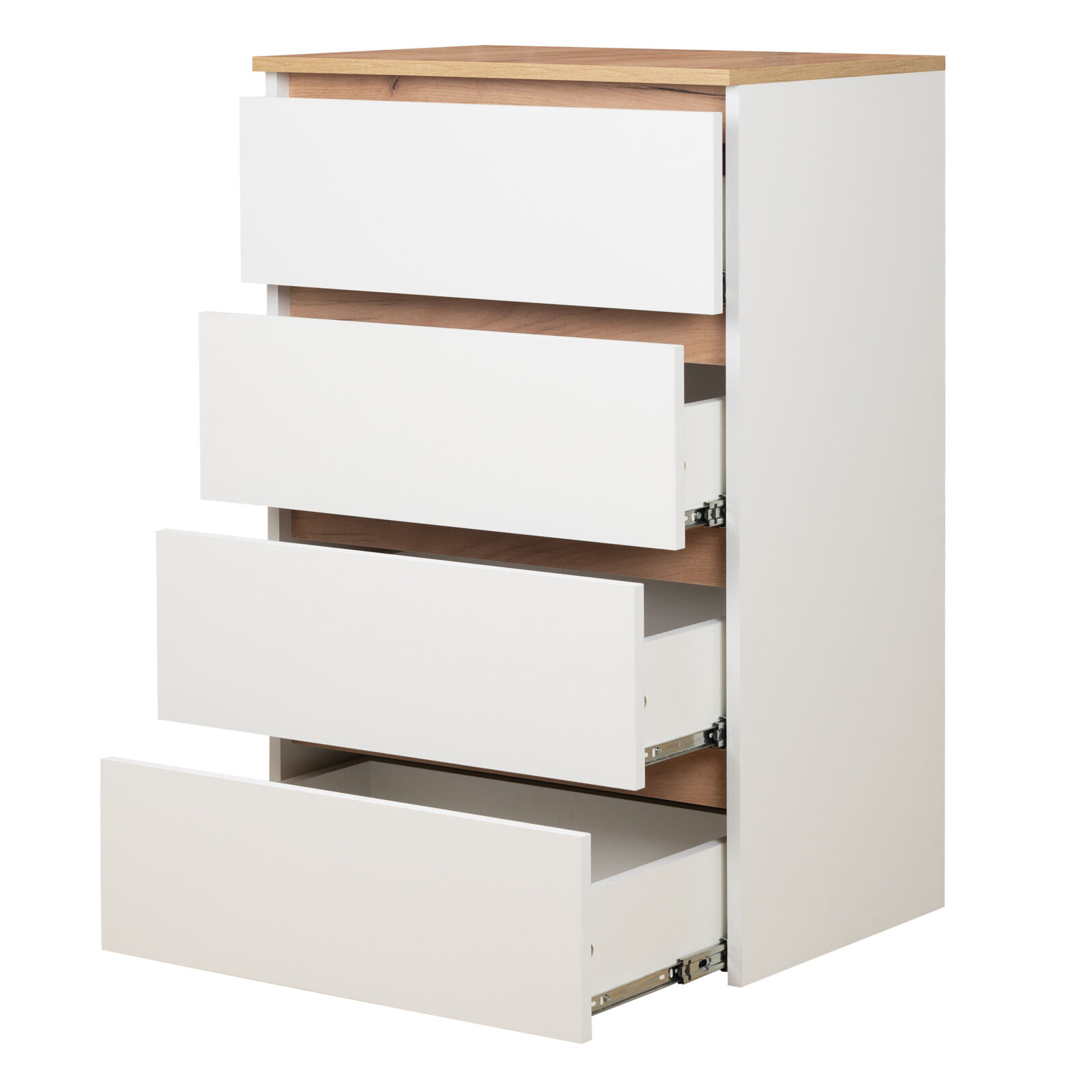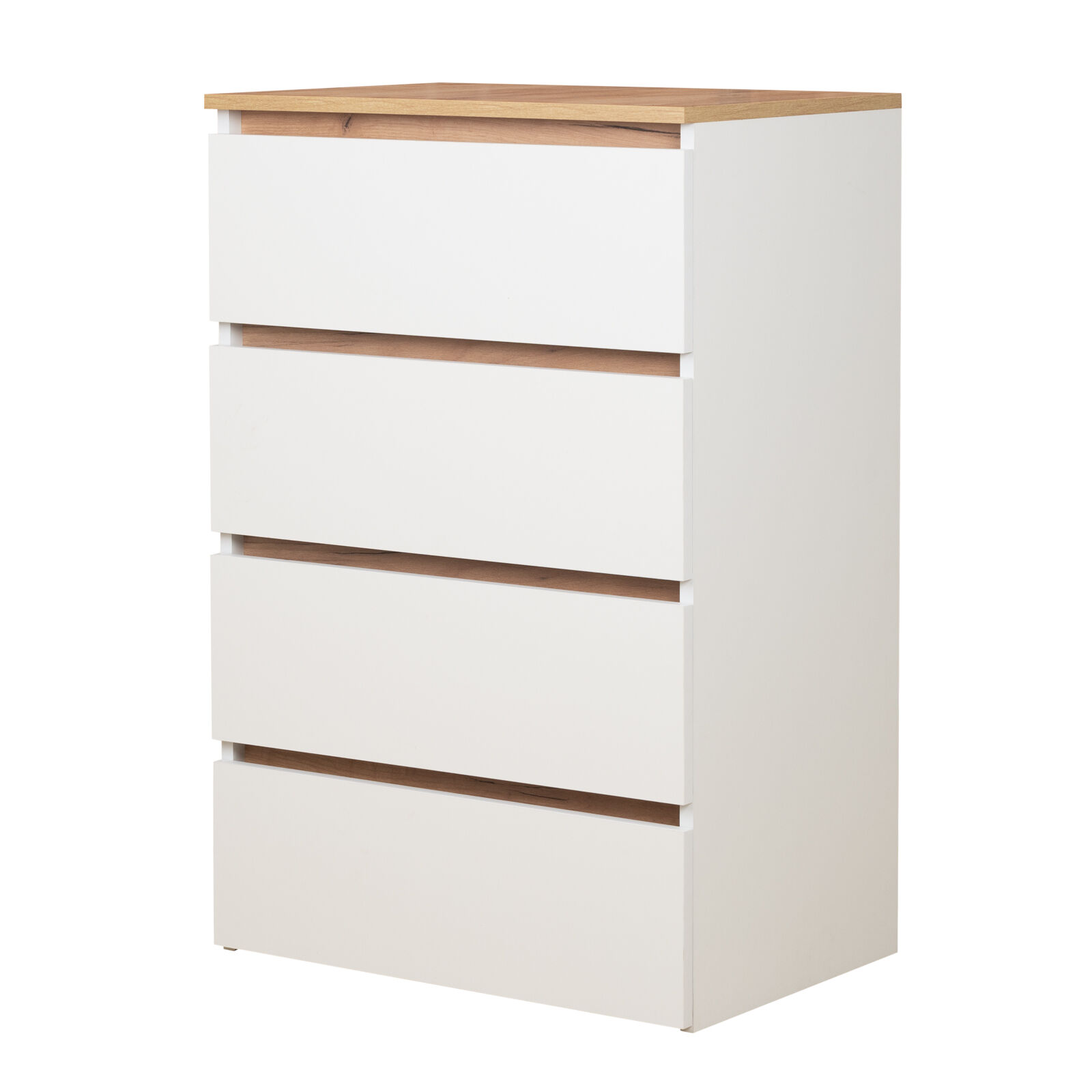 Комод 28 Белый Кр золотой. Вместительный комод обеспечит универсальную систему хранения. Оснащение: четыре ящика полного выдвижения бесшумного плавного хода. Регулируемые скрытые опоры компенсируют возможные неровности пола, надёжный материл гарантирует долговечность. Лаконичная модель функциональна и может быть адаптирована под различные потребности и условия. «Мебель поставляется в разобранном виде».