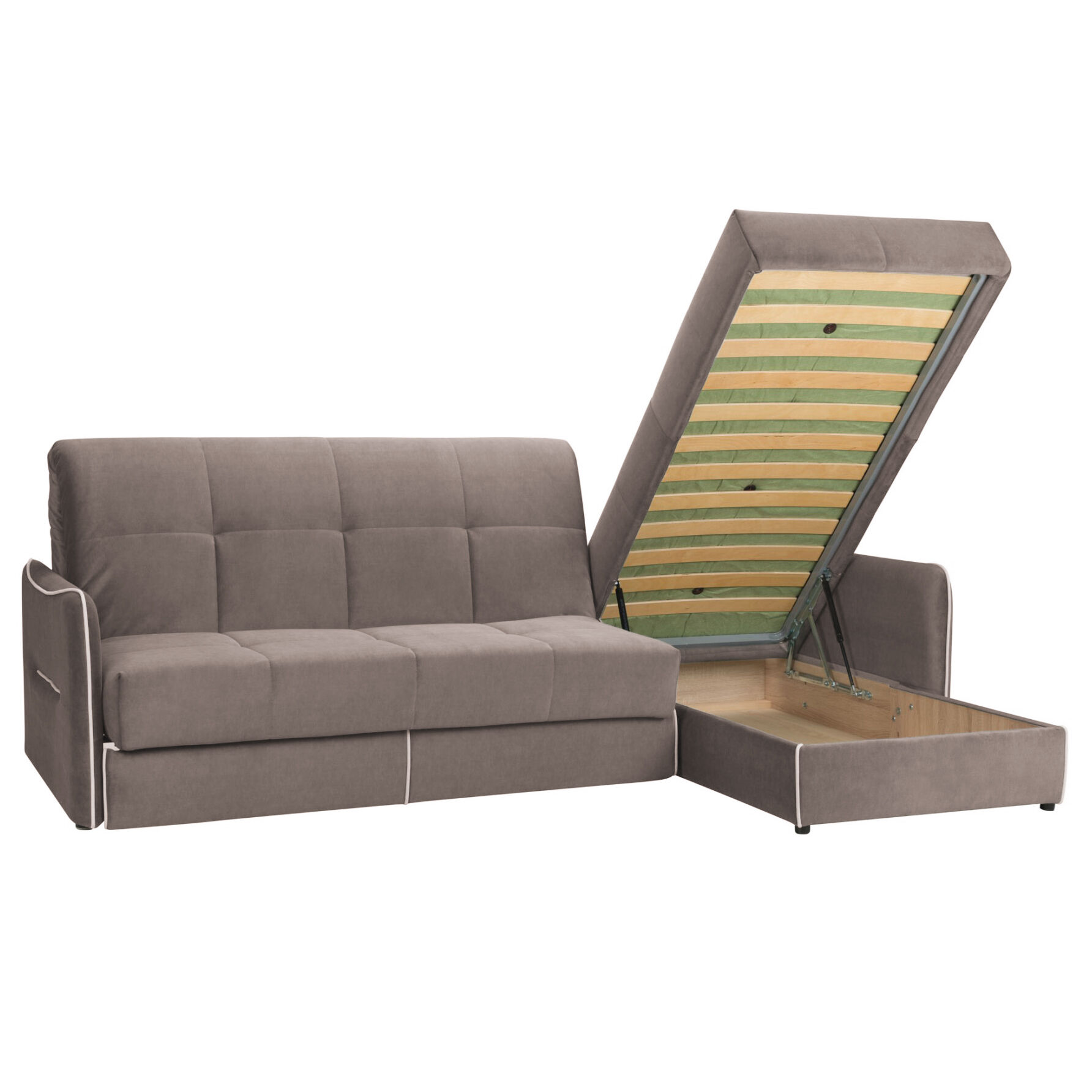 Диван Токио 2 ДУ ППУ Elefant 02-Elefant 06 . Аккуратный, без лишних деталей, продуманный до мелочей дизайн. Выкатная часть дополнительно снабжена специальными роликами с особым покрытием, предохраняющим напольное покрытие от царапин. Съемная чехловая система облегчает уход за обивкой дивана и ее замену. Специальная простежка чехла не позволяет дивану утратить свою форму в процессе эксплуатации. Металлический каркас. Бельевой ламинированный ящик в оттоманке. «Мебель поставляется в разобранном виде».