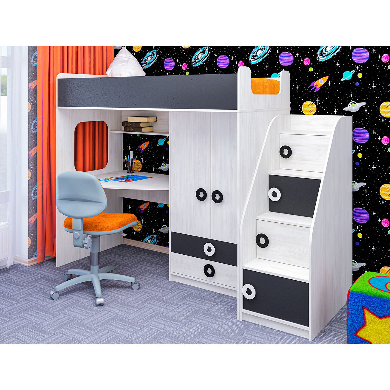 Кровать чердак «Адель» - функциональный и эргономичный детский комплекс, с полноценным рабочим, спальным местом. «Матрас в комплект не входит». «Мебель поставляется в разобранном виде».