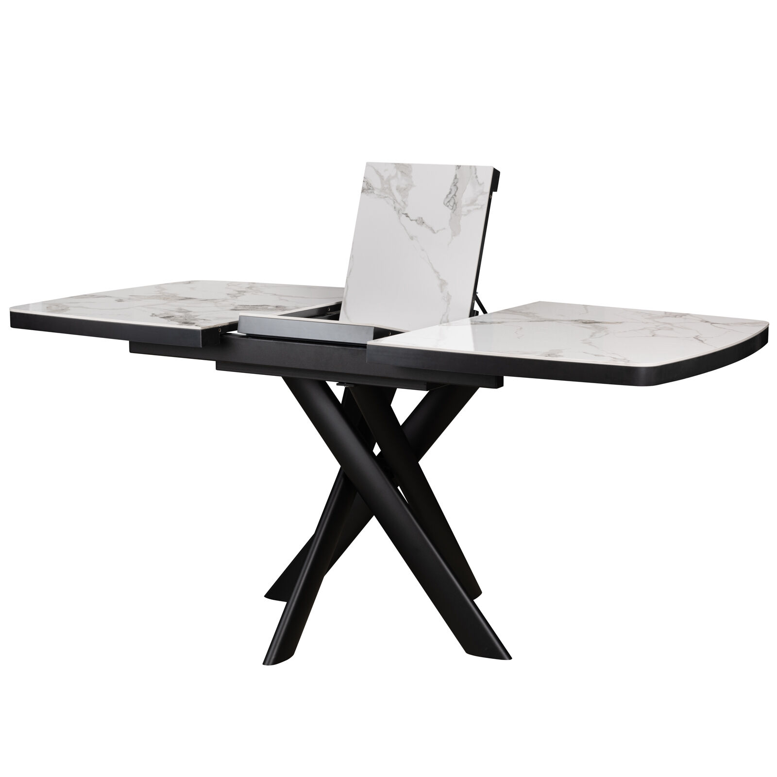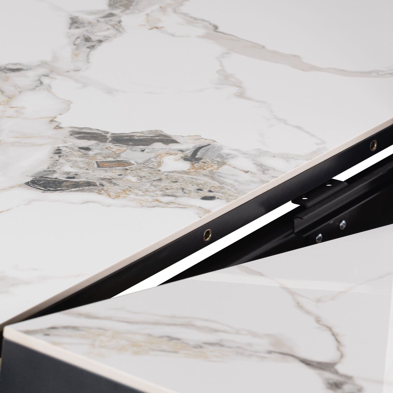 Стол керамика раздвижной LEONEL 130 (165)х85 CALLACATA GREY GLOSS ST CER Черный. Керамический стол известен своей устойчивостью к износу. Они устойчивы к царапинам, высоким температурам и влажности, что делает их идеальным выбором для кухни, где они подвергаются ежедневному использованию. Материал столешницы с гладкой, не пористой поверхностью, что делает её устойчивой к бактериям и плесени. «Мебель поставляется в разобранном виде».