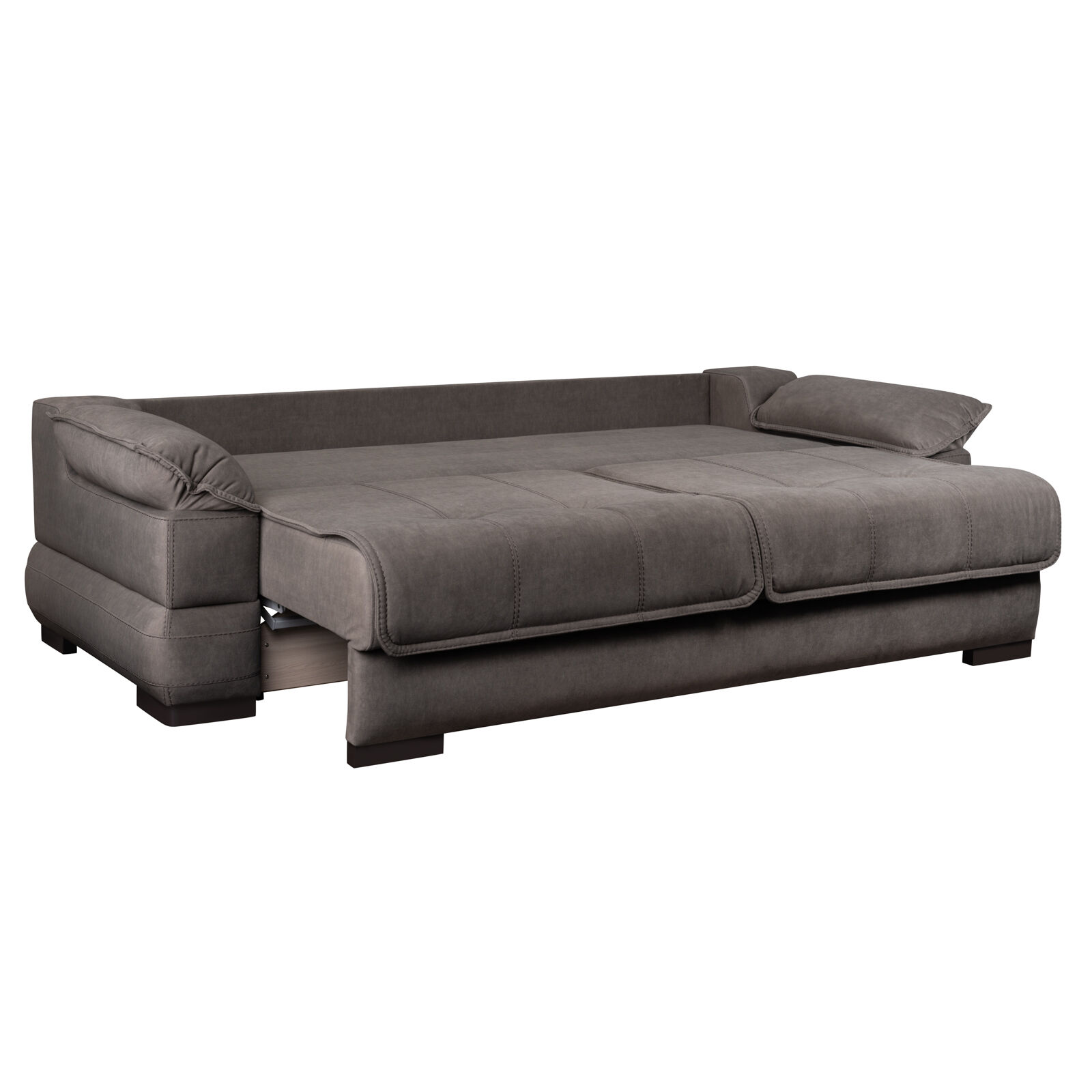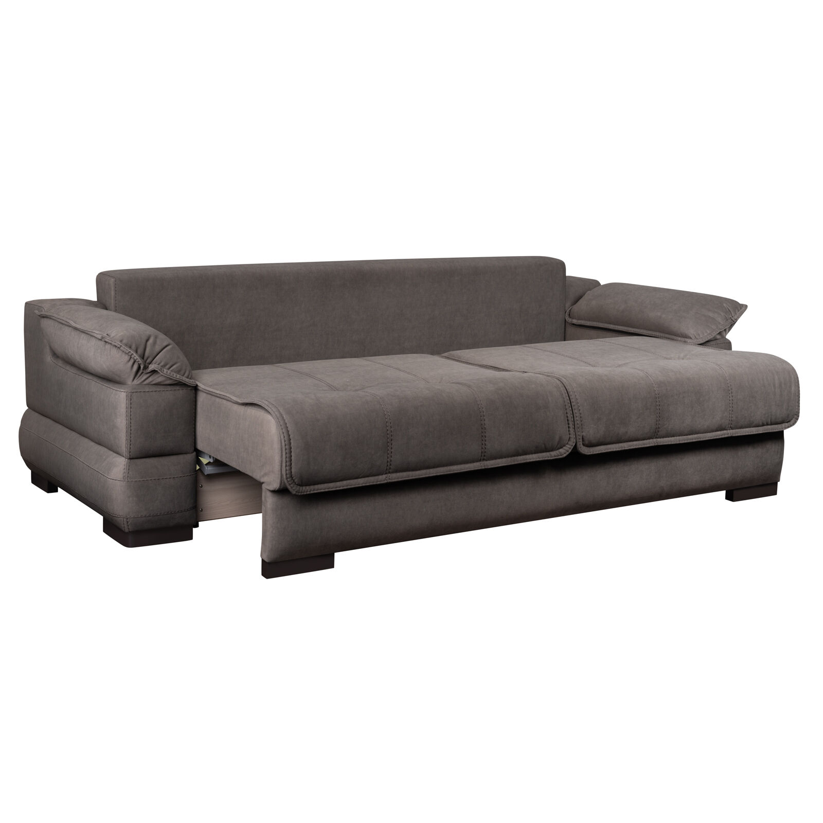 Диван прямой Леон Elefante 02. Каркас дивана изготовлен из фанерного бруса (ламель), фанеры, ЛДСП, МДФ, ДВП Каркас посадочного места и спинки изготовлен с независимым пружинным блоком (высота 120мм), механизм трансформации «Тик-Так». Диван состоит из ящика для хранения белья, сиденья, спинки, двух подлокотников и пристенной планки. Приспинные подушки съемные. Чехлы дивана расстрочены швейной нитью прошивной. «Мебель поставляется в разобранном виде».