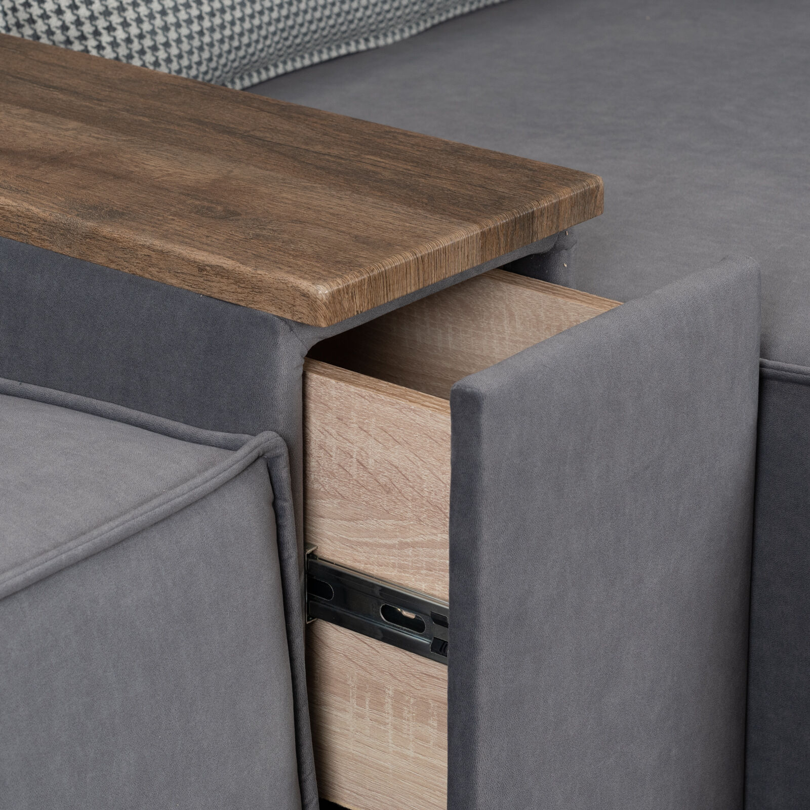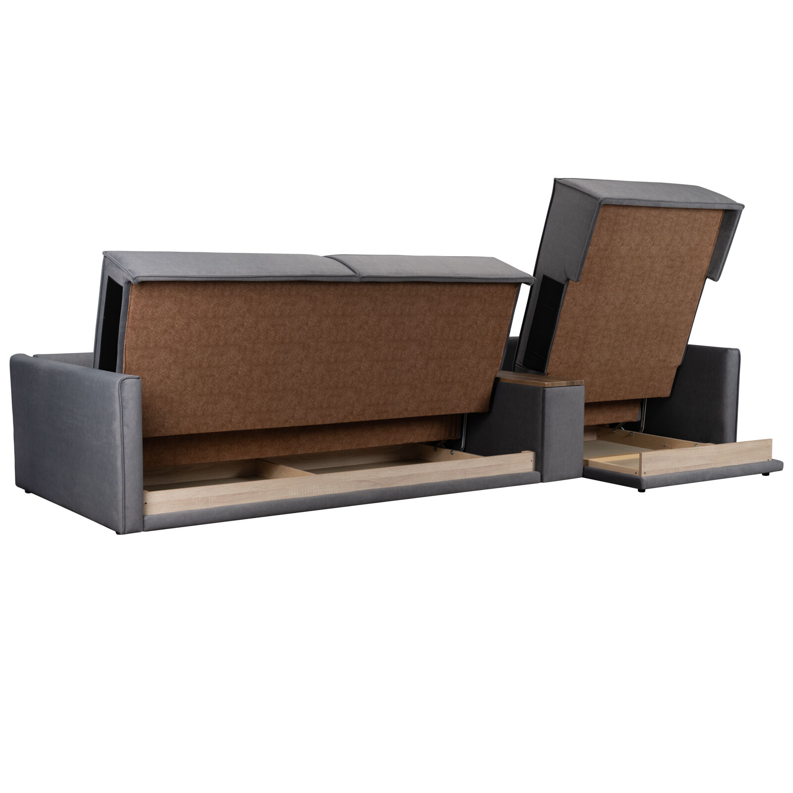 Диван «Лофт ДУ НПБ ELEFANTE 11 CALEDONIA 09 Орех». Стиль, комфорт, оригинальность. Функциональный диван без излишеств. Очень удобный в использовании механизм трансформации книжка libreta ( не нужно отодвигать от стены). Каркас изготовлен с использованием березовой фанеры и дерева хвойных пород. В разложенном виде диван создает полноценное, спальное место. В наполнении - НПБ - Независимый пружинный блок. Бельевой ламинированный ящик в диване и оттоманке. «Мебель поставляется в разобранном виде».