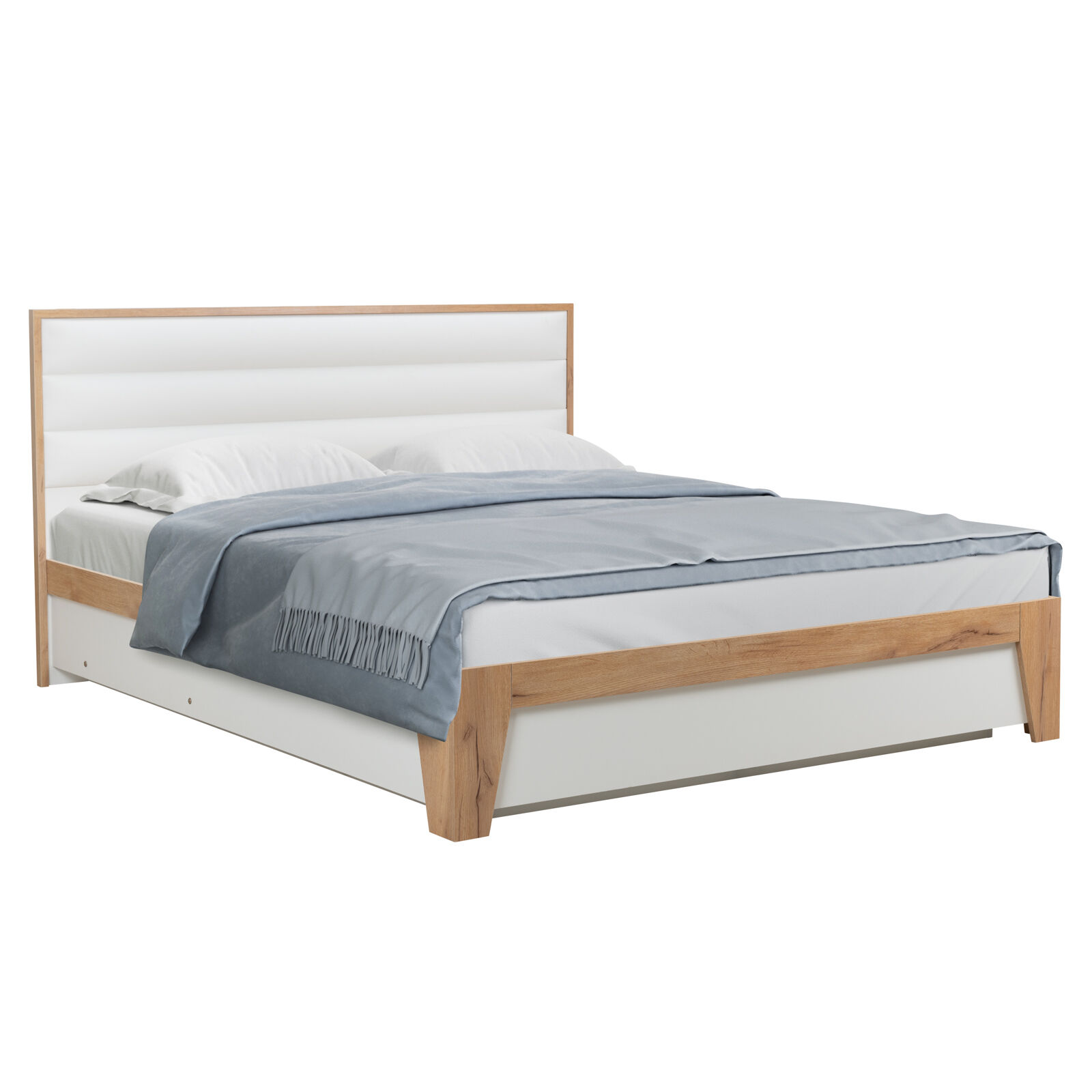 Кровать АЙРИС подчеркивают опоры и массивная рама, обрамляющая мягкое изголовье. Подушечки мягкой спинки укутаны в белую экокожу, которая приятна на ощупь и легко очищается от загрязнений. Двуспальная кровать с лаконичным дизайном и простыми геометрическими формами гармонично дополните современную спальню. «Мебель поставляется в разобранном виде». «Матрас в комплект не входит».