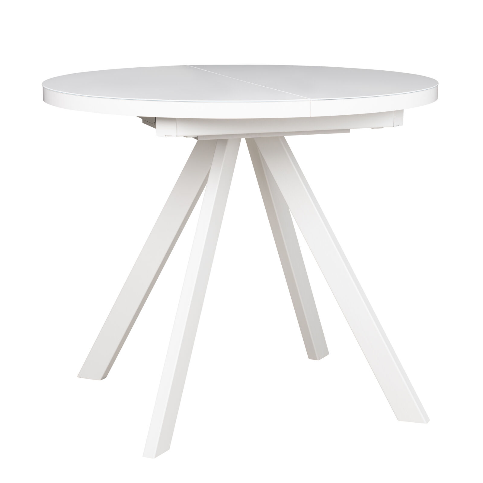 Стол круглый раздвижной RONDO М 90(125) Оптивайт Белый для современных интерьеров, форма стола позволяет разместить всех гостей, а удобная вставка стола, увеличивает столешницу до размера 1 350мм. Опоры стола выполнены из металла, удобные в уходе. «Мебель поставляется в разобранном виде».