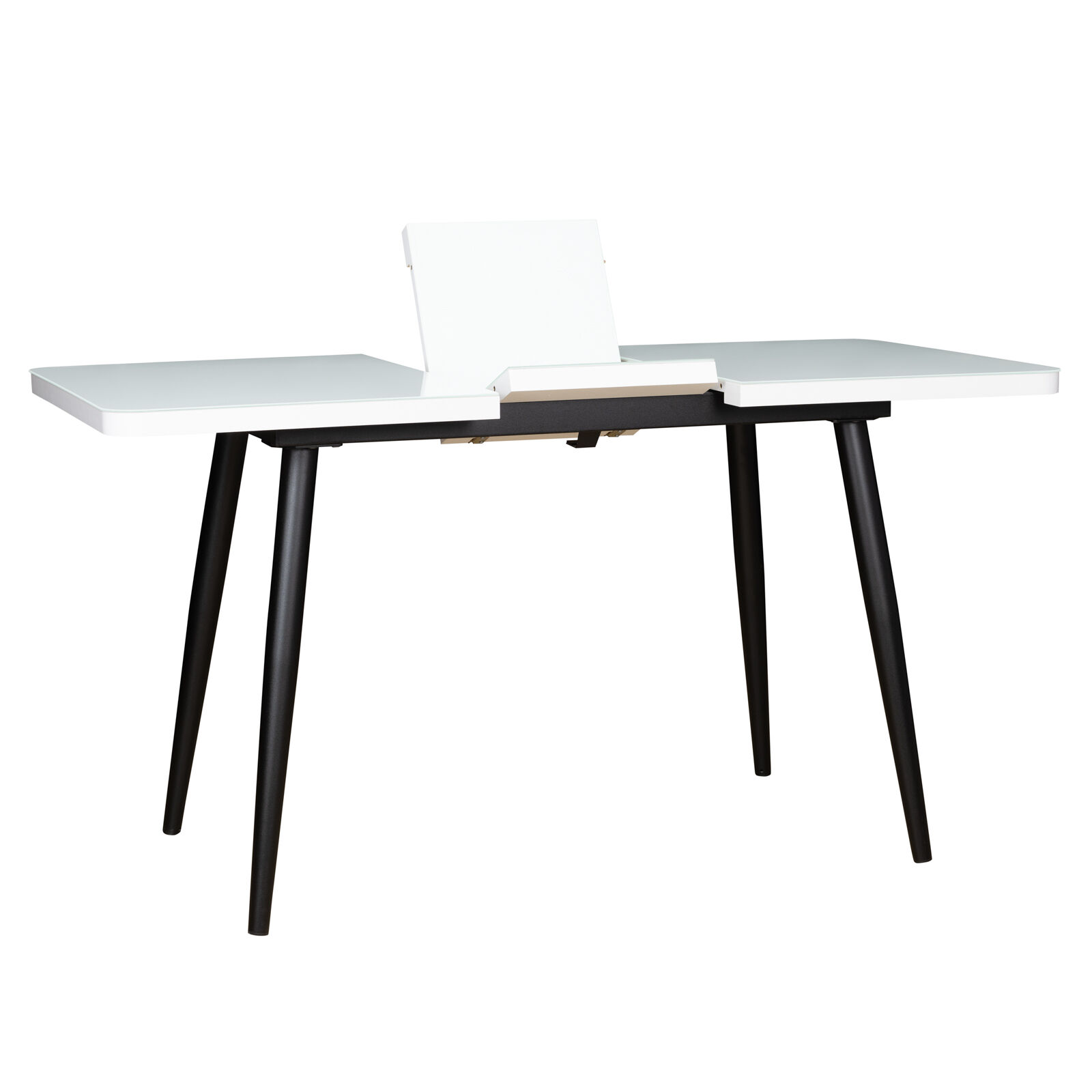 Стол раздвижной BORG RADIAL 110(142)х70 Белый Черный в стиле лофт универсален для обеденной зоны или кухни любой площади. Оснащен удобным синхронным механизмом раздвижения. Вставка-бабочка позволяет увеличить ширину стола на 40 см. «Мебель поставляется в разобранном виде».