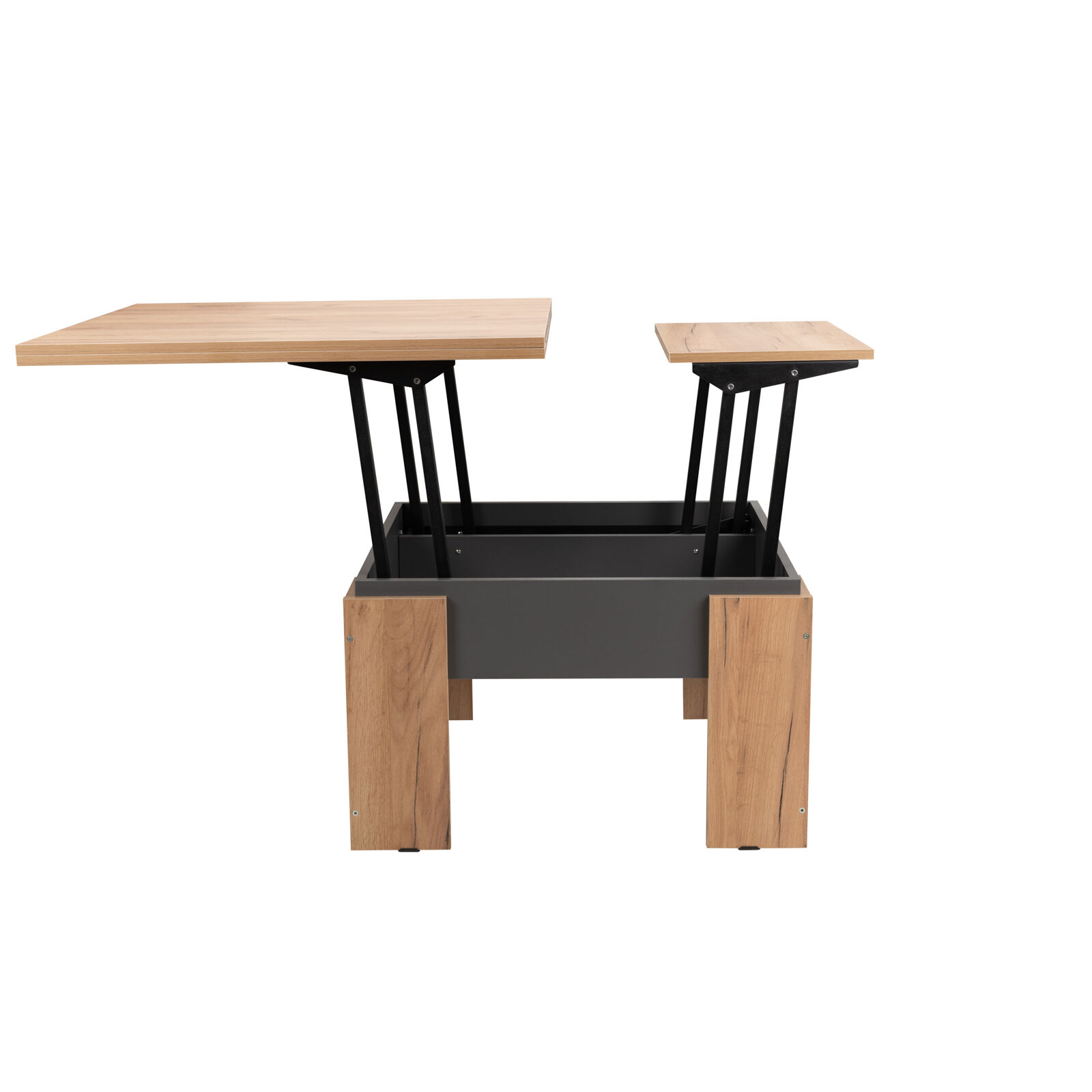 Стол СЖТ-2 легко трансформируется из журнального стола в обеденный стол,используется металлический синхронный механизм раскладывания. Легкий и простой механизм трансформации :достаточно поднять столешницу и разложить ее. Стол размещен на колесиках для легкого и удобного перемещения. Столешница имеет поворотно-раскладной механизм. «Мебель поставляется в разобранном виде».