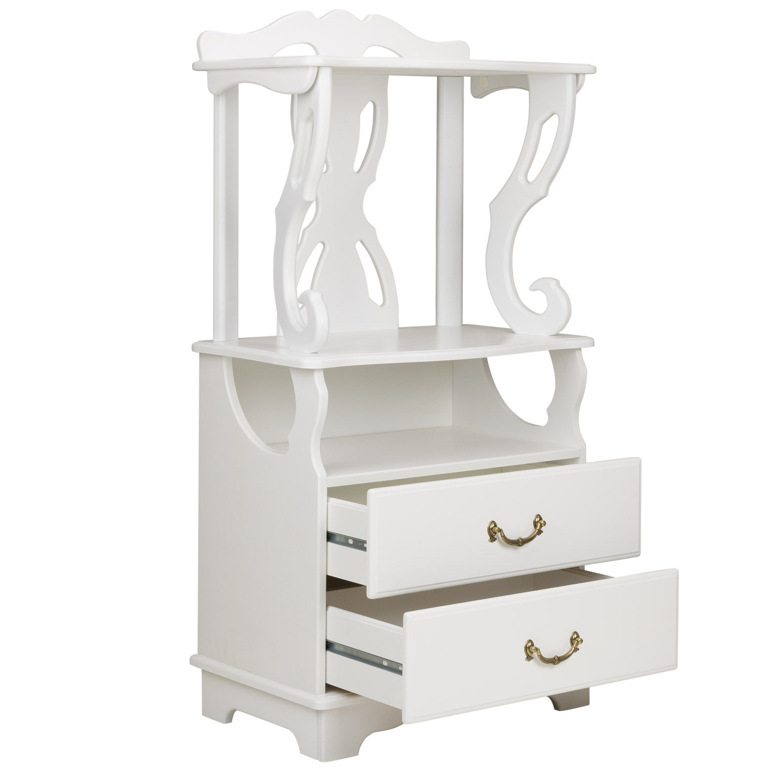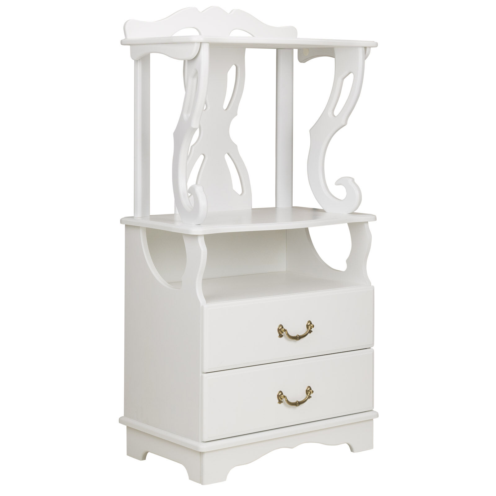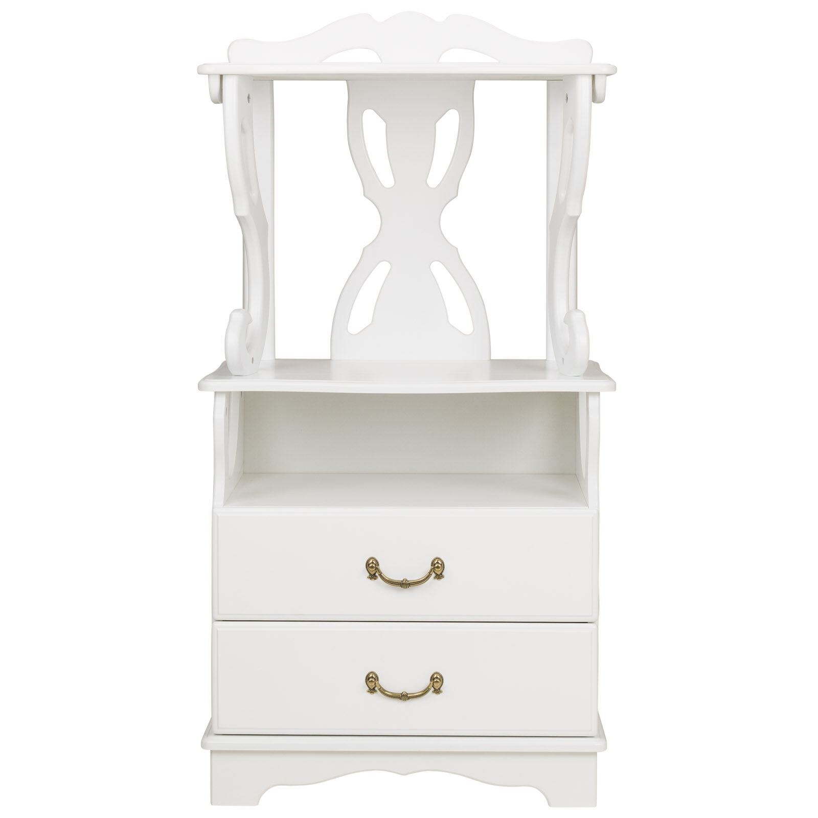 Оригинальная этажерка с двумя выдвижными ящиками и полками. Ящики и полочки позволят разместить большое количество предметов. Качественное исполнение и отличные материалы придают этажерке высокую надежность.