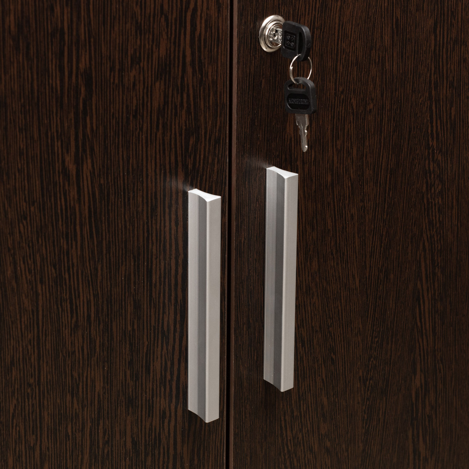 Шкаф для документов «Цезарь 21.12» является частью модульного набора для офиса «Цезарь». Дверки шкафа закрываются на замок. Регулируемые по высоте ножки позволяют установить модуль, скорректировав неровности пола. В изделии используются демпферы для мягкого закрывания дверей. «Мебель поставляется в разобранном виде».