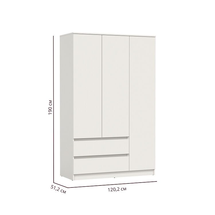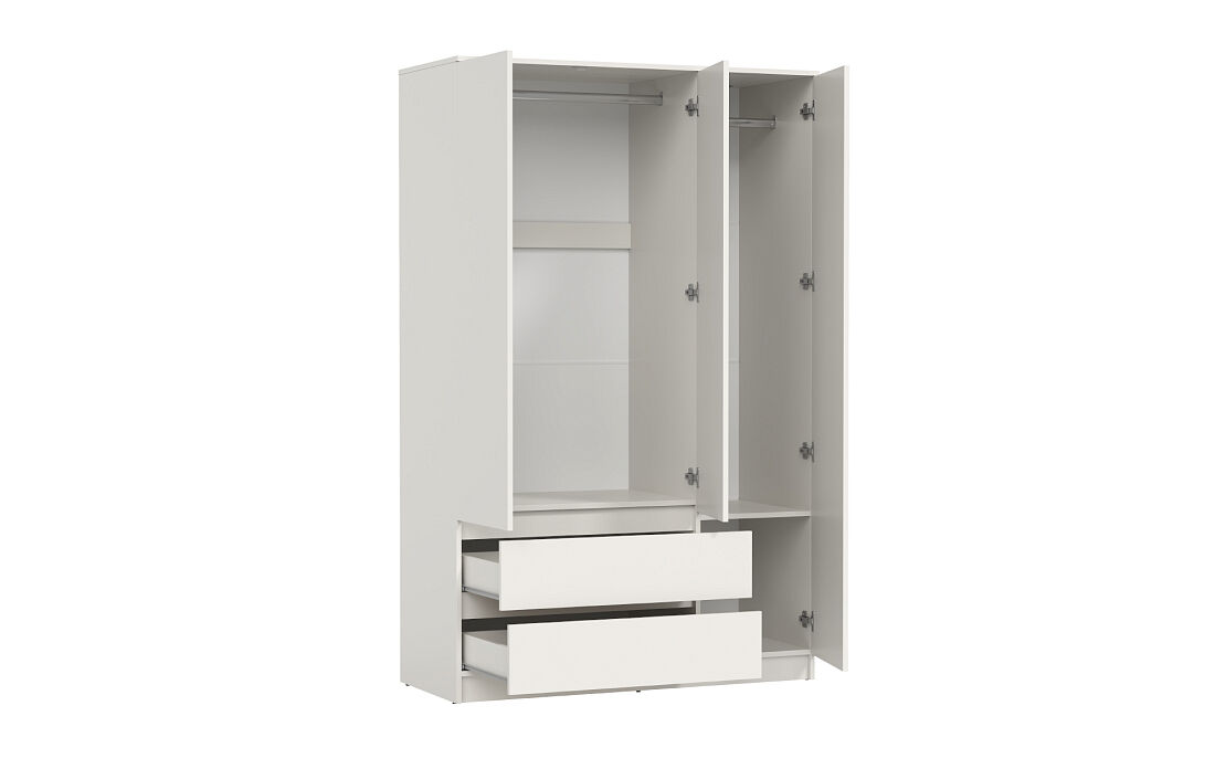 Шкаф 3х створчатый Берген 82.02 1900x1202x512 Белый - идеально подходит для тех, кто ценит комфортное размещение вещей, удобство эксплуатации и разумность затрат. «Мебель поставляется в разобранном виде».