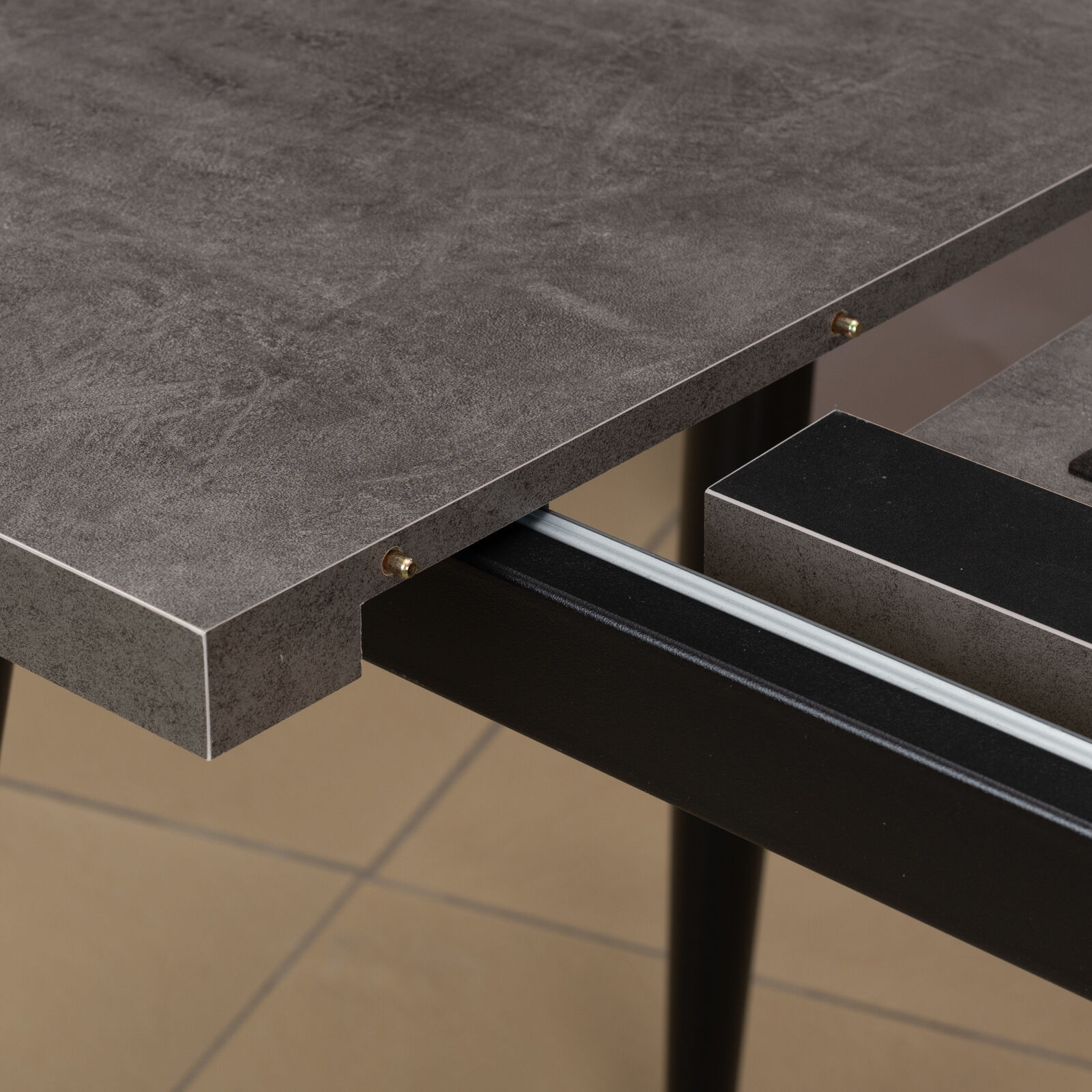 Стол раздвижной BORG RADIAL 110(142)х70 Дымчатая керамика Черный - в стиле лофт универсален для обеденной зоны или кухни любой площади. Оснащен удобным синхронным механизмом раздвижения. Вставка-бабочка позволяет увеличить ширину стола на 40 см. «Мебель поставляется в разобранном виде».