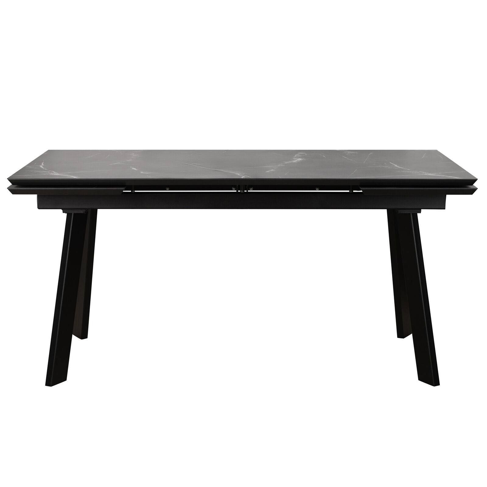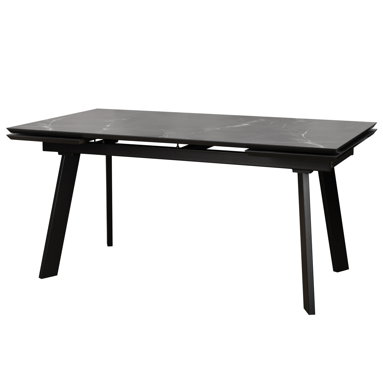 Стол раздвижной ALTEZA FOUR 140 (80)х90 Камень Темный Черный . Прямоугольная столешница копирует поверхность натурального камня с выраженной фактурой. Две вставки, расположенные с торцов, и надежный раздвижной механизм быстро увеличивают длину стола до 240 сантиметров. Массивное подстолье выполнено из металла с порошковым покрытием. Комбинированная столешница из ЛДСП (22 мм) и HPL-пластика (3,5 мм) устойчива к ударам, износу, воздействию влаги, тепла, бытовой химии и солнечных лучей. «Мебель поставляется в разобранном виде».