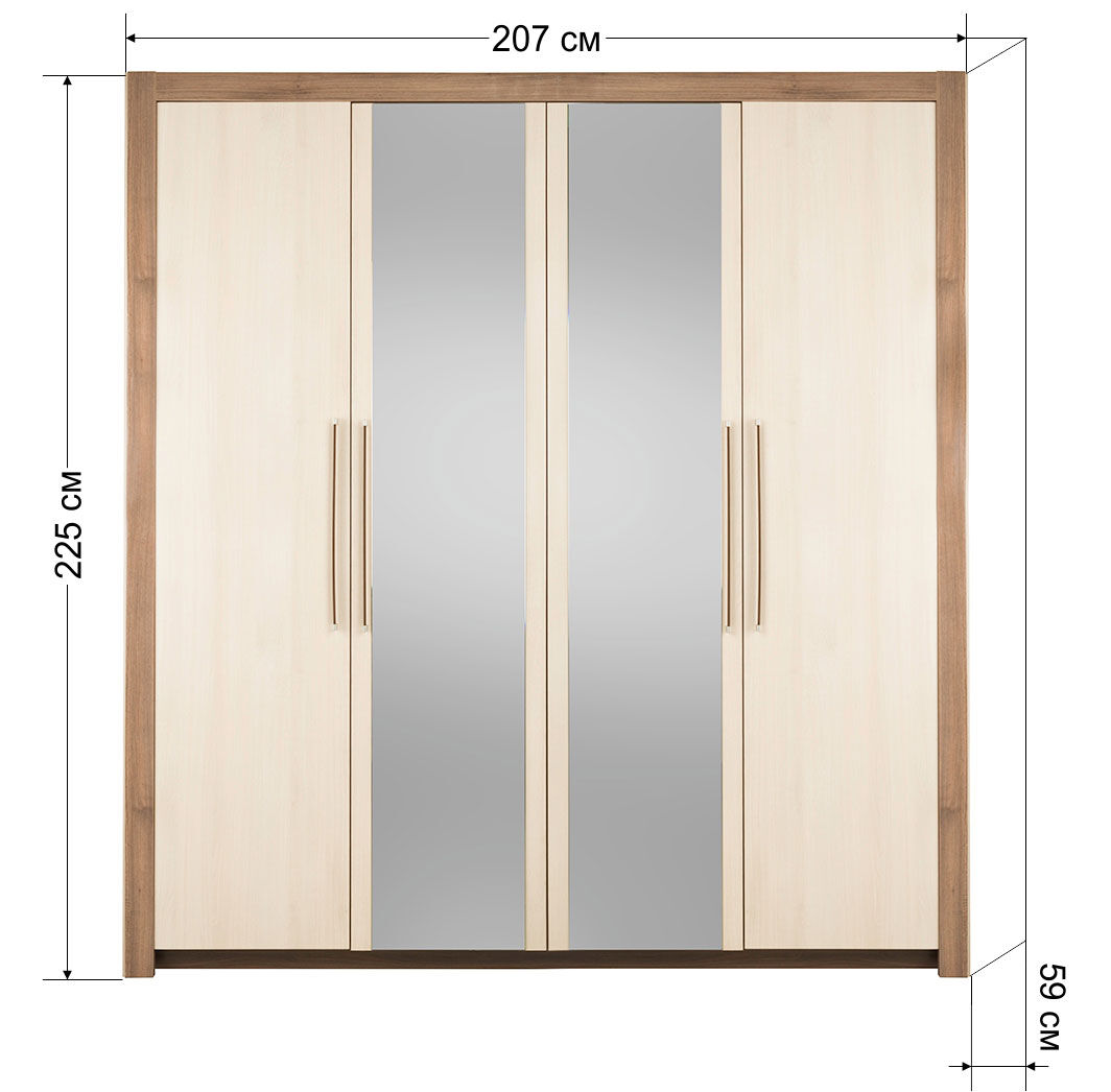 Шкаф для одежды Мартель-2 4-х створчатый с зеркалом дуб шамони/глянец