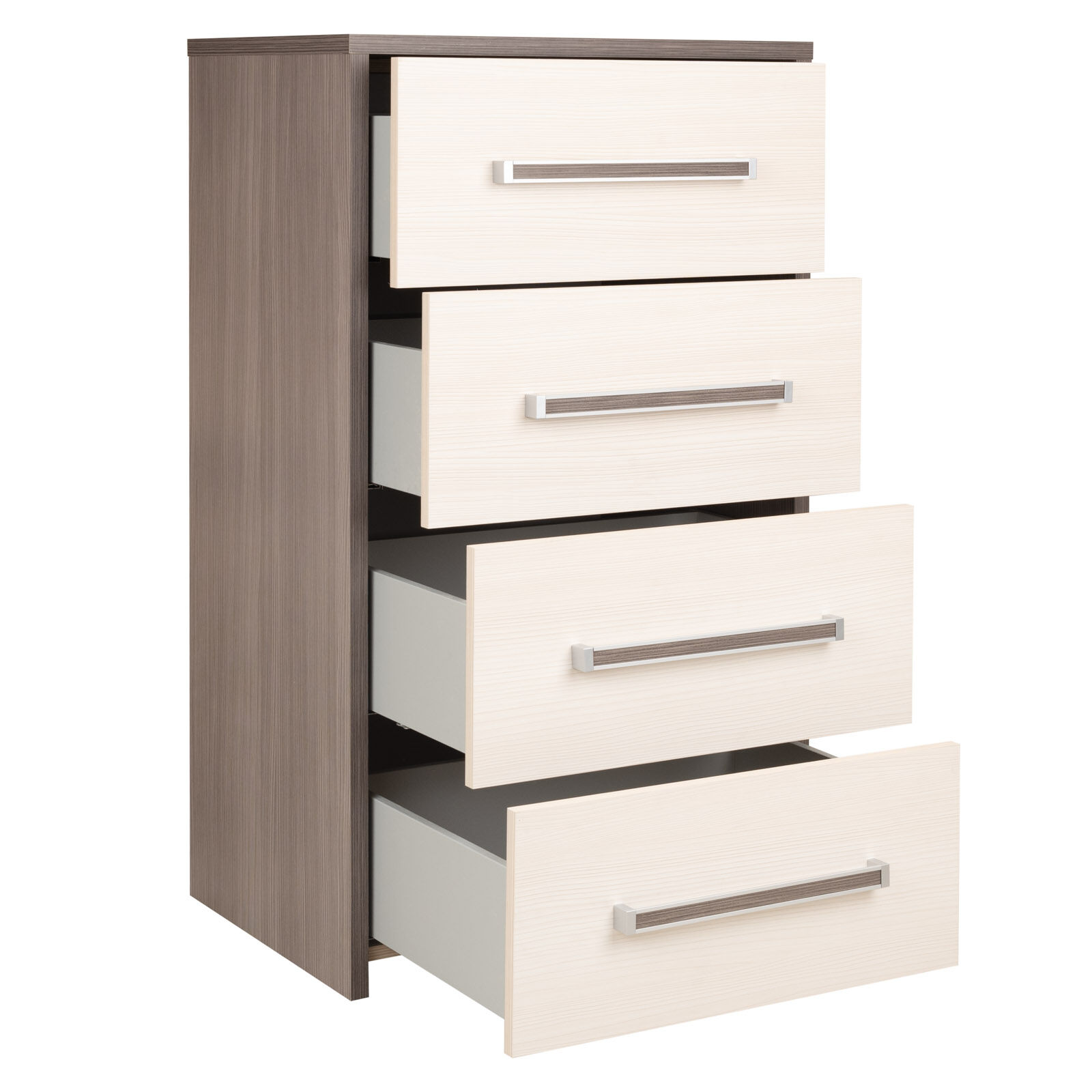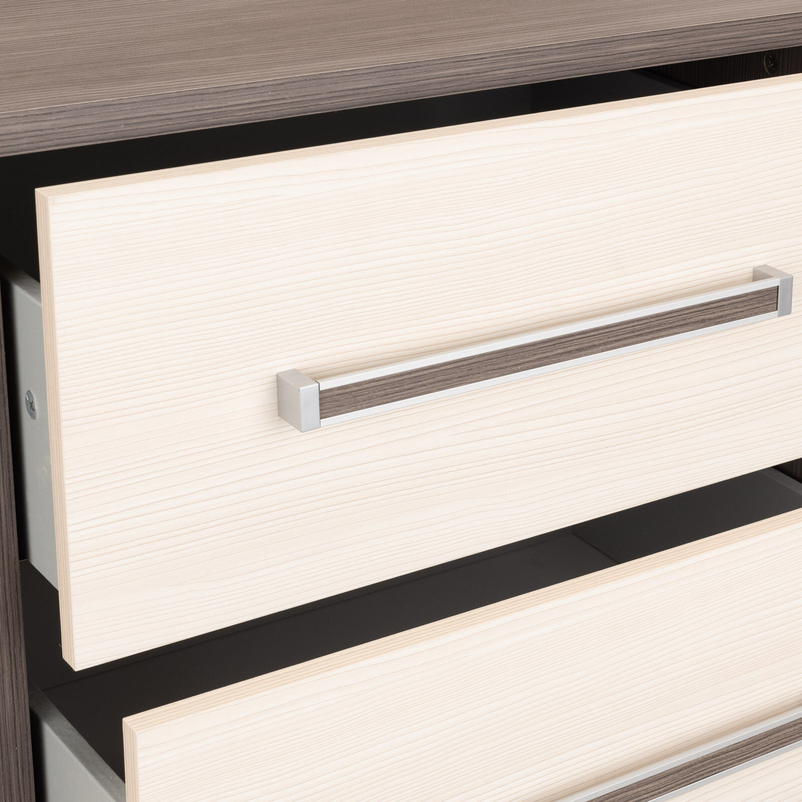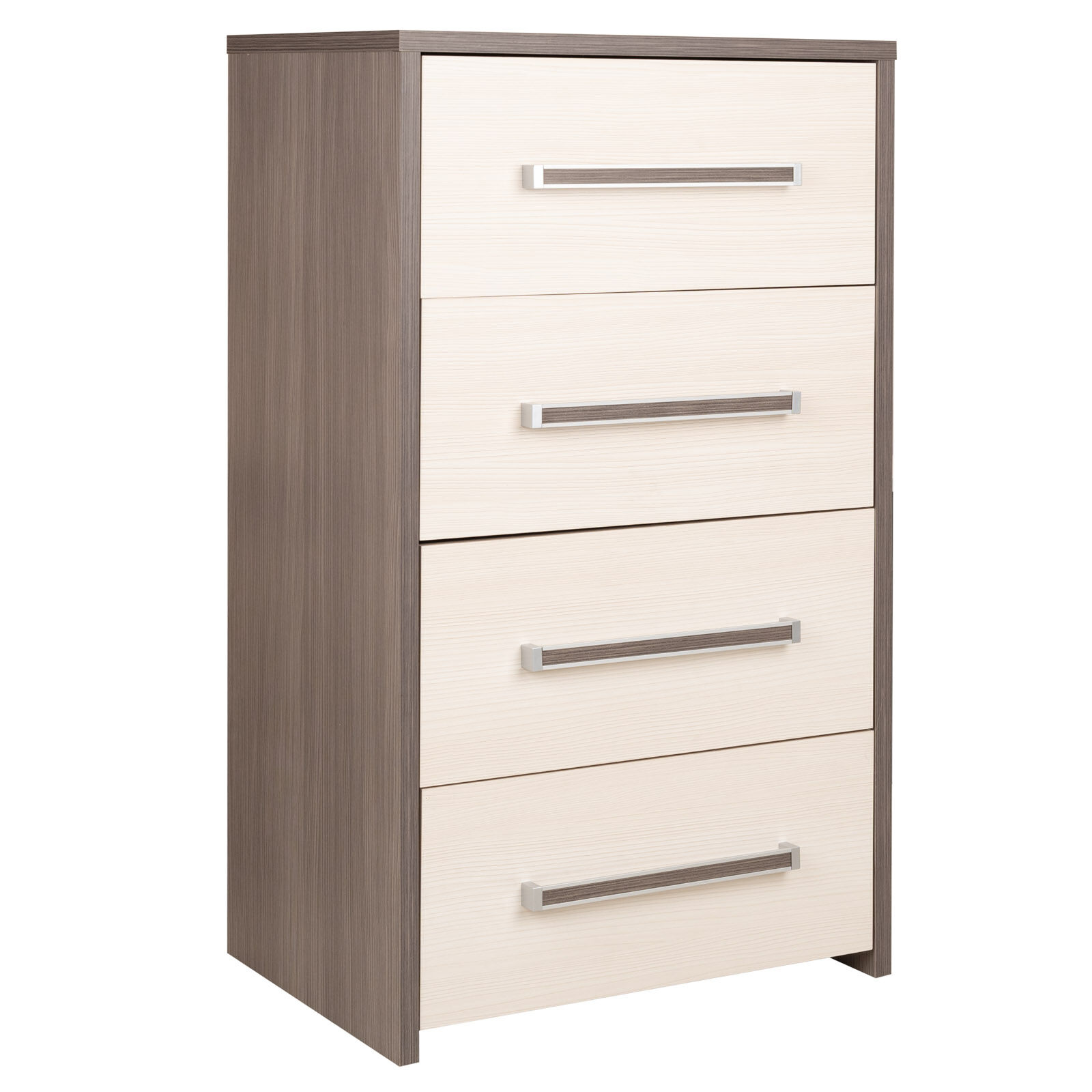 Комод Ulla — прекрасный выбор для небольшой спальни, когда приобретение шкафа нецелесообразно. Вместительные выдвижные ящики декорированы элегантными накладками. Спокойные тона, строгие линии и минималистичный дизайн. Ламинированное покрытие придает комоду элегантный внешний вид, защищает от влаги и ударов, делает его практичным и долговечным. Идеален для хранения постельного белья, полотенец, одежды, различных мелочей.