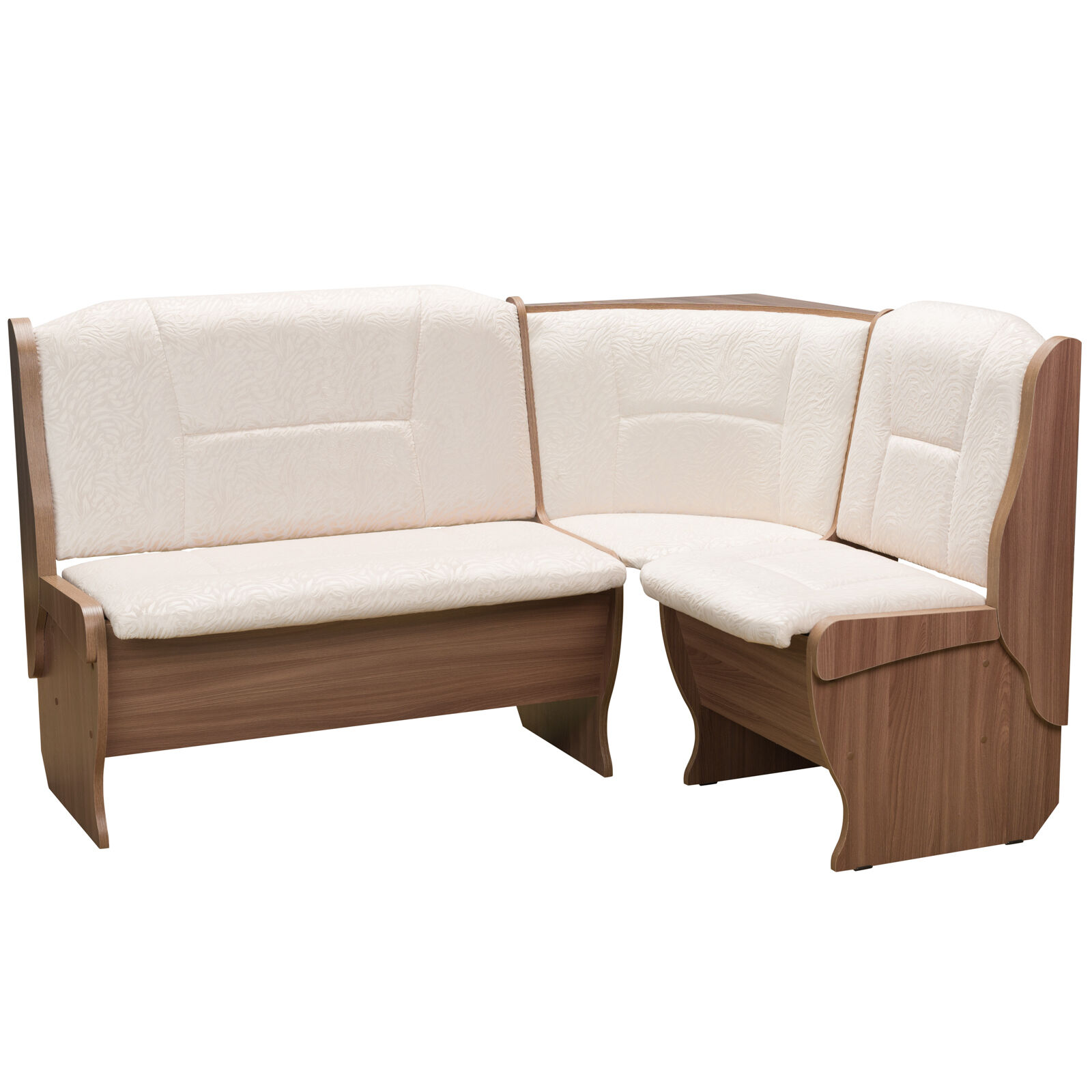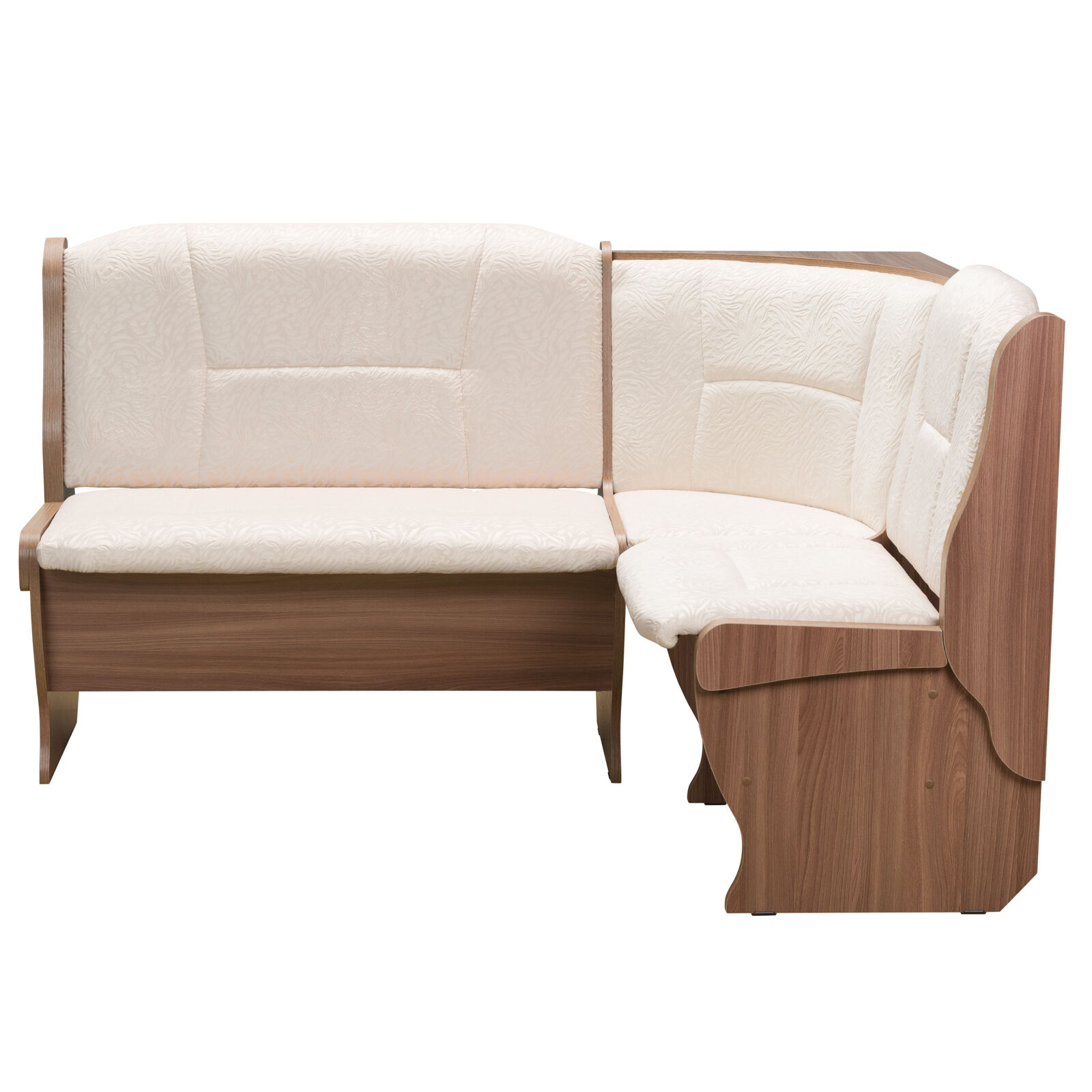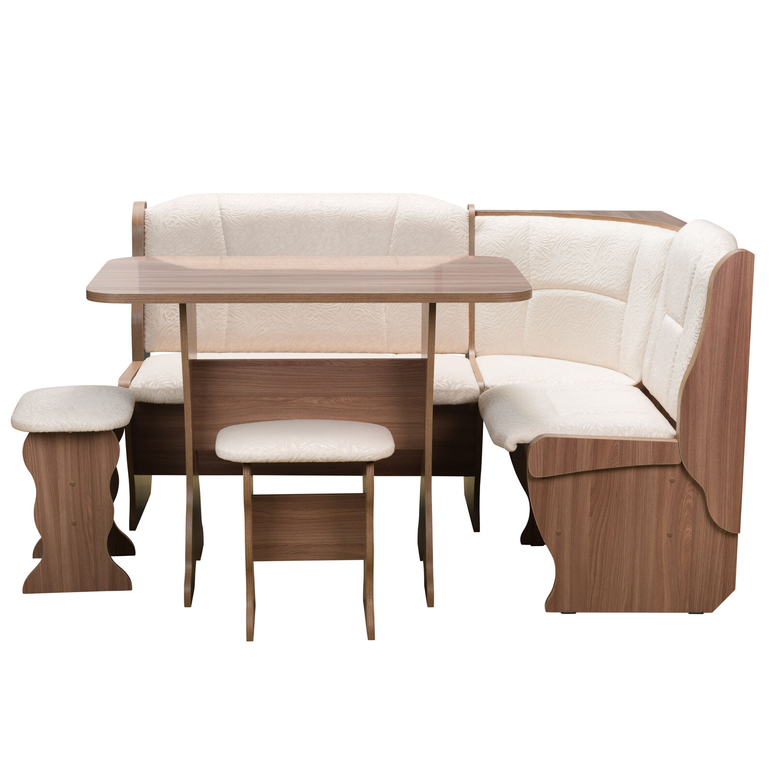 Стильный и современный кухонный уголок «OРХИДЕЯ Ясень Шимо флок Карамель» состоит из углового дивана с двумя ящиками, обеденного стола и двух кухонных табуретов. Диван легко вмещает три или четыре человека, а дополнительными местами у обеденного стола станут удобные табуреты с мягкой обивкой. Для надежности и практичности использования столешница покрыта термостойким пластиком. Функциональный набор станет отличным выбором для обустройства кухни. Угловой диван можно собрать как на правую, так и на левую сторону. «Мебель поставляется в разобранном виде».
