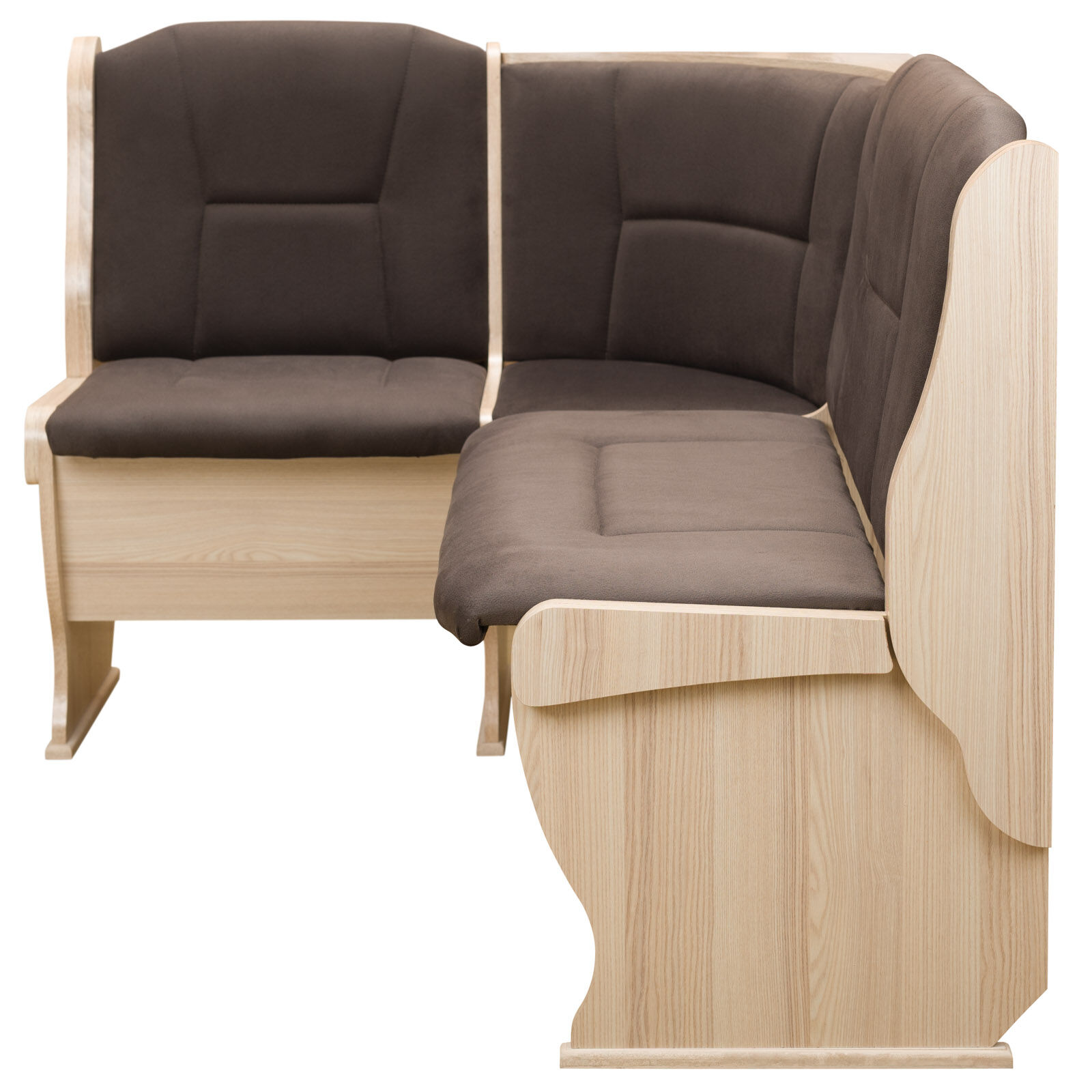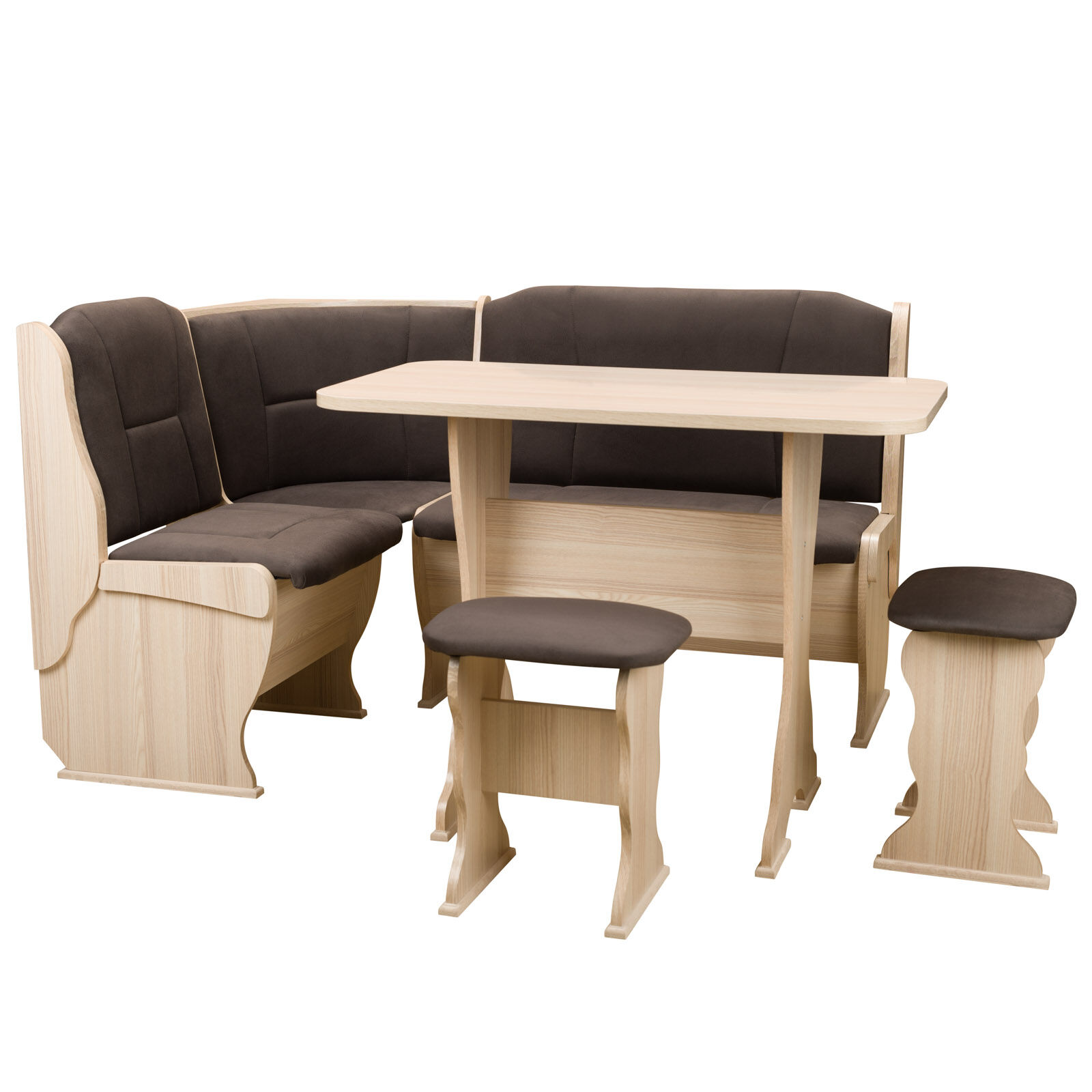 Стильный и современный кухонный уголок «Орхидея Ясень-Велюр шоколад» состоит из углового дивана с двумя ящиками, обеденного стола и двух кухонных табуретов. Диван легко вмещает три или четыре человека, а дополнительными местами у обеденного стола станут удобные табуреты с мягкой обивкой. Для надежности и практичности использования столешница покрыта термостойким пластиком. Функциональный набор станет отличным выбором для обустройства кухни. Угловой диван можно собрать как на правую, так и на левую сторону. «Мебель поставляется в разобранном виде».