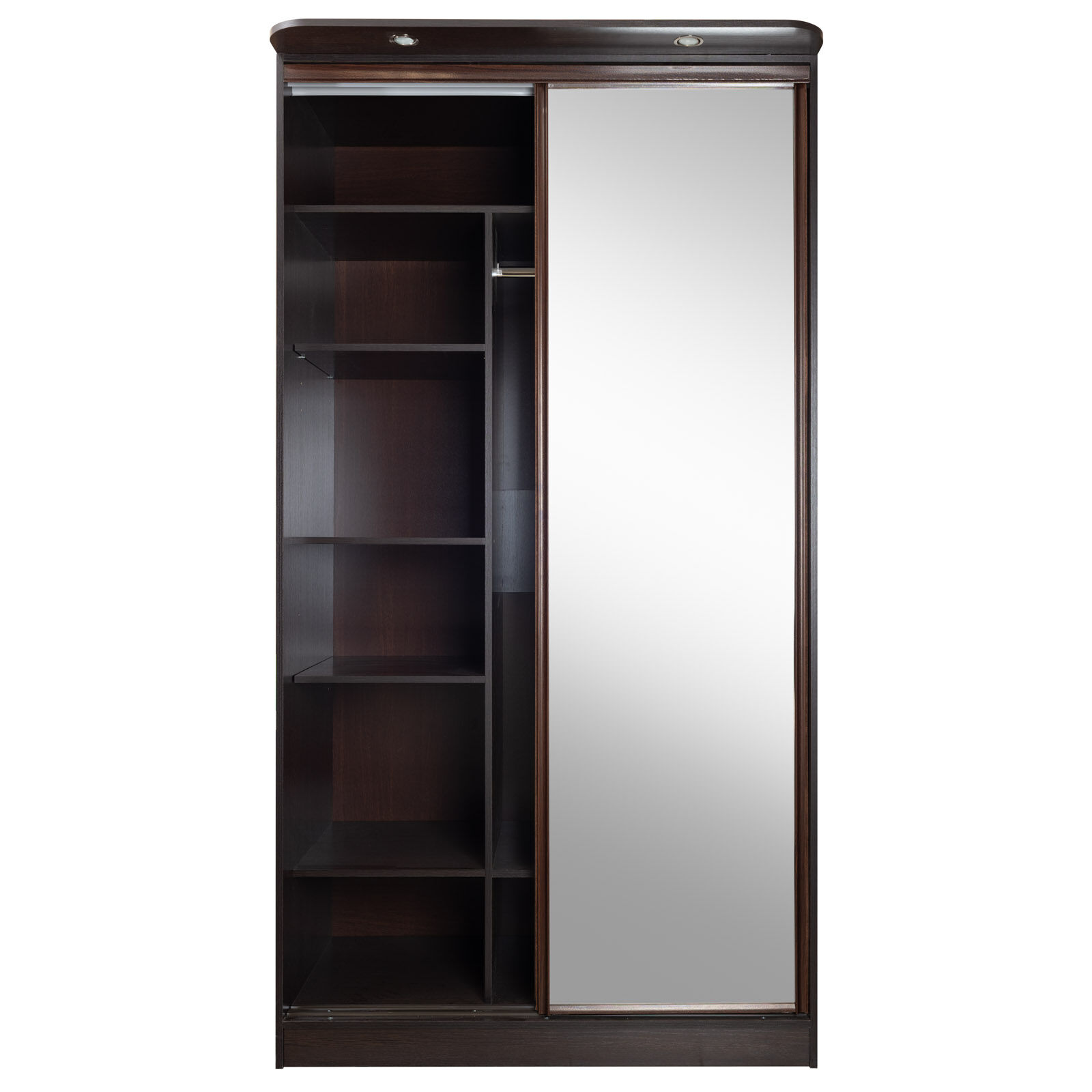 Продуманное внутреннее наполнение шкафа-купе «Домашний 303 венге» состоит из стеллажа для белья и стационарной штанги длиной 725 мм. На ней поместится как минимум 10 плечиков с верхней одеждой. В шкафу-купе используется стальная система «Найди». Применяемый в ее изготовлении металл обеспечивает мебели необходимую прочность и долговечность. По краю дверей шкафа-купе защитная пленка препятствует повреждению красочного слоя металлического профиля. После установки шкафа ее можно удалить. В комплектацию входит шлегель - щётки с толстым ворсом, которые устанавливаются на профиль дверей шкафа-купе и приглушают удары дверей при закрывании, а также способствуют пыленепроницаемости. «Мебель поставляется в разобранном виде».