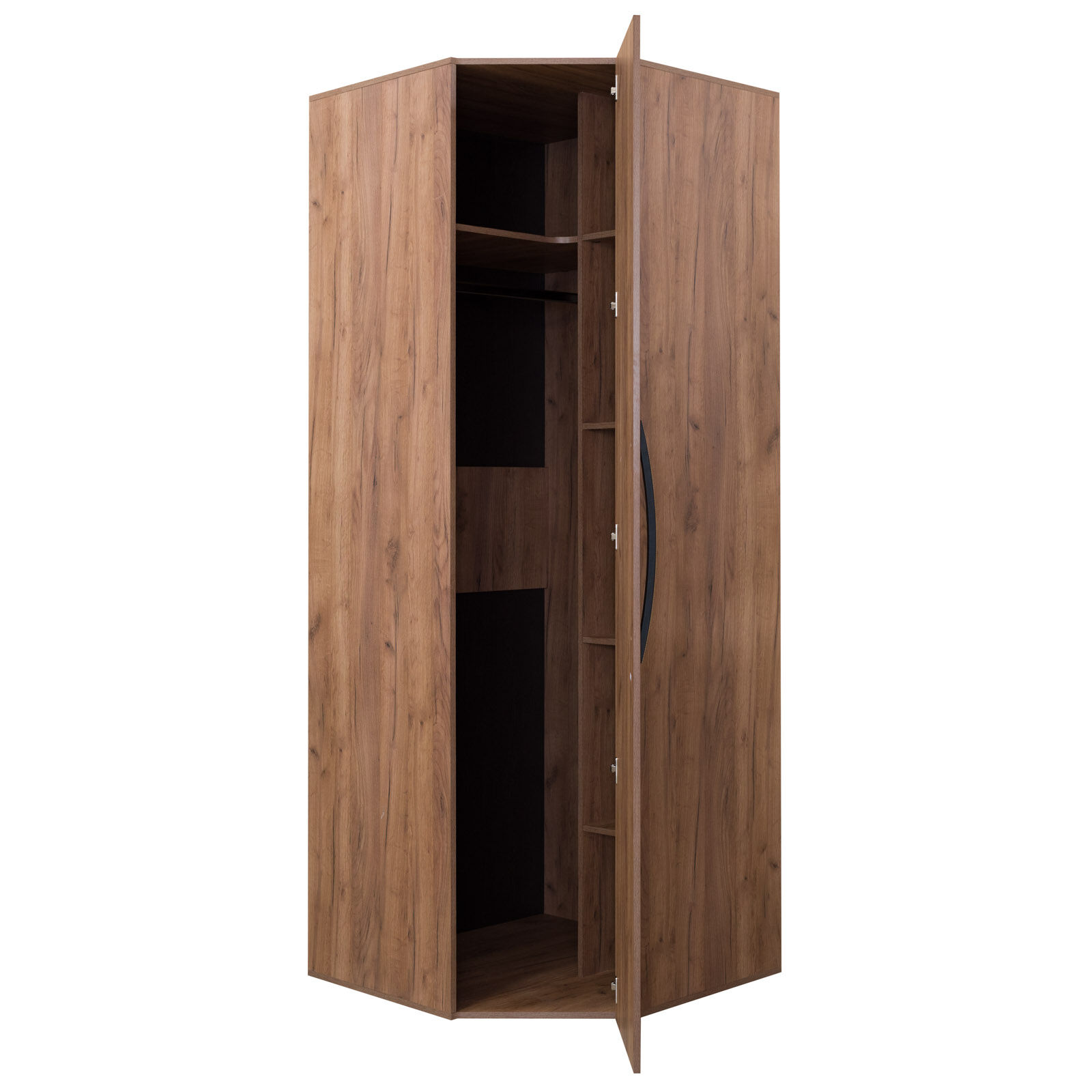 Организовать пространство в маленькой спальне поможет вместительный угловой шкаф.