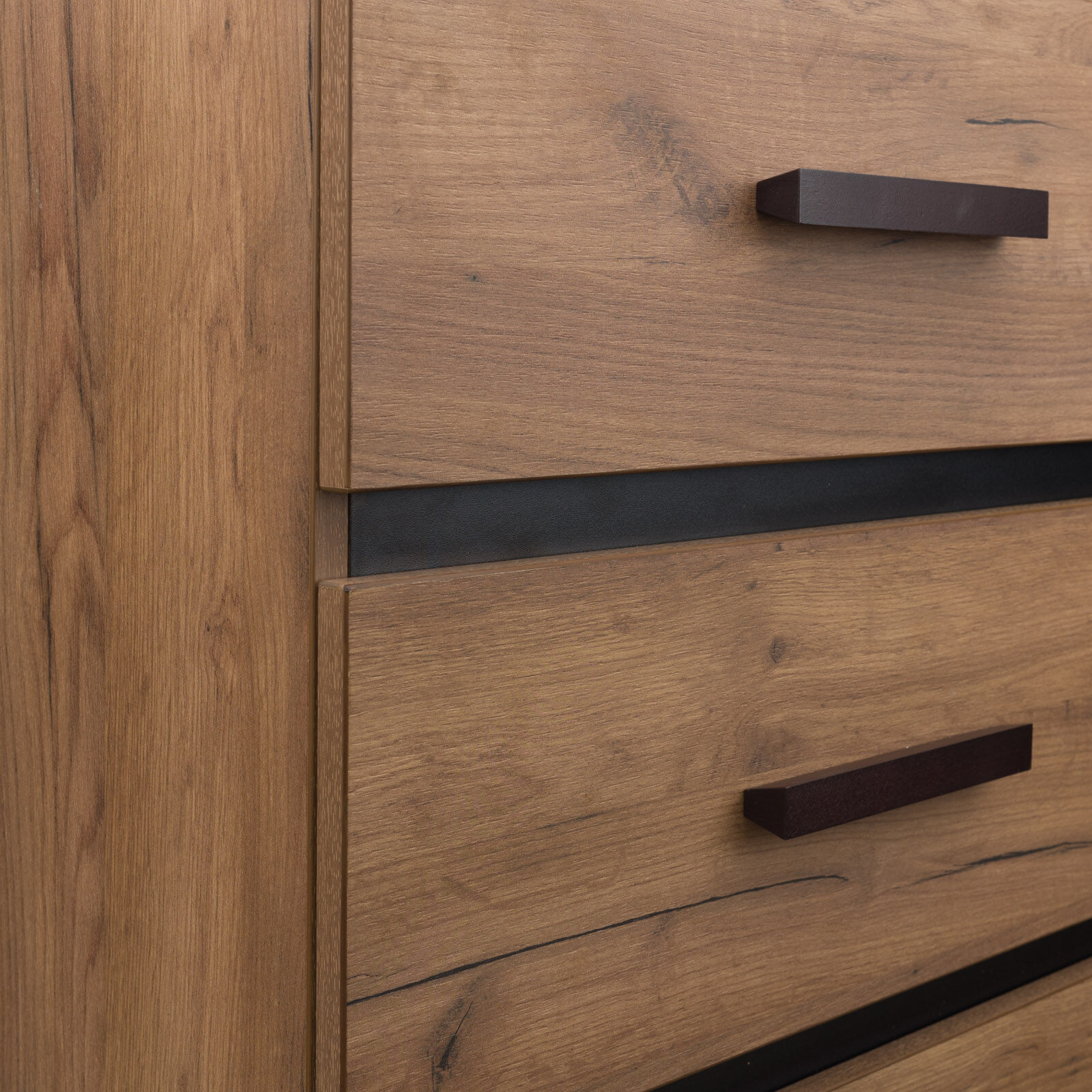 Для спальни отлично подойдет высокий комод Nature 45. Гладкие фасады ящиков в теплом декоре с контрастными черными боковыми планками снизу делают его по-настоящему особенным. «Мебель поставляется в разобранном виде».