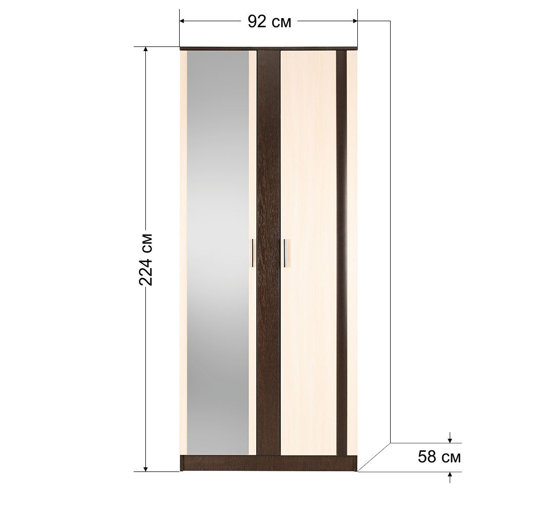 Шкаф 2х створчатый Софи станет незаменимым дополнением для вашей спальни. Модель внутри имеет два отделения, одно со штангой для вешалок, другое с полками. А также одна створка оснащена зеркалом. «Мебель поставляется в разобранном виде».