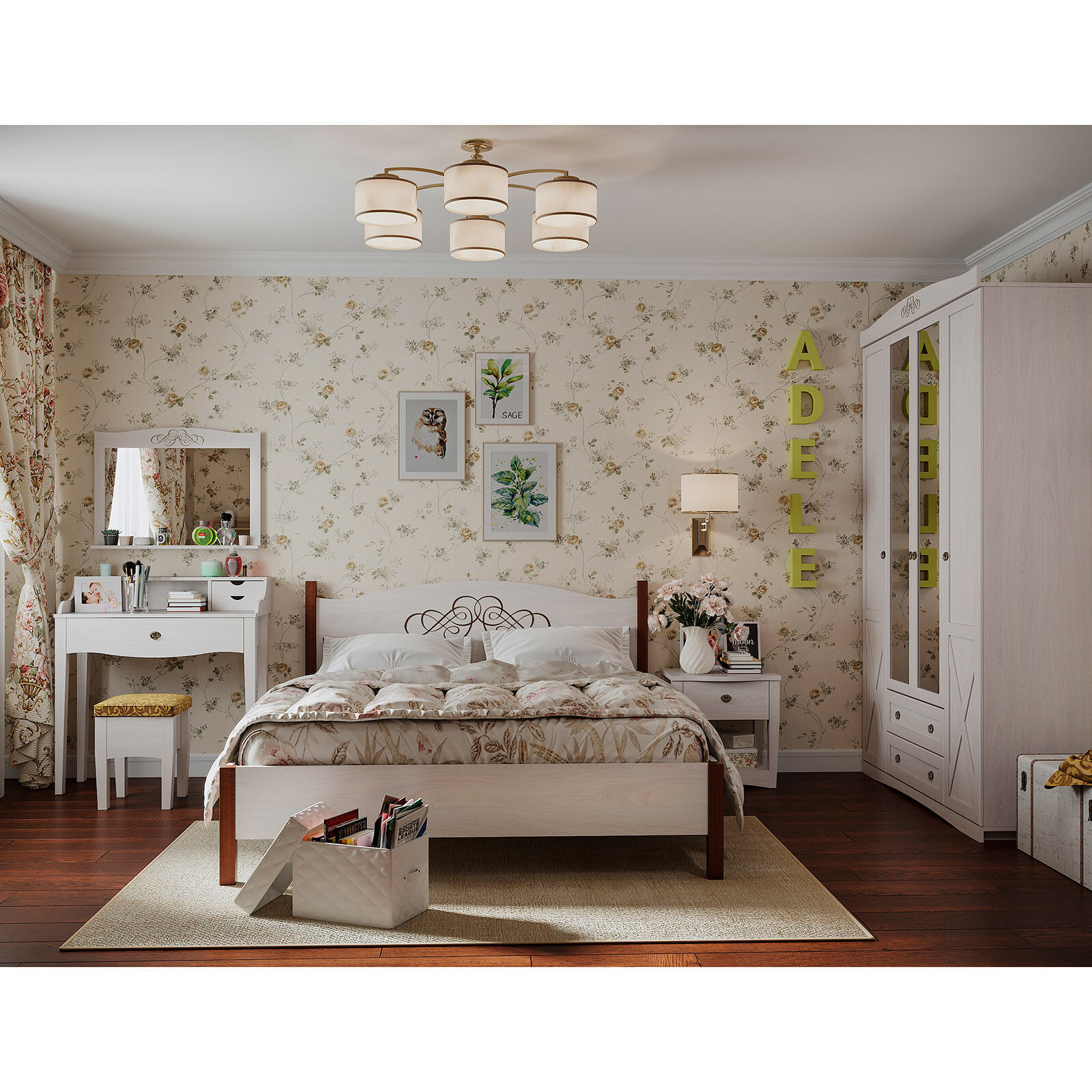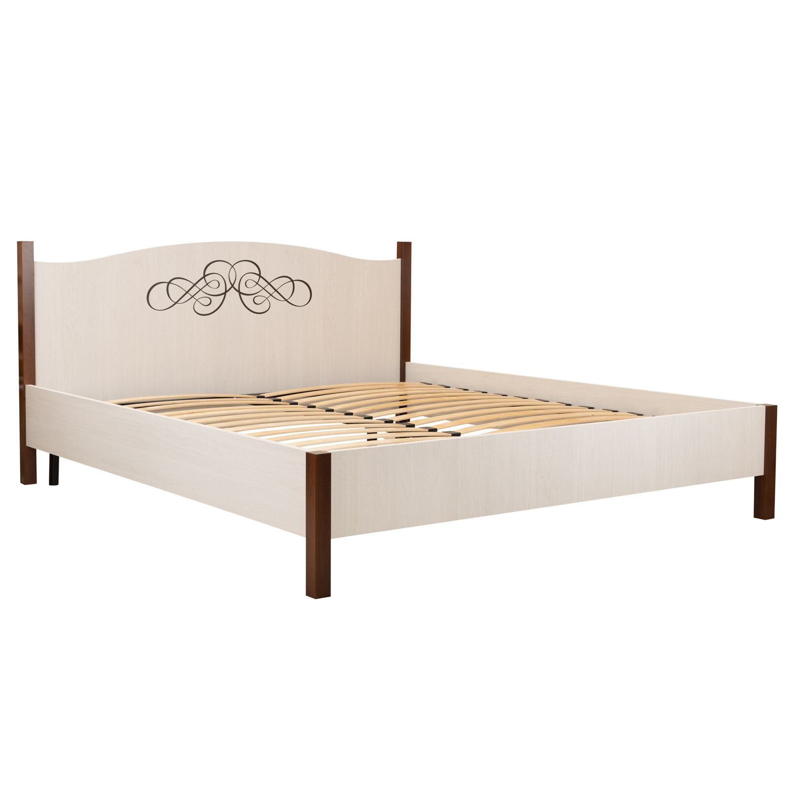 Фигурное изголовье кровати ADELE выгодно подчеркивается толстыми (50 мм) кроватными опорами из МДФ. Изящный вензельный рисунок шоколадного цвета в соответствии с цветом опор нанесен с помощью УФ-печати. «Матрас в комплект не входит». «Мебель поставляется в разобранном виде».