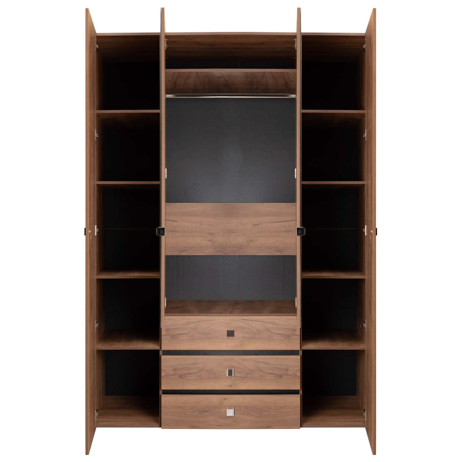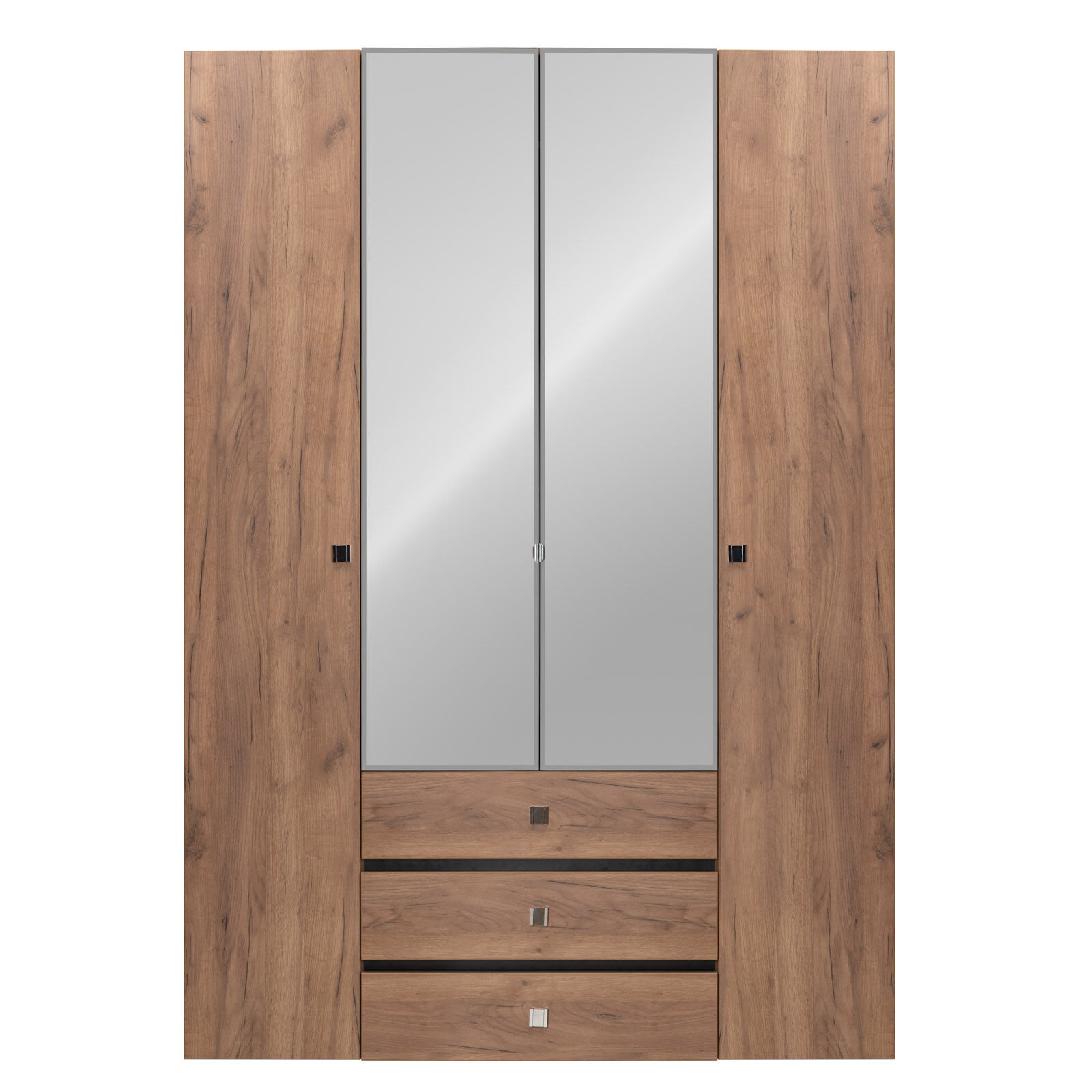 Вместительный распашной шкаф с 2-мя зеркальными фасадами прекрасно подойдет в небольшую спальню. За глухими фасадами скрываются отделения с 4-мя полками. Внутри шкафа, за зеркальными дверями, закреплена стационарная штанга (777 мм). Три выкатных ящика с глубиной 40 см, оснащены шариковыми направляющими полного выдвижения. «Мебель поставляется в разобрпнном виде».