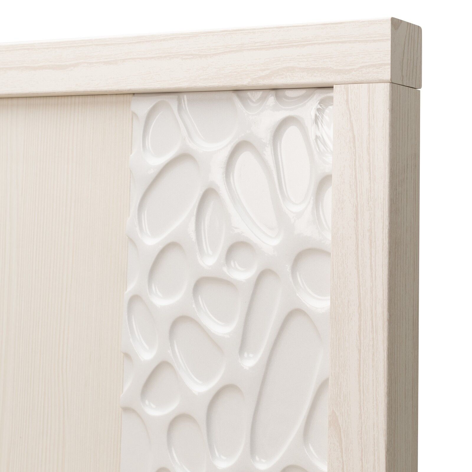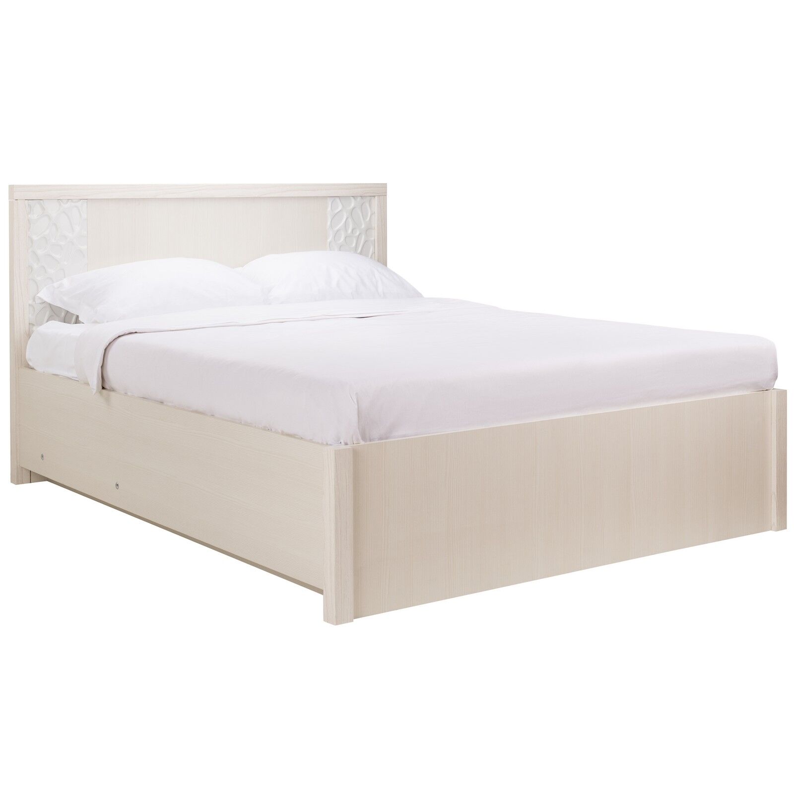 Кровать отличает сочетание нежной глянцевой 3D вставки с пузырьками с массивными обрамлением и опорами. «Матрас в комплект не входит». «Мебель поставляется в разобранном виде».