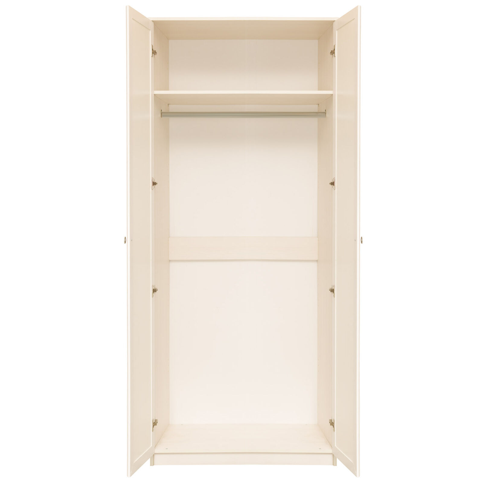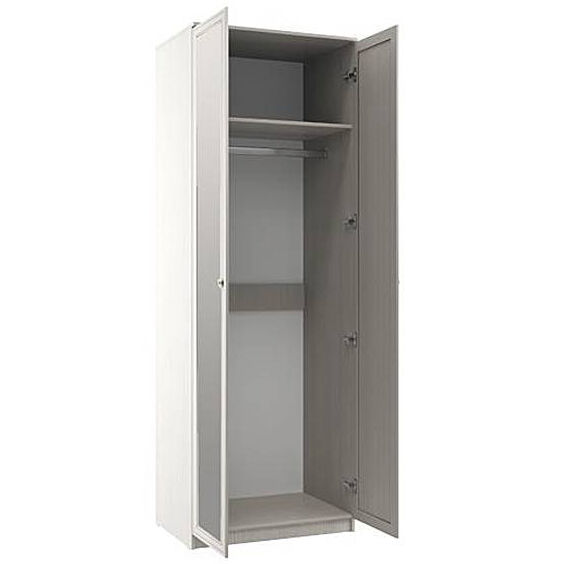Значительная ширина шкафа позволяет располагать в нём множество вещей. Вверху выполнена полка для хранения текстильных изделий в сложенном состоянии. Каркас изготавливается из качественных материалов.