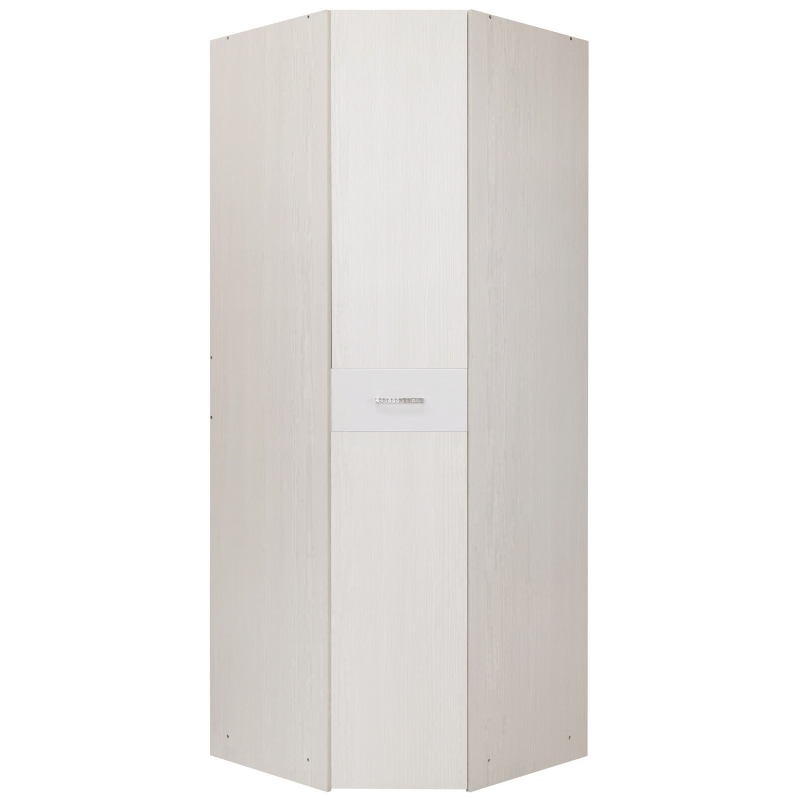 Шкаф угловой, оснащен стационарной штангой, полочками для белья. Его фасад возможно навесить как на правую, так и на левую сторону. ШхГхВ 859х859х2300