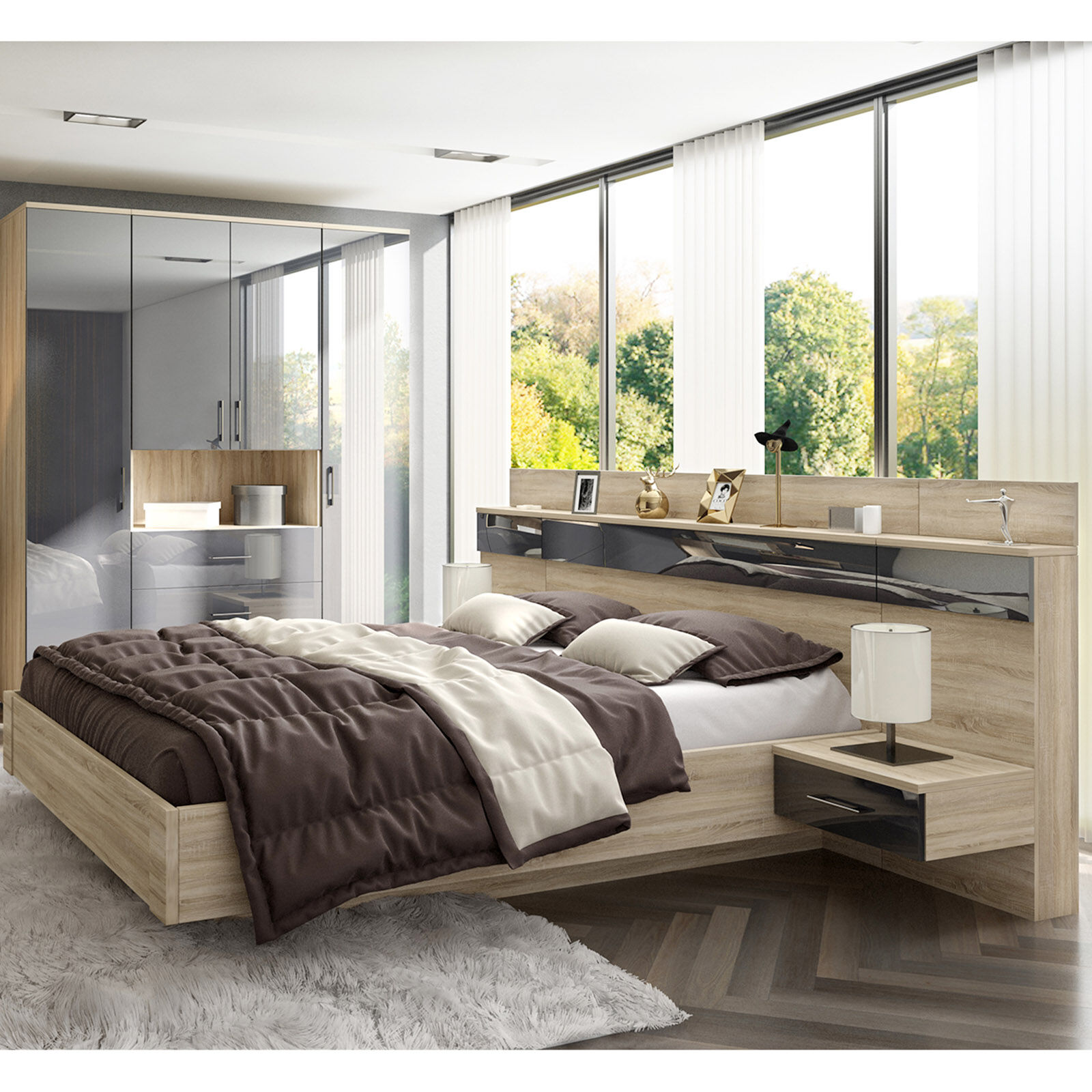 Кровать LUCIDO (спальня) Кр-01 160 с настилом дуб сонома/антрацит