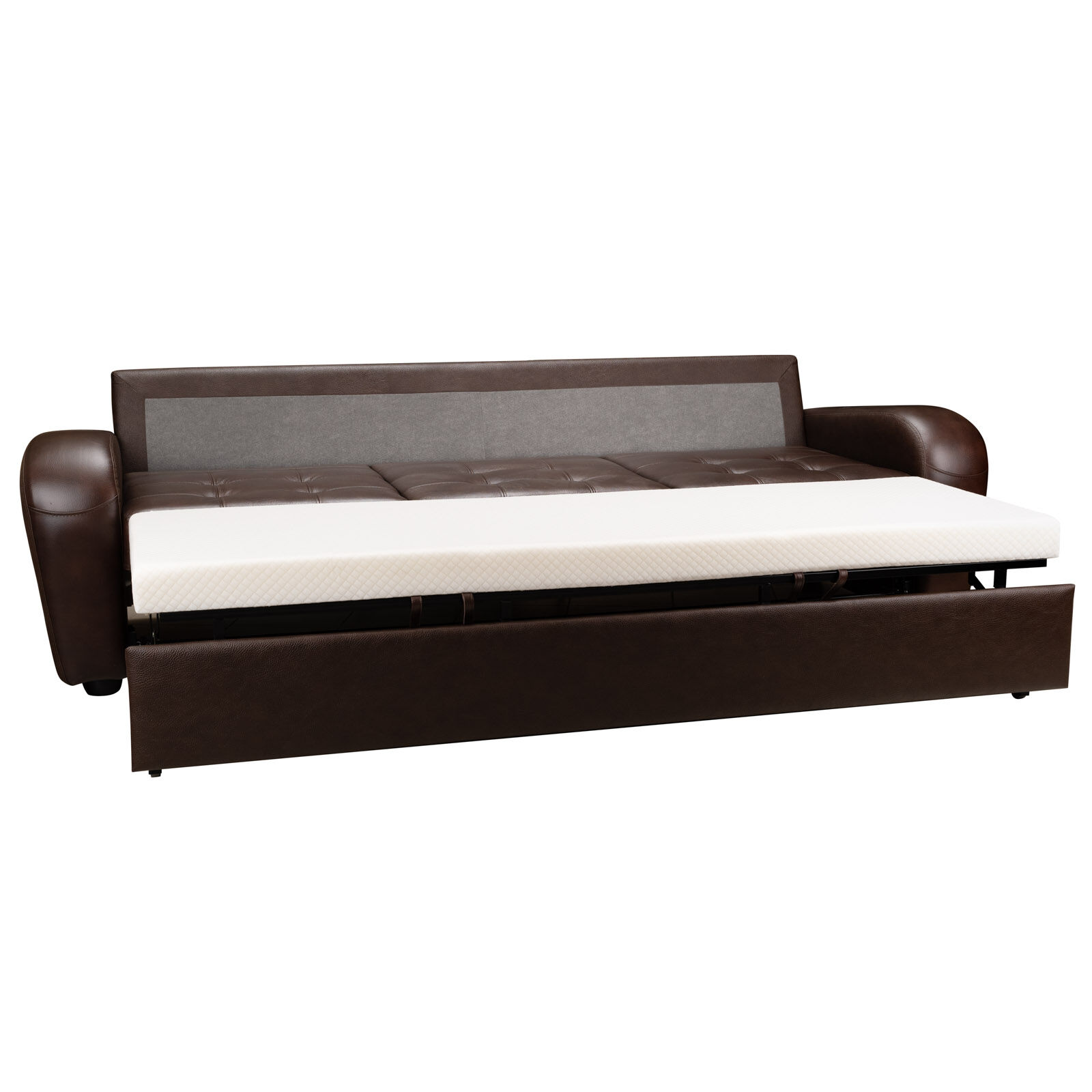 Диван «Сидней 3p Dollar-Bellagio marrone-Mixotoil-кожа вар2» невероятно мягкий и уютный. Преимущества данного дивана: дорогой внешний вид, необычный дизайн, удобство и комфорт, качественный наполнитель, быстрое и простое раскладывание. Ящика для белья нет.