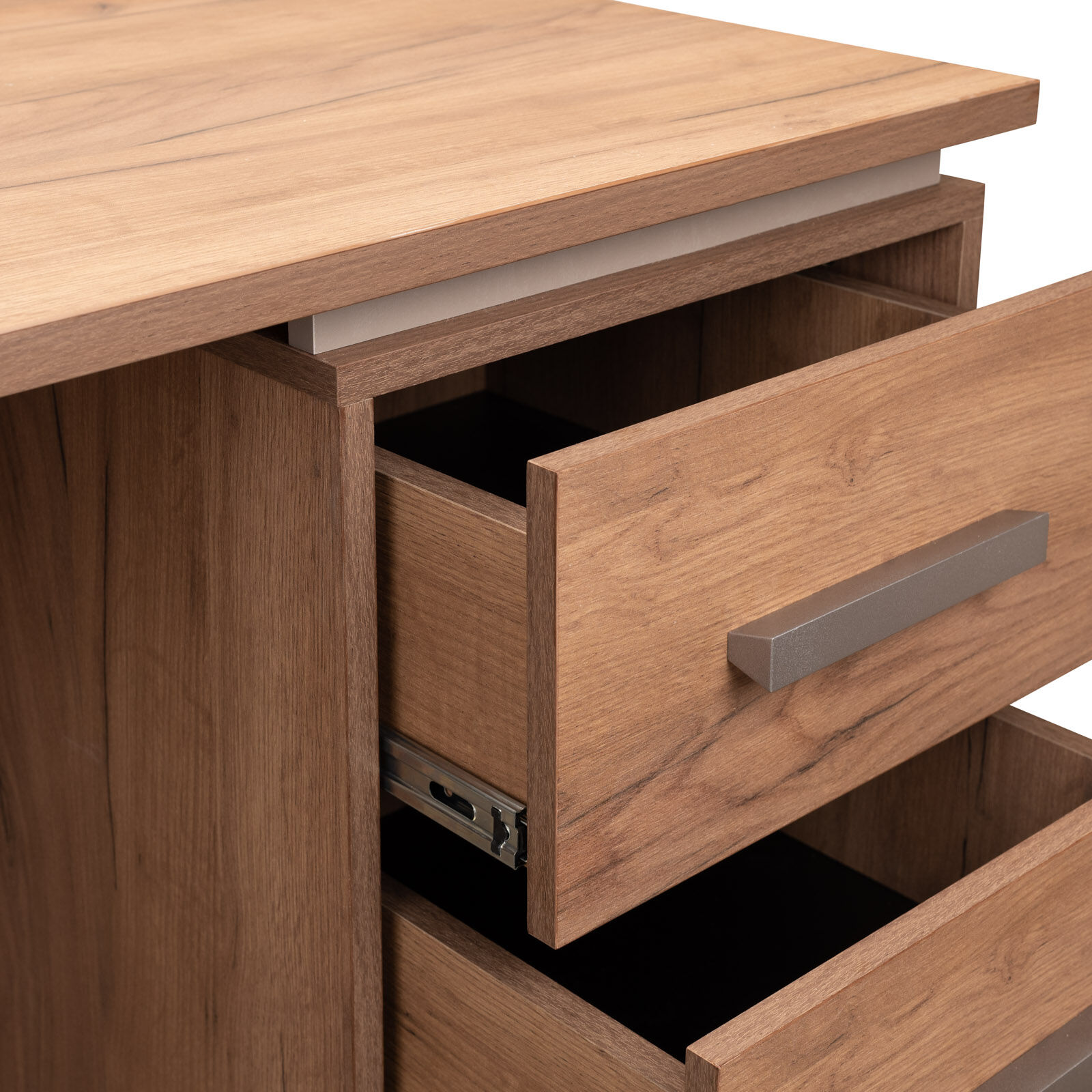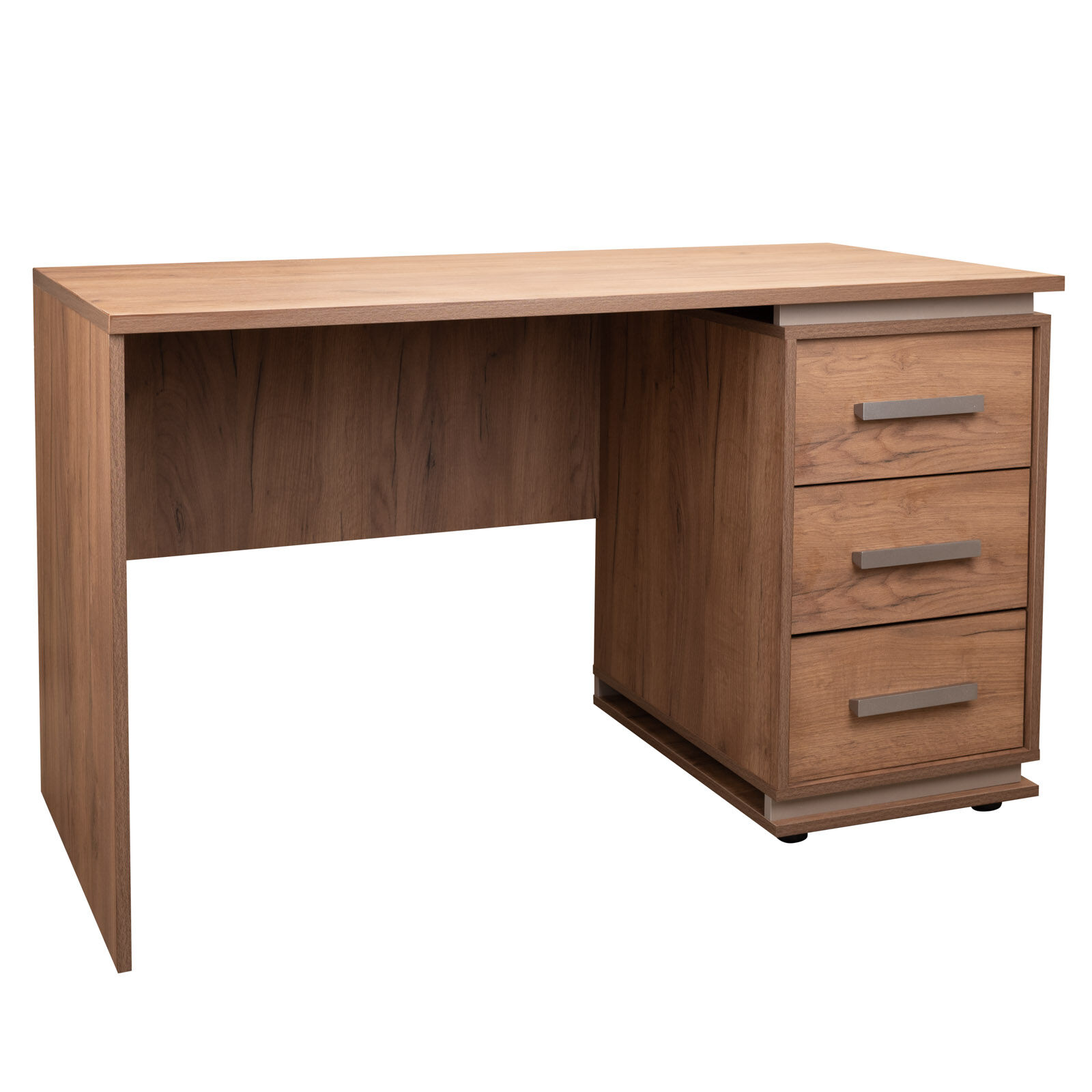 За счет просторной рабочей поверхности «Nature 84 Cтол письменный» одинаково удобен как для левши, так и для правши. Благодаря возможности левосторонней и правосторонней сборки три выдвижных ящика на шариковых направляющих можно установить с любой удобной для ребенка стороны. Столешница 22 мм и ударопрочная кромка в 2 мм повысят срок службы стола. Под столешницей - небольшая ниша со стороны ящиков. В нишу спокойно может поместиться планшет или журнал. «Мебель поставляется в разобранном виде».