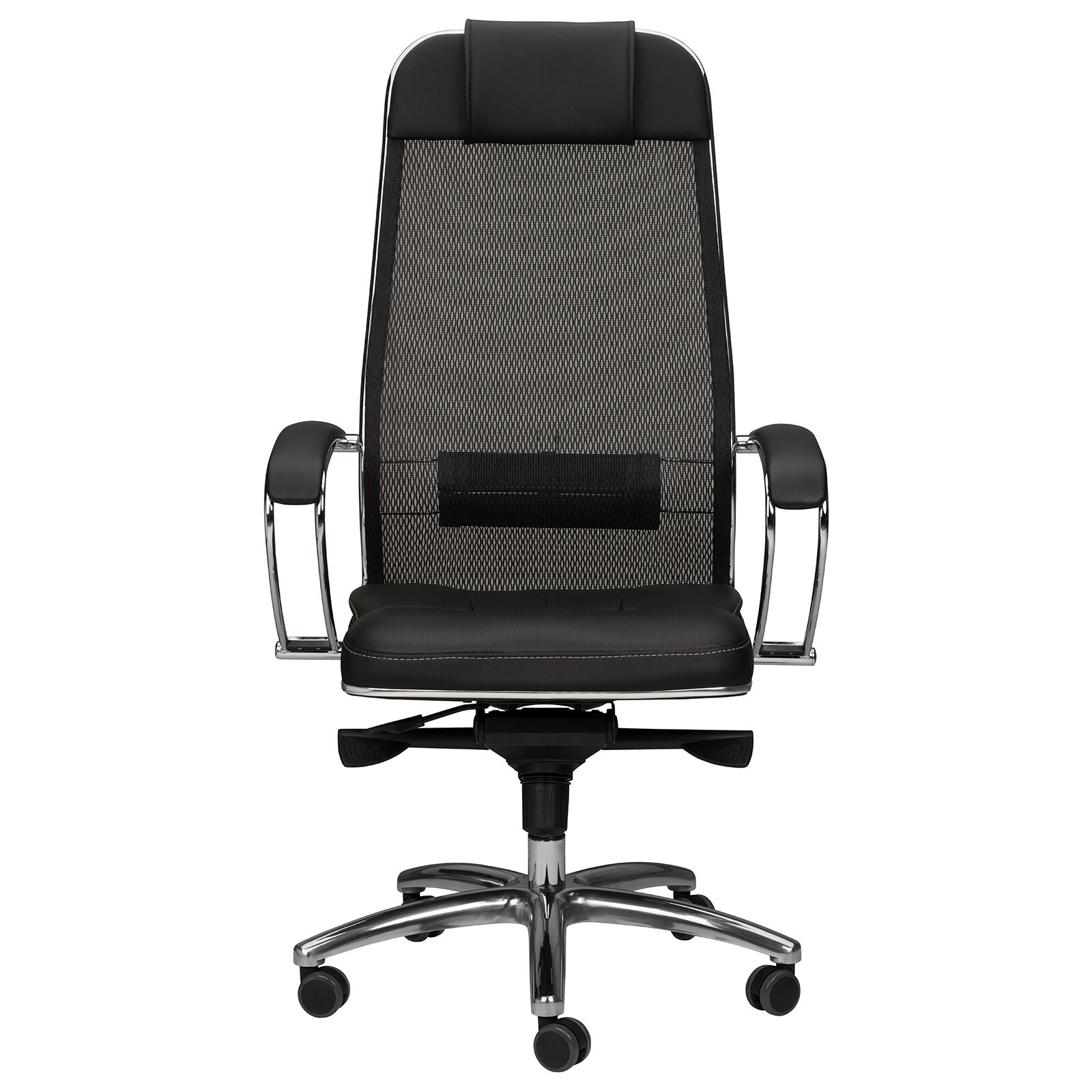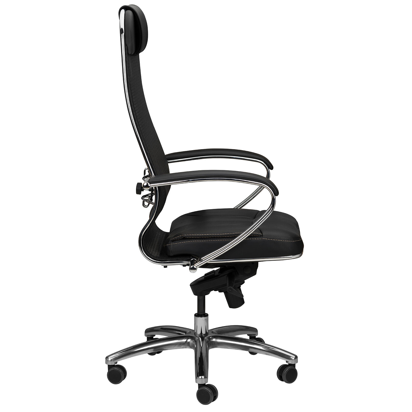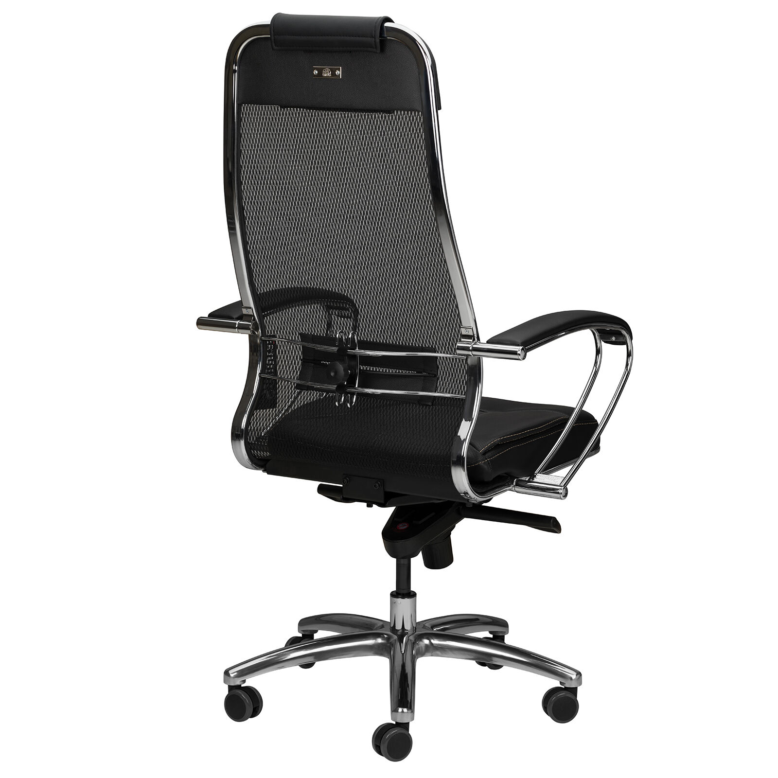 Кресло Samurai SL-1 04. Преимущества: абсолютно эргономичная форма спинки соответствует анатомической форме тела человека, которая придает креслу устойчивость при максимальном отклонении. Двухзонная регулировка подпора поясницы обеспечивает идеальную поддержку спины независимо от комплекции сидящего. Сверхпрочный стальной каркас спинки и сиденья, покрытый зеркальным хромом. Синхромеханизм качания MULTIBLOCK, благодаря раздельному синхронному отклонению спинки и сиденья, позволяет телу периодически разгибаться, что улучшает кровоток и разминает мышцы спины. Возможность фиксации кресла в любом положении отклонения. Смещенный вперед центр качания позволяет стопам сидящего, при отклонении кресла, оставаться на полу, сосуды не пережимаются - сохраняется ощущение легкости в ногах. Регулировка глубины сиденья с помощью специального слайдера, обеспечивает эргономически правильную посадку пользователя в кресле, создавая дополнительный комфорт и удобство. Предусмотрена возможность фиксации глубины сиденья в пяти позициях. Пятилучье зеркальное литое с противооткатными полиуретановыми роликами. Противооткатные полиуретановые ролики обеспечивают дополнительную безопасность эксплуатации кресла: без нагрузки - предотвращают случайное перемещение кресла, при сидении - позволяют легко перемещаться. Ролики долговечные, бесшумные, не оставляют следов и царапин на полу, увеличенного диаметра (60 мм). Подголовник: мягкий комфортный из перфорированного износостойкого материала NewLeather (кожа). Материалы обивки сиденья: перфорированный износостойкий материал NewLeather (кожа). «Мебель поставляется в разобранном виде».