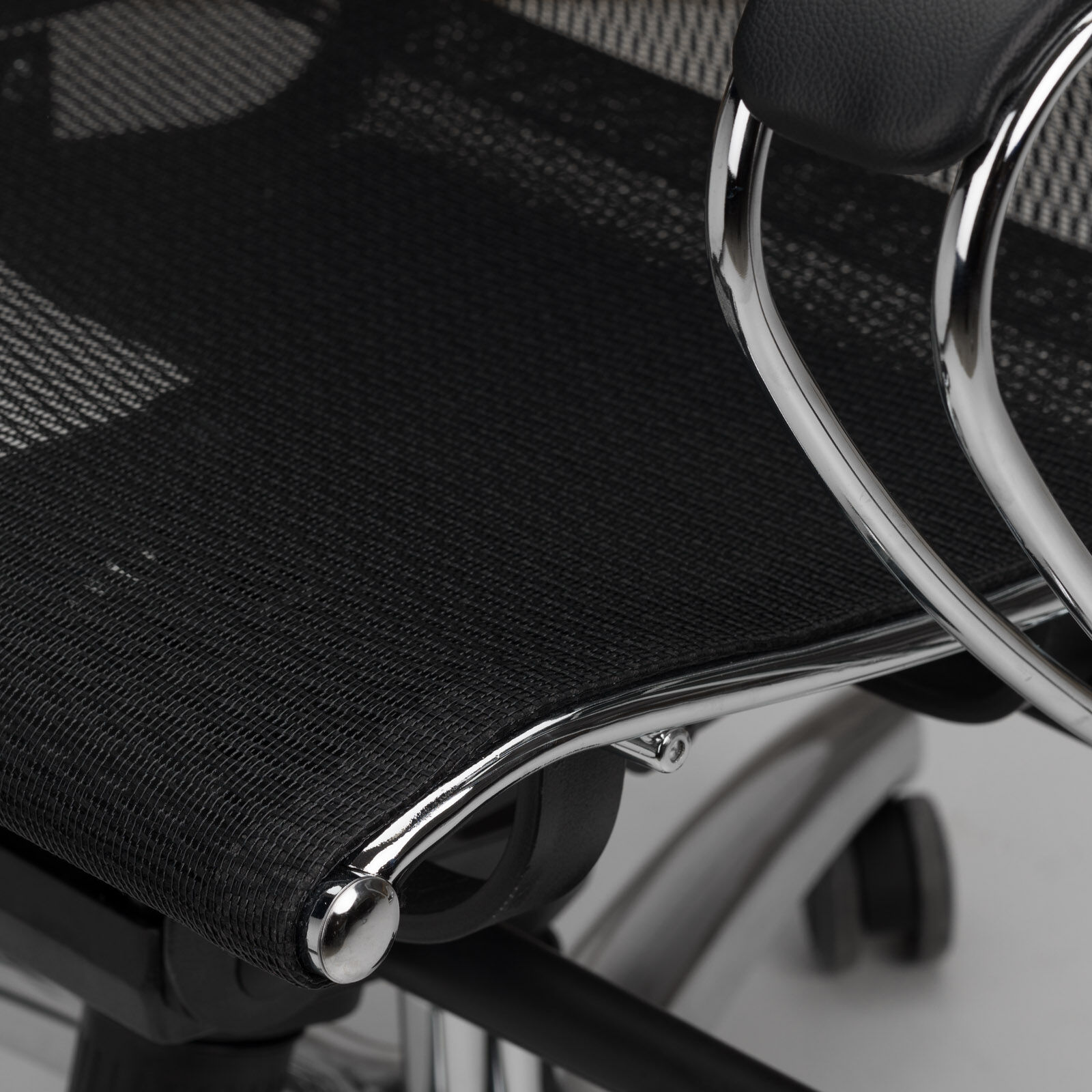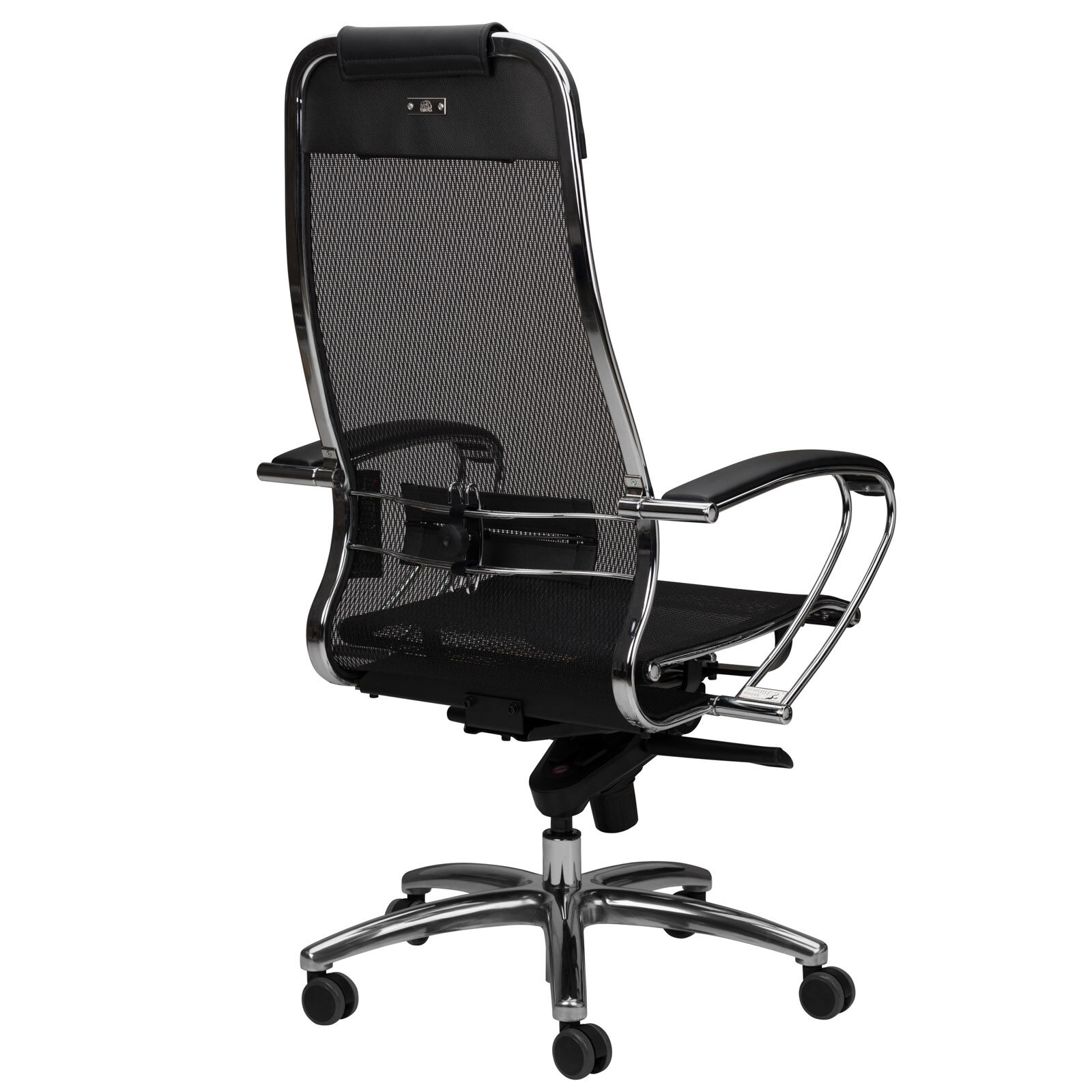 Кресло Samurai S-1 04. Преимущества: абсолютно эргономичная форма спинки соответствует анатомической форме тела человека, которая придает креслу устойчивость при максимальном отклонении. Двухзонная регулировка подпора поясницы обеспечивает идеальную поддержку спины независимо от комплекции сидящего. Сверхпрочный стальной каркас спинки и сиденья, покрытый зеркальным хромом. Синхромеханизм качания MULTIBLOCK, благодаря раздельному синхронному отклонению спинки и сиденья, позволяет телу периодически разгибаться, что улучшает кровоток и разминает мышцы спины. Возможность фиксации кресла в любом положении отклонения. Смещенный вперед центр качания позволяет стопам сидящего, при отклонении кресла, оставаться на полу, сосуды не пережимаются - сохраняется ощущение легкости в ногах. Регулировка глубины сиденья с помощью специального слайдера, обеспечивает эргономически правильную посадку пользователя в кресле, создавая дополнительный комфорт и удобство. Предусмотрена возможность фиксации глубины сиденья в пяти позициях. Противооткатные полиуретановые ролики обеспечивают дополнительную безопасность эксплуатации кресла: без нагрузки - предотвращают случайное перемещение кресла, при сидении - позволяют легко перемещаться. Ролики долговечные, бесшумные, не оставляют следов и царапин на полу, увеличенного диаметра (60 мм). Подголовник: мягкий комфортный из перфорированного износостойкого материала NewLeather (кожа). Подлокотники: стальные, покрытые зеркальным хромом, с мягкими накладками из износостойкого материала NewLeather (кожа). Материалы обивки спинки и сиденья - сверхпрочная сетчатая ткань, армированная арамидным волокном, которая позволяет Вашему телу свободно «дышать», сохраняя температурный баланс, исключая любые зоны перегрева в местах соприкосновения. «Мебель поставляется в разобранном виде».