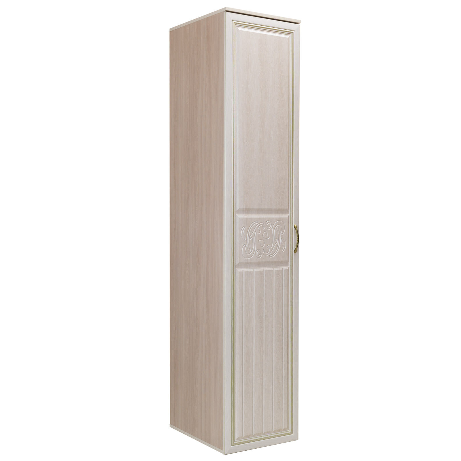 Пенал Виктория создан для нежных натур, которые ценят элегантный стиль. Модель исполнена в классическом образе с современными деталями. Яркий глянцевый декор оттеняет классические линии фрезеровки на фасадах. Пенал создаст уютное настроение в любом помещении, наполнив его отраженным светом. При внешней компактности поможет вместительно хранить вещи даже в самых небольших помещениях или гармонично впишется в уже меблированную комнату.