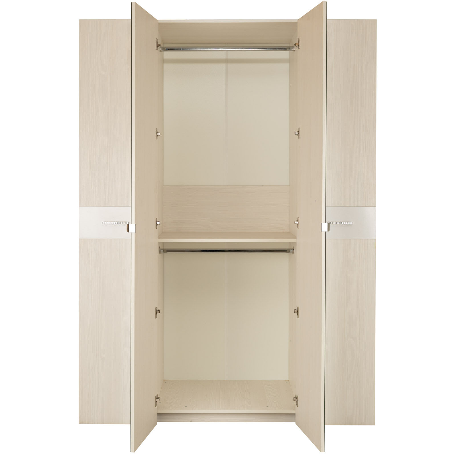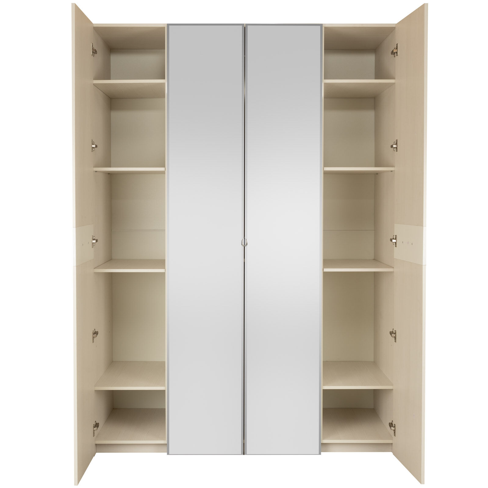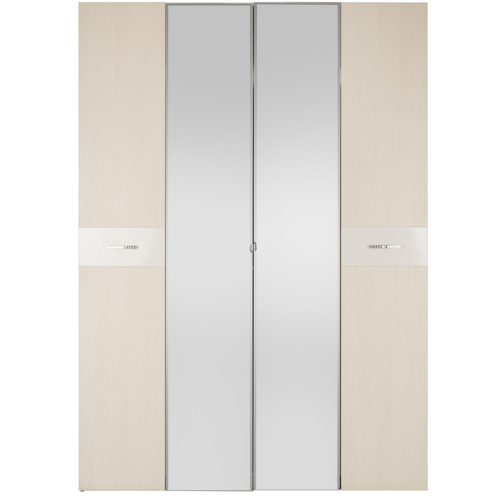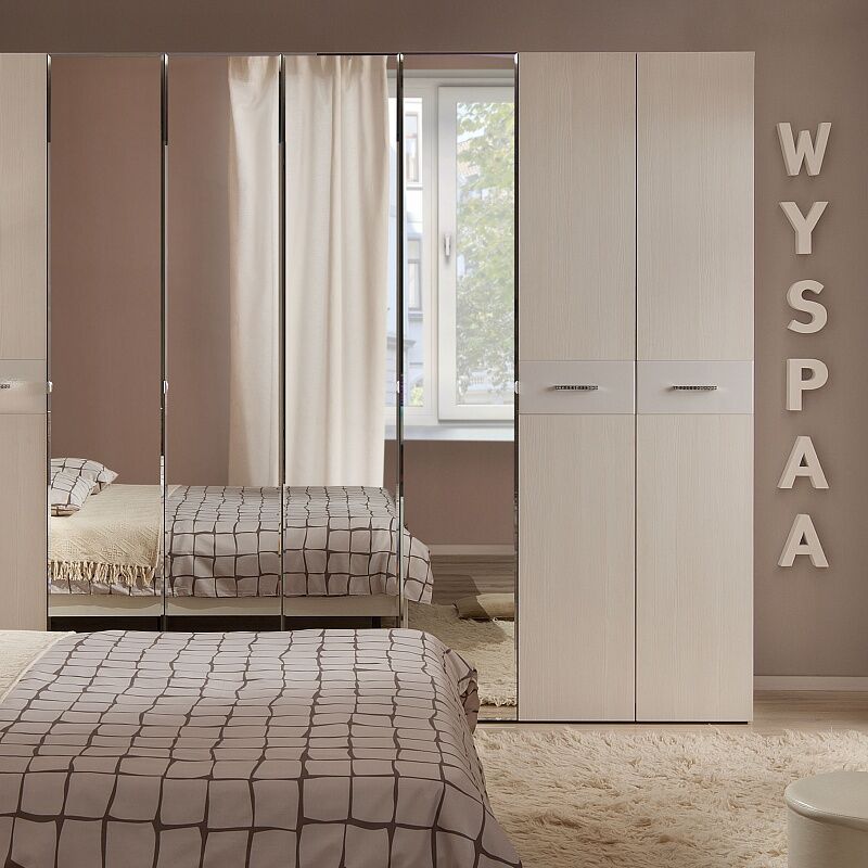 Вместительный четырехдверный шкаф для одежды и белья с зеркалами во весь рост «Wyspaa 36 бодега светлый» – находка для любой спальни. Глухие фасады открываются за ручки со стразами. «Мебель поставляется в разобранном виде».
