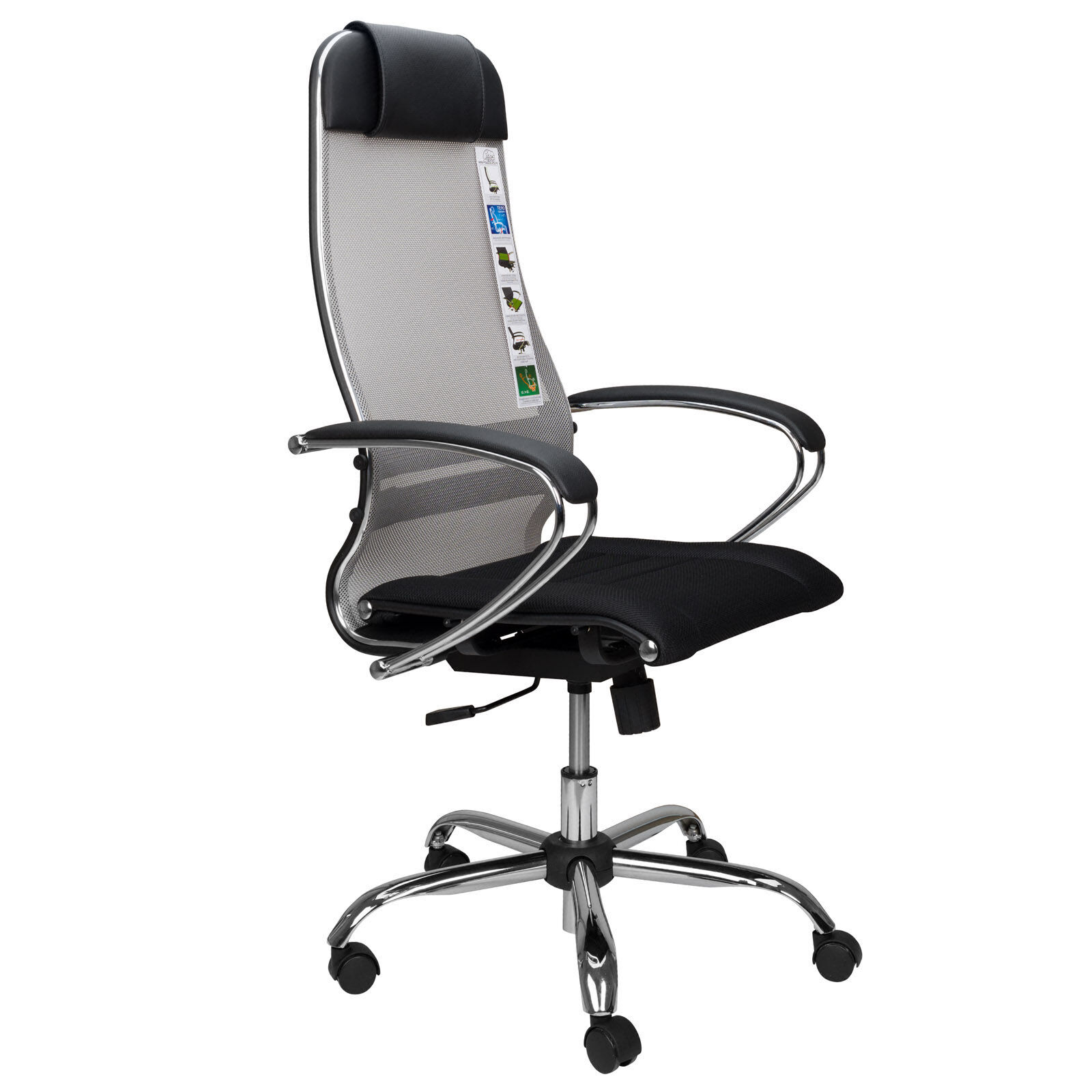 Эргономичная спинка, разгружающая позвоночник, полностью соответствует анатомической форме тела человека. Дышащая обивка исключает любые зоны перегрева в местах соприкосновения, а место 'водопада' не сдавливает сосуды ног. Цельный стальной каркас кресла, настраиваемая высота сиденья, механизм качания на шариковых подшипниках делает его полностью бесшумным.