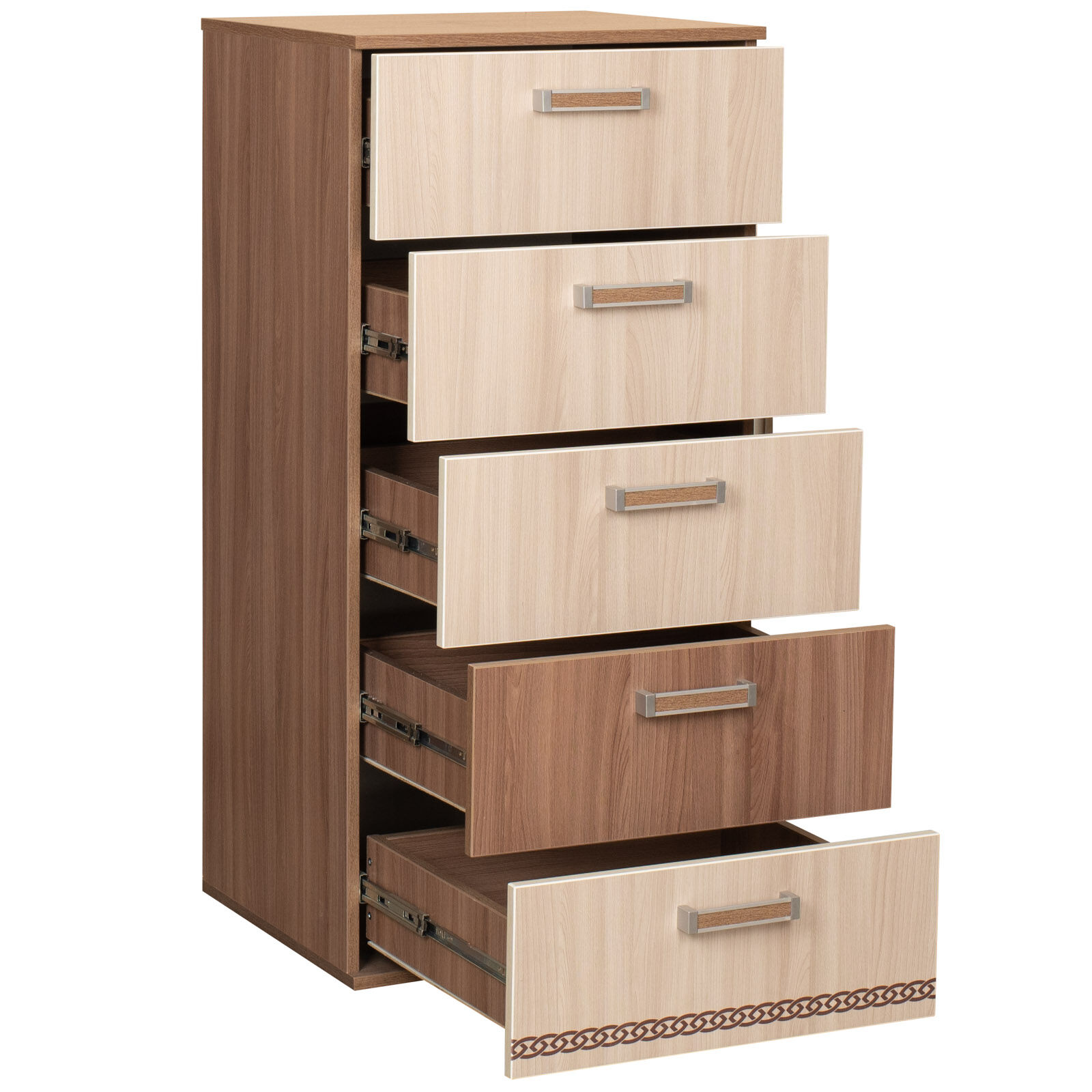 Стильный и компактный Комод Сенди идеально подойдет для современного дизайна деткой комнаты. Он включает в себя пять вместительных выдвижных ящиков для хранения одежды. Модель выполнена из высококачественных и надежных материалов, поэтому прослужит длительное время. Комод Сенди производится из экологически чистых материалов - ЛДСП, Металл, ДВП.