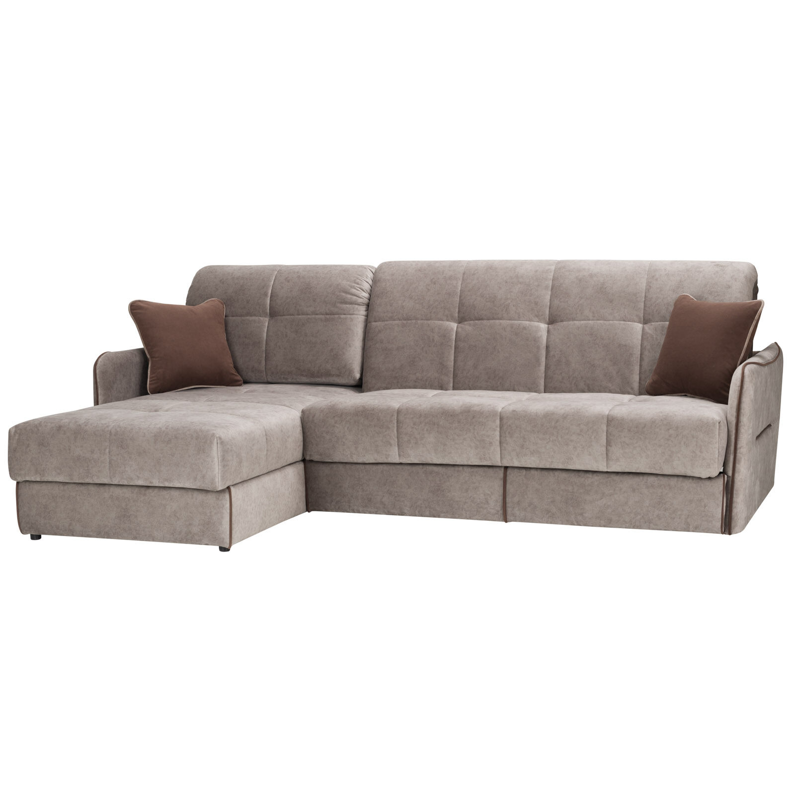 Аккуратный, без лишних деталей, продуманный до мелочей дизайн. Выкатная часть дополнительно снабжена специальными роликами с особым покрытием, предохраняющим напольное покрытие от царапин. Съемная чехловая система облегчает уход за обивкой дивана и ее замену. Специальная простежка чехла не позволяет дивану утратить свою форму в процессе эксплуатации. Металлический каркас. Бельевой ламинированный ящик в оттоманке. «Мебель поставляется в разобранном виде».