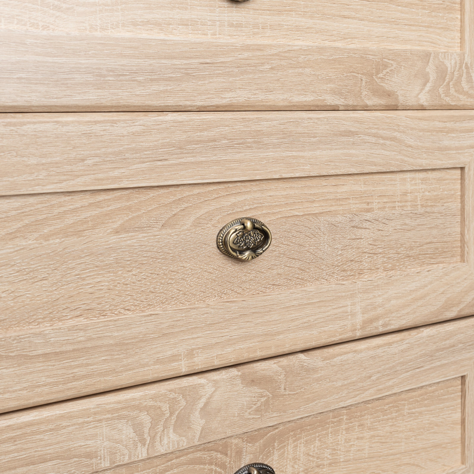 Высокий и узкий Комод «Adele 12 дуб сонома» экономит место в спальне без ущерба для вместительности. Особенностью комода является декоративный цоколь в стиле Прованс. Рамочные фасады из профиля МДФ. Выдвижные ящики на шариковых направляющих. Фигурный цоколь. Металлические ручки. «Мебель поставляется в разобранном виде».